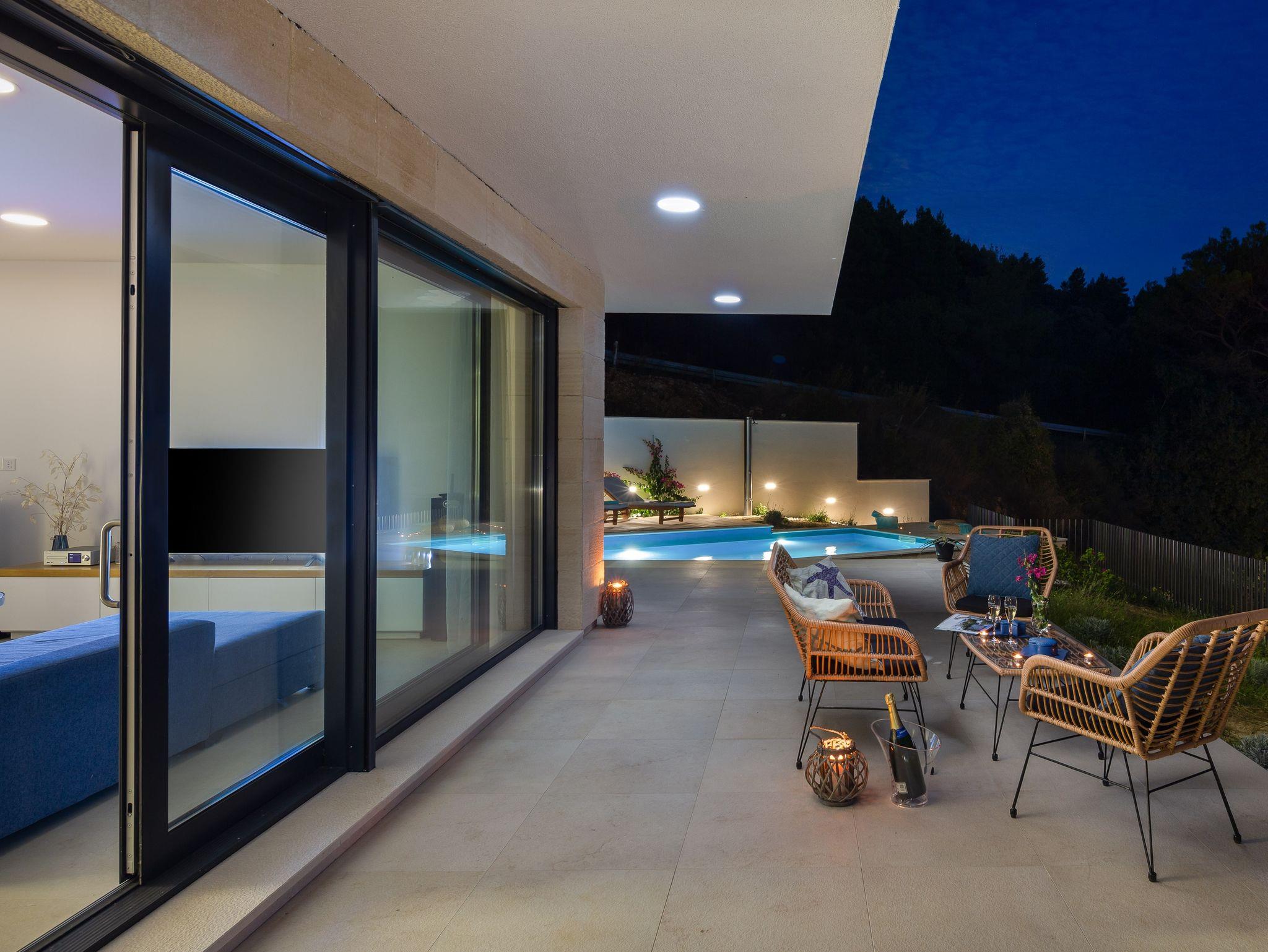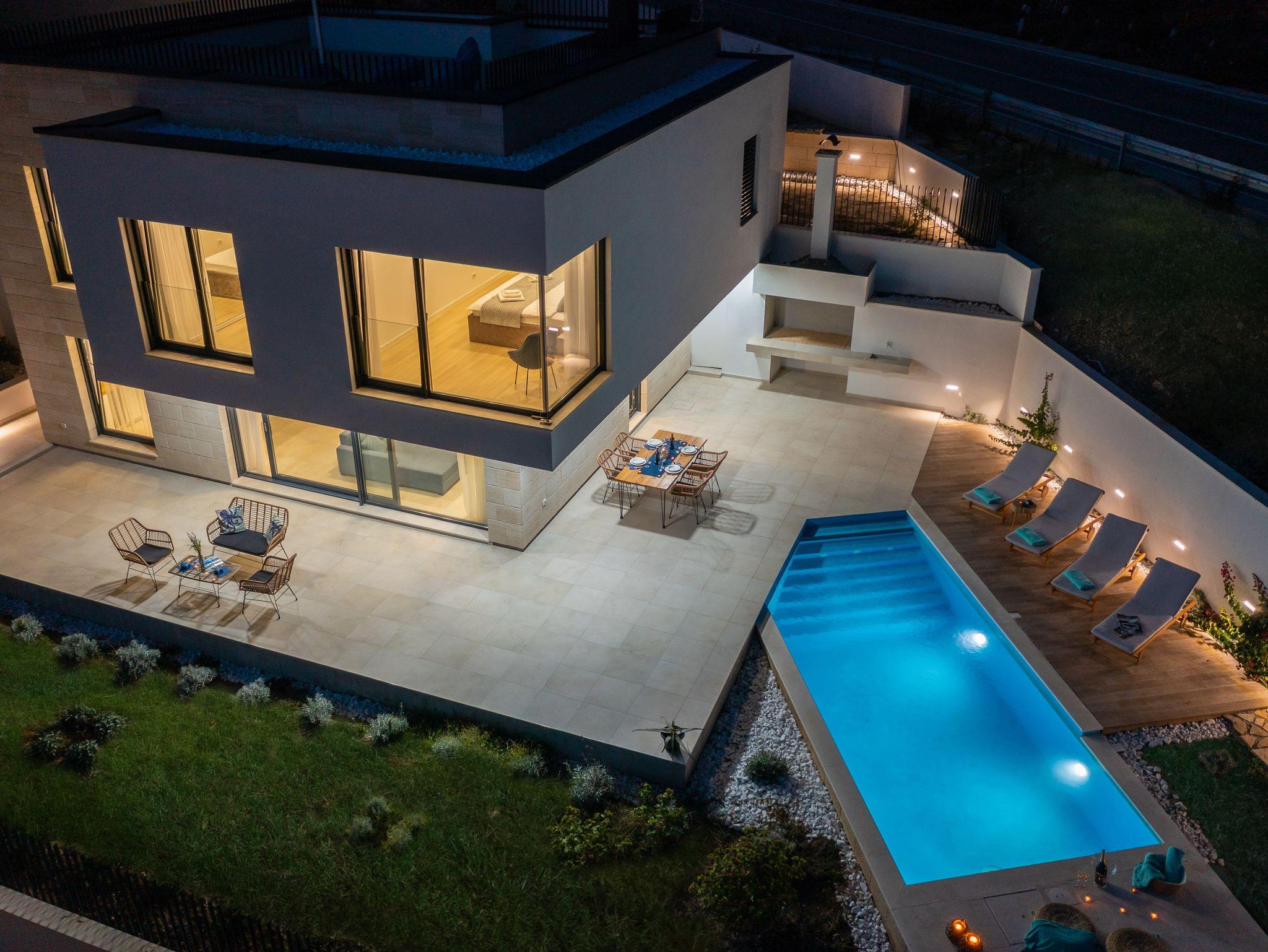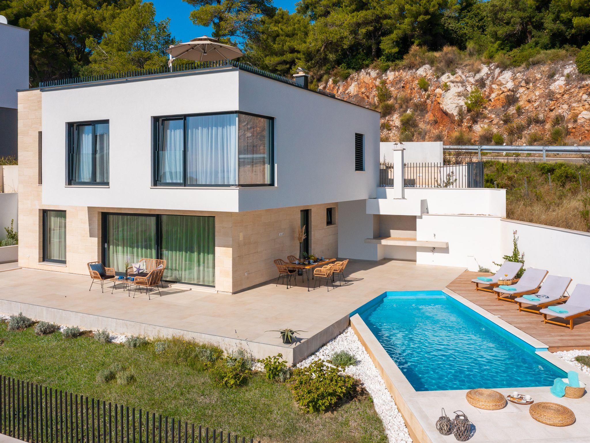 Haus bietet Platz für 8 Gäste. Die Betten sind in Schlafzimmern, die es 3 gibt, und in Wohnzimmer, innerhalb einer Gesamtfläche von 122m2, angeordnet. Die Gäste haben eine eigene Terrasse zur Verfügung, auf der sie in warmen Sommernächten genießen können. Das Haus bietet Meerblick. Für vollen Genuss und Entspannung gibt es einen privaten Grill für Gäste dieser Unterkunft. Während ihres Aufenthalts können sich Gäste im privaten Schwimmbad entspannen. In der Unterkunftseinheit besteht die Möglichkeit des Mitbringens von Haustieren, und die Dienstleistung ist im Preis der Unterkunft enthalten. In der gebuchten Unterkunftseinheit zahlt man am Ort ein Depositum ( der Preis ist an der Internetseite angeführt ). IM PREIS INBEGRIFFEN: Kurtaxe, Endreinigung, Klimatisierung, Zentralheizung, Pool, Parkplatz, Garage, Internet, Haustiere, Kinderbett, Zusatzbett, Bügeleisen, Bügelbrett, Föhn, Sonnenschirm. VERBINDLICHE ZUSÄTZLICHE KOSTEN: Kaution (500,00 € Einmalzahlung), Aufzahlung für Kurzaufenthalte (prozentualer Zuschlag pro Nächtigungsanzahl: 30% - 1, 20% - 2, 10% - 3). Die Verfügbarkeit zusätzlicher Dienstleistungen in Ihrem reservierten Termin und die Preise derselben (falls nicht aufgeführt) müssen im Voraus überprüft werden. Zusätzliche Dienstleistungen die in der Zahlungsaufforderung nicht aufgeführt sind werden direkt beim Vermieter bezahlt, angenommen der Gast nutzt auch diese. Ermäßigung auf den Grundpreis: Gratistag 21=19 (bei einem Aufenthalt von 21 Tagen oder mehr erhalten Sie 2 Gratistage für den Aufenthalt bis 31.12.26).