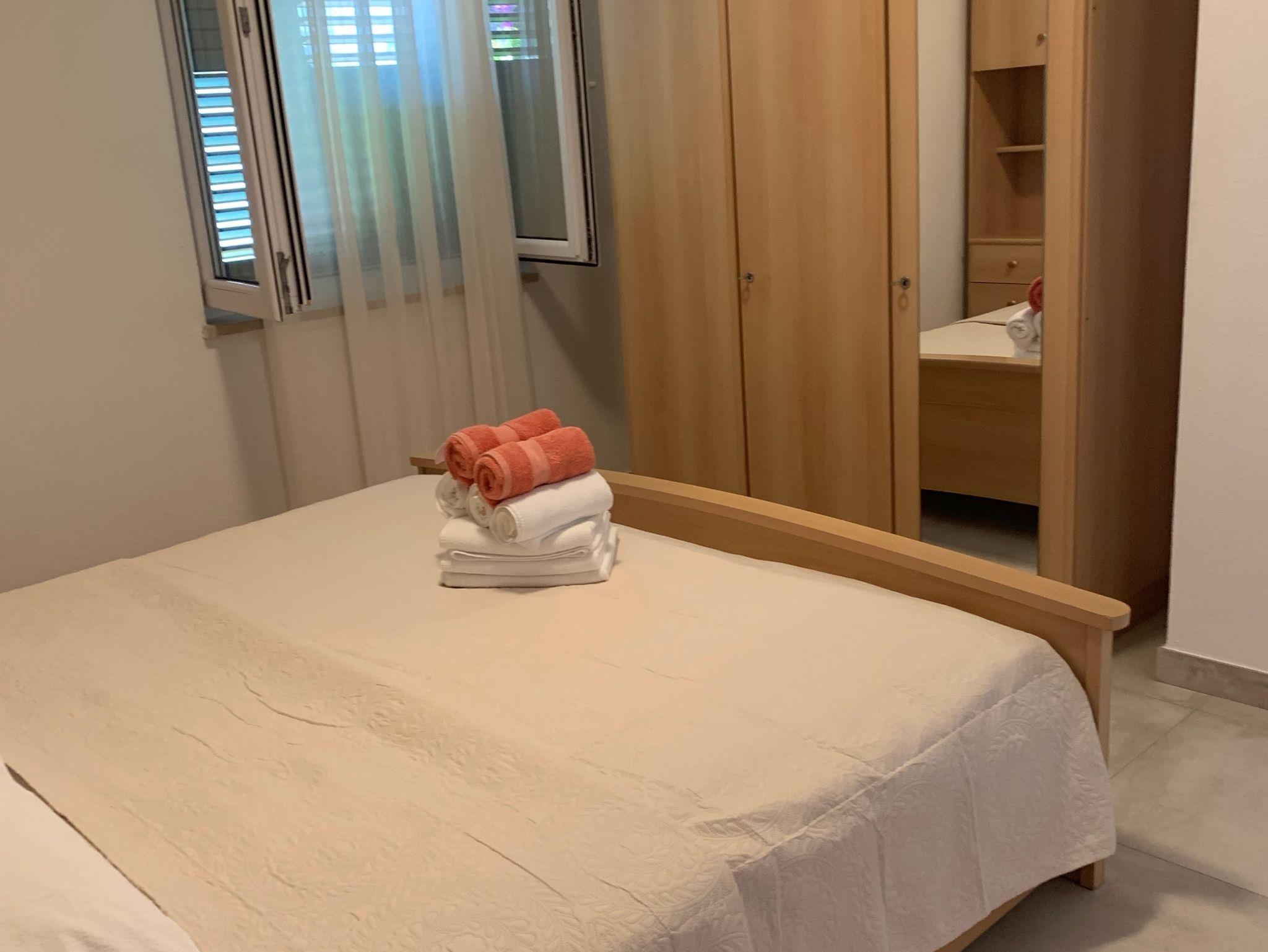 Ferienwohnung bietet Platz für 4 Gäste. Die Betten sind in Schlafzimmern, die es 1 gibt, und in Esszimmer, innerhalb einer Gesamtfläche von 33m2, angeordnet. Die Gäste haben eine eigene Terrasse zur Verfügung, auf der sie in warmen Sommernächten genießen können. Das Apartment bietet Meerblick. Es ist erlaubt, Speisen auf dem Gemeinschafts-Grill vorzubereiten. IM PREIS INBEGRIFFEN: Kurtaxe, Endreinigung, Klimatisierung, Parkplatz, Internet, Wäschewaschen, Kinderbett, Bügeleisen, Bügelbrett, Föhn, tragbarer Grill, Sonnenschirm, Liegestühle. UNVERBINDLICHE ZUSÄTZLICHE KOSTEN: Zusatzbett (10,00 € pro Nacht). Die Verfügbarkeit zusätzlicher Dienstleistungen in Ihrem reservierten Termin und die Preise derselben (falls nicht aufgeführt) müssen im Voraus überprüft werden. Zusätzliche Dienstleistungen die in der Zahlungsaufforderung nicht aufgeführt sind werden direkt beim Vermieter bezahlt, angenommen der Gast nutzt auch diese.
