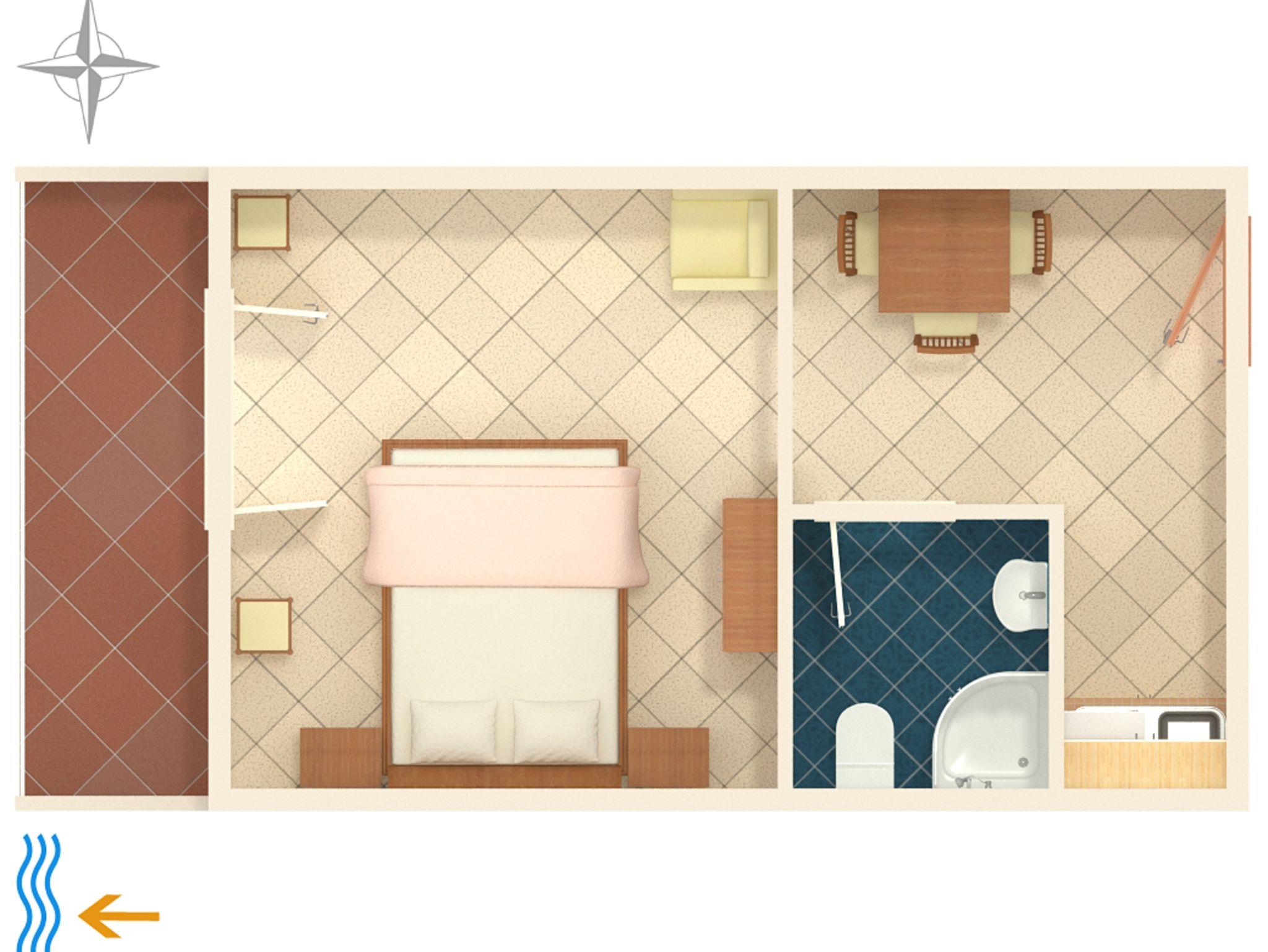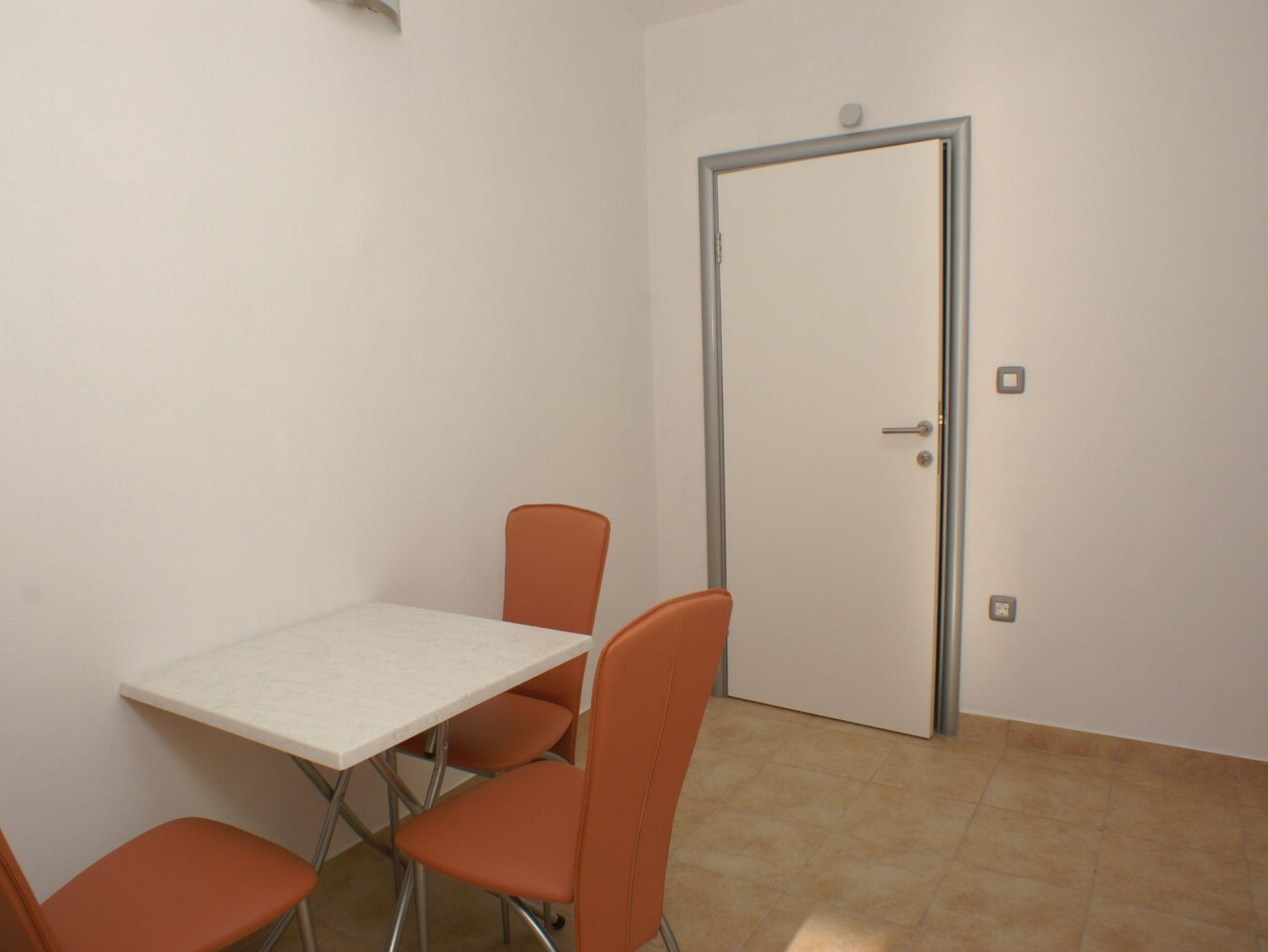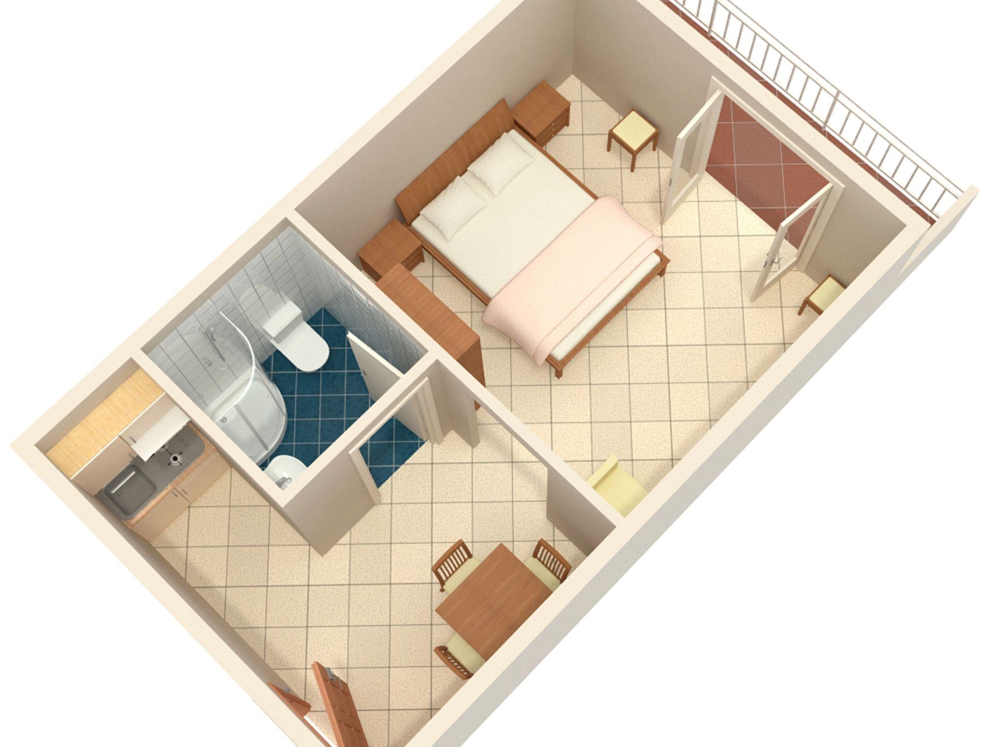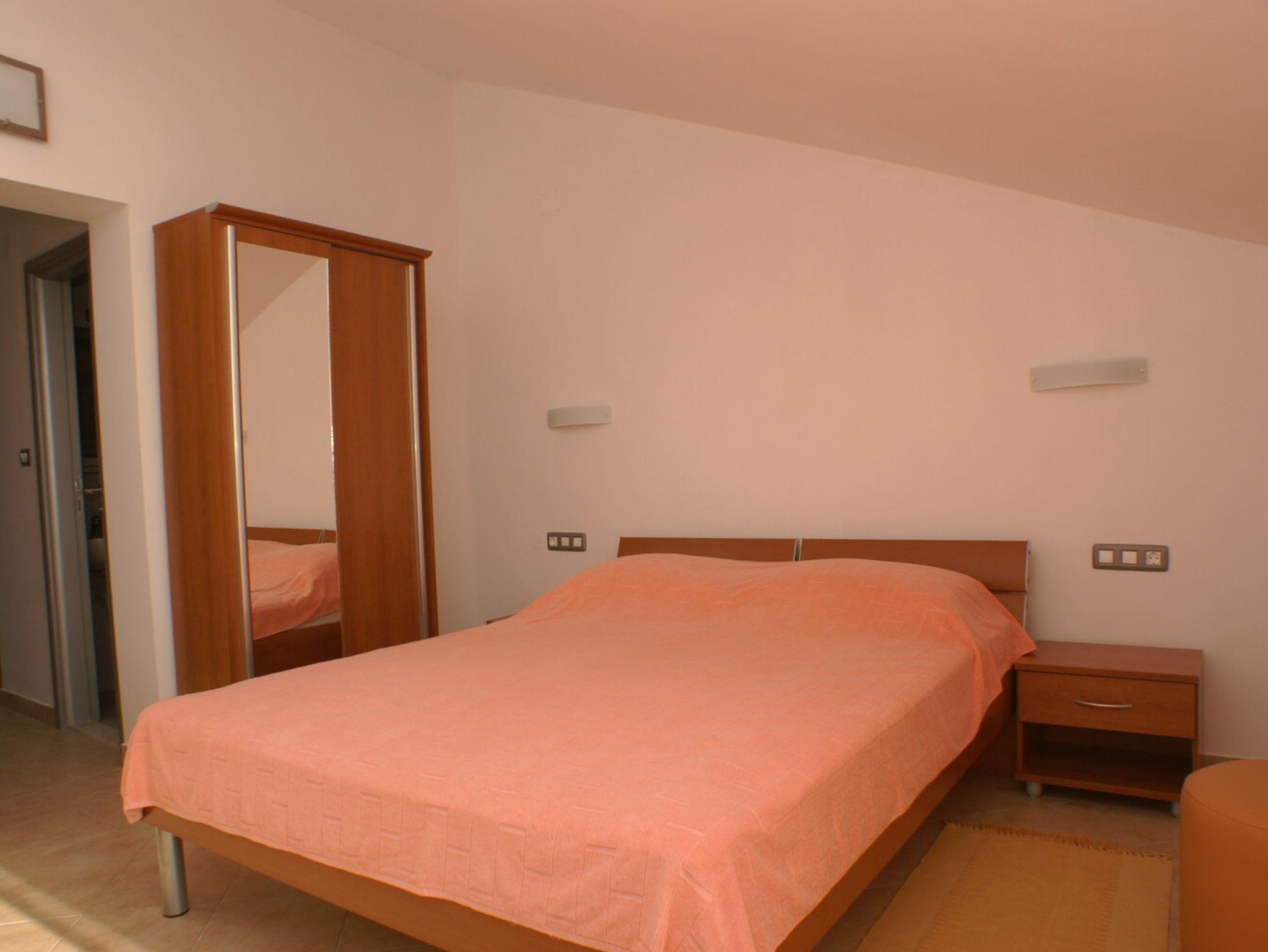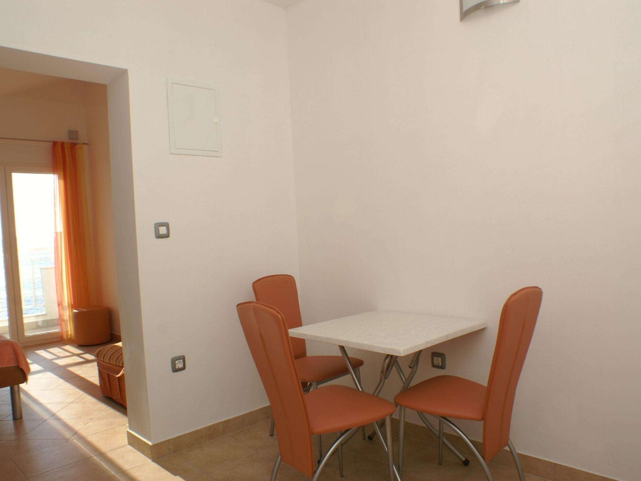 Studio bietet Platz für 3 Gäste. Die Betten sind in Schlafzimmern, die es 1 gibt, innerhalb einer Gesamtfläche von 24m2, angeordnet. Die Gäste haben eine eigene Terrasse zur Verfügung, auf der sie in warmen Sommernächten genießen können. Das Studio-Apartment bietet Meerblick. IM PREIS INBEGRIFFEN: Kurtaxe, Endreinigung, Parkplatz, Internet, Kinderbett. VERBINDLICHE ZUSÄTZLICHE KOSTEN: Aufzahlung für Kurzaufenthalte (prozentualer Zuschlag pro Nächtigungsanzahl: 30% - 1, 20% - 2, 10% - 3). UNVERBINDLICHE ZUSÄTZLICHE KOSTEN: Klimatisierung (5,00 € pro Nacht). Die Verfügbarkeit zusätzlicher Dienstleistungen in Ihrem reservierten Termin und die Preise derselben (falls nicht aufgeführt) müssen im Voraus überprüft werden. Zusätzliche Dienstleistungen die in der Zahlungsaufforderung nicht aufgeführt sind werden direkt beim Vermieter bezahlt, angenommen der Gast nutzt auch diese. Ermäßigung auf den Grundpreis: Gratistag 14=13 (bei einem Aufenthalt von 14 Tagen oder mehr erhalten Sie einen Gratistag für den Aufenthalt bis 31.12.26).