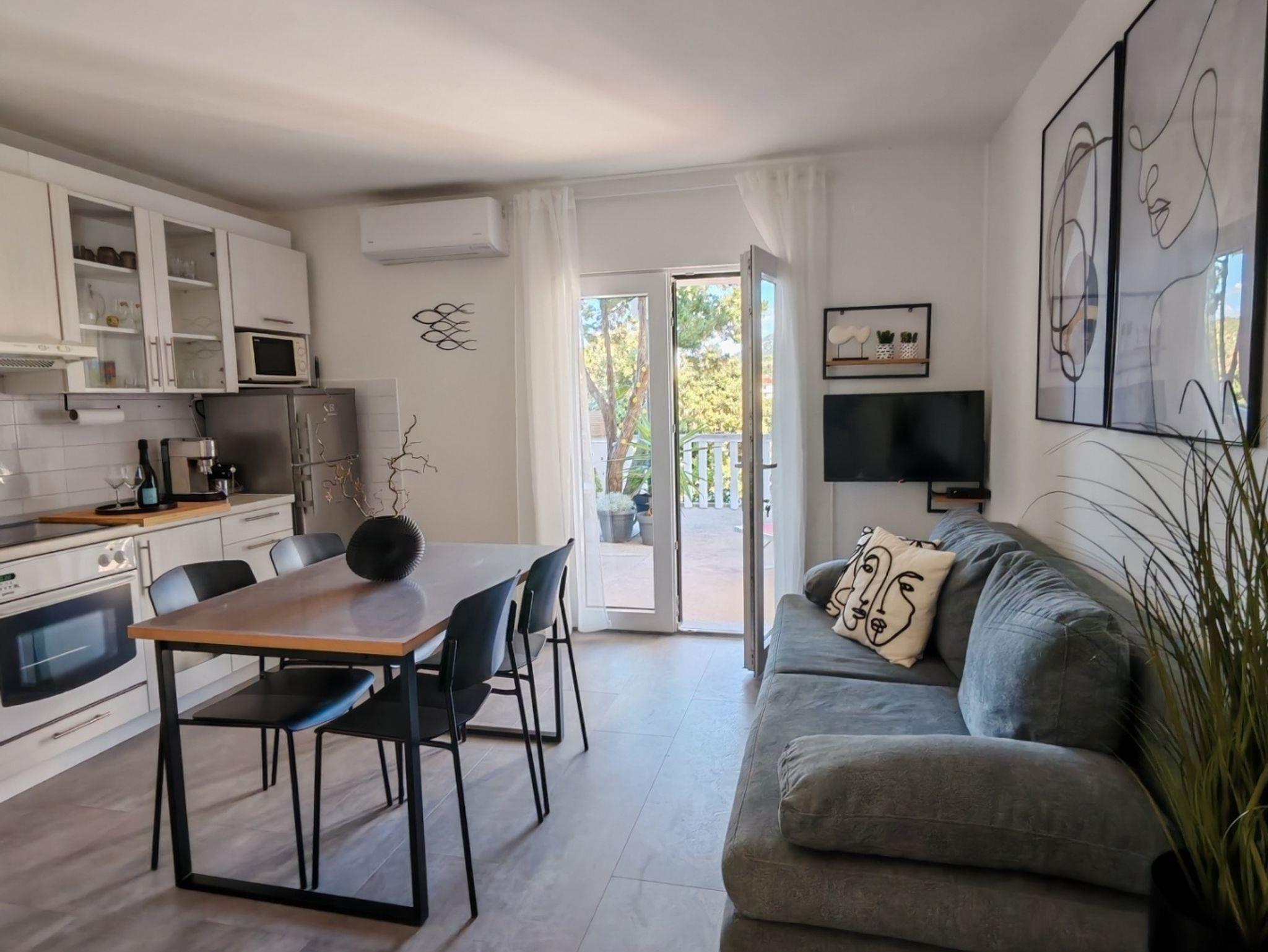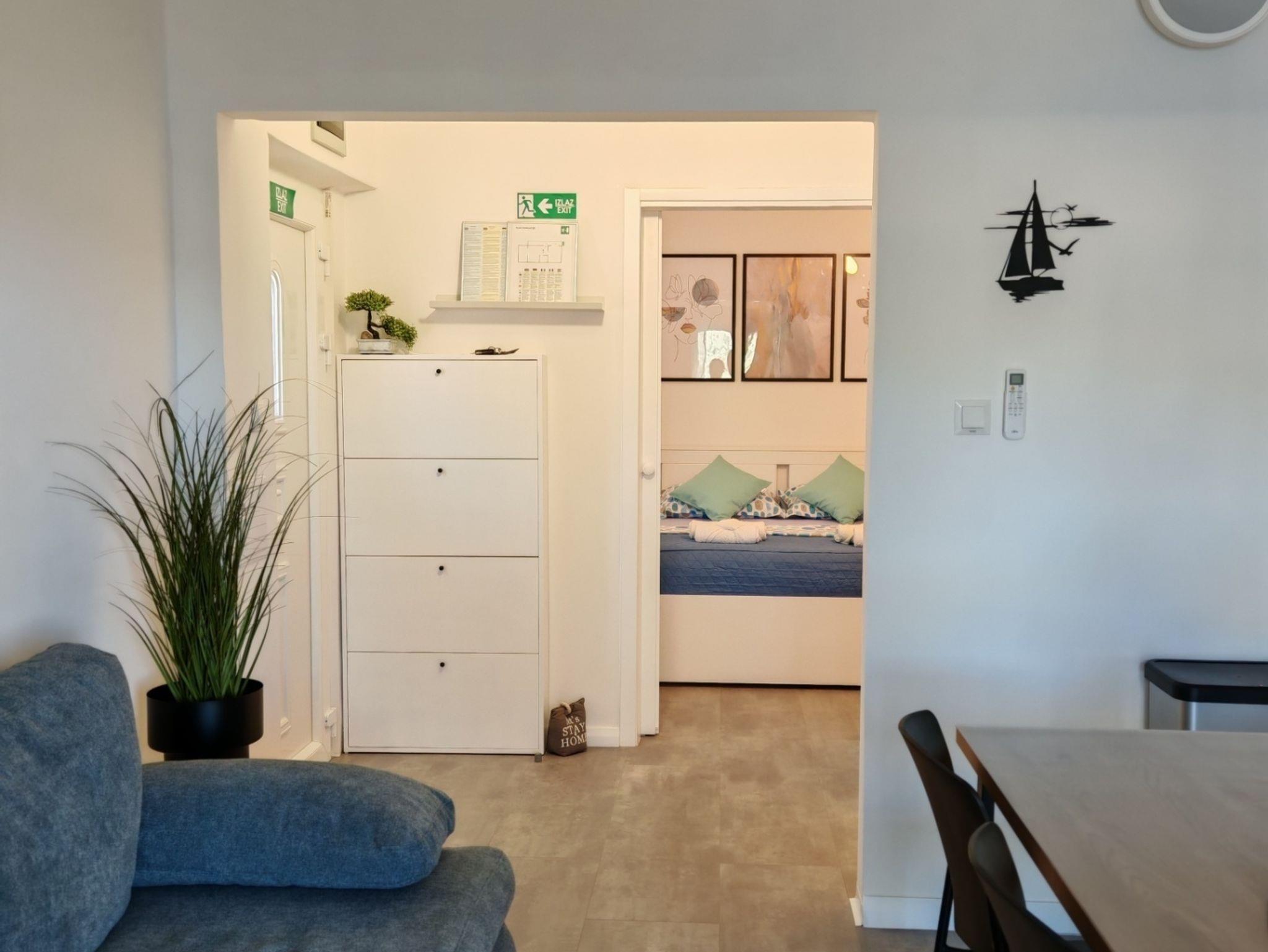 Ferienwohnung bietet Platz für 4 Gäste. Die Betten sind in Schlafzimmern, die es 1 gibt, und in Wohnzimmer, innerhalb einer Gesamtfläche von 39m2, angeordnet. Die Gäste haben eine eigene Terrasse zur Verfügung, auf der sie in warmen Sommernächten genießen können. Das Apartment bietet Meerblick. Für vollen Genuss und Entspannung gibt es einen privaten Grill für Gäste dieser Unterkunft. In der Unterkunftseinheit besteht die Möglichkeit des Mitbringens von Haustieren, und die Dienstleistung ist im Preis der Unterkunft enthalten. IM PREIS INBEGRIFFEN: Kurtaxe, Endreinigung, Klimatisierung, Parkplatz, Internet, Bootsanlegeplatz, Haustiere, Bügeleisen, Föhn, tragbarer Grill, Sonnenschirm. Die Verfügbarkeit zusätzlicher Dienstleistungen in Ihrem reservierten Termin und die Preise derselben (falls nicht aufgeführt) müssen im Voraus überprüft werden. Zusätzliche Dienstleistungen die in der Zahlungsaufforderung nicht aufgeführt sind werden direkt beim Vermieter bezahlt, angenommen der Gast nutzt auch diese. Ermäßigung auf den Grundpreis: Gratistag 14=13 (bei einem Aufenthalt von 14 Tagen oder mehr erhalten Sie einen Gratistag für den Aufenthalt bis 31.12.26).
