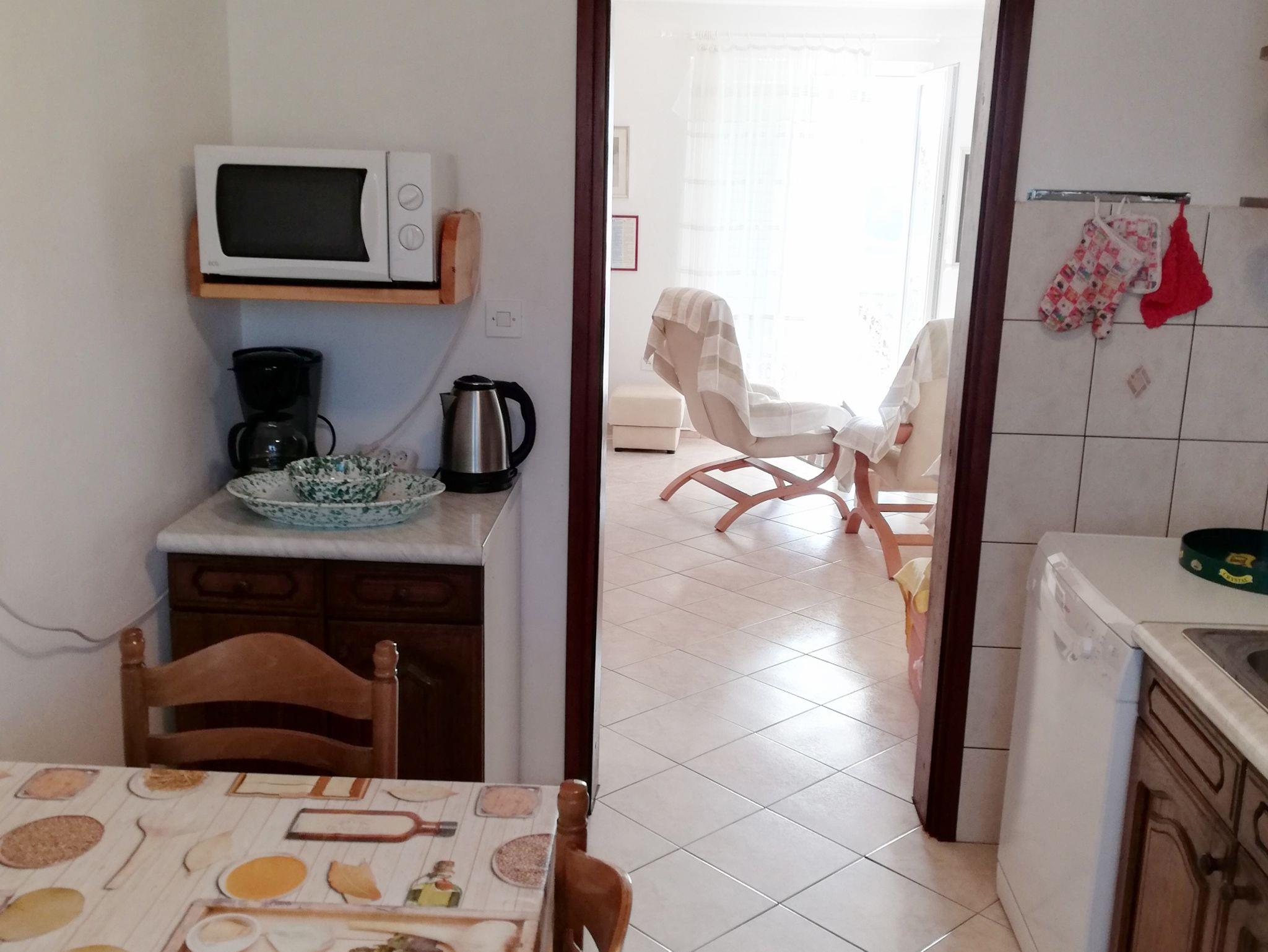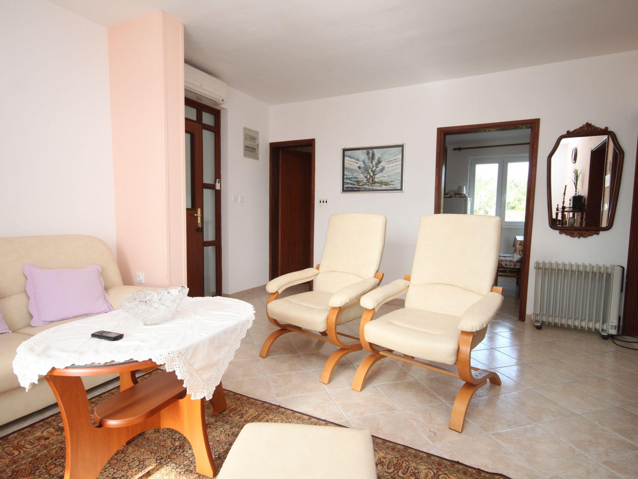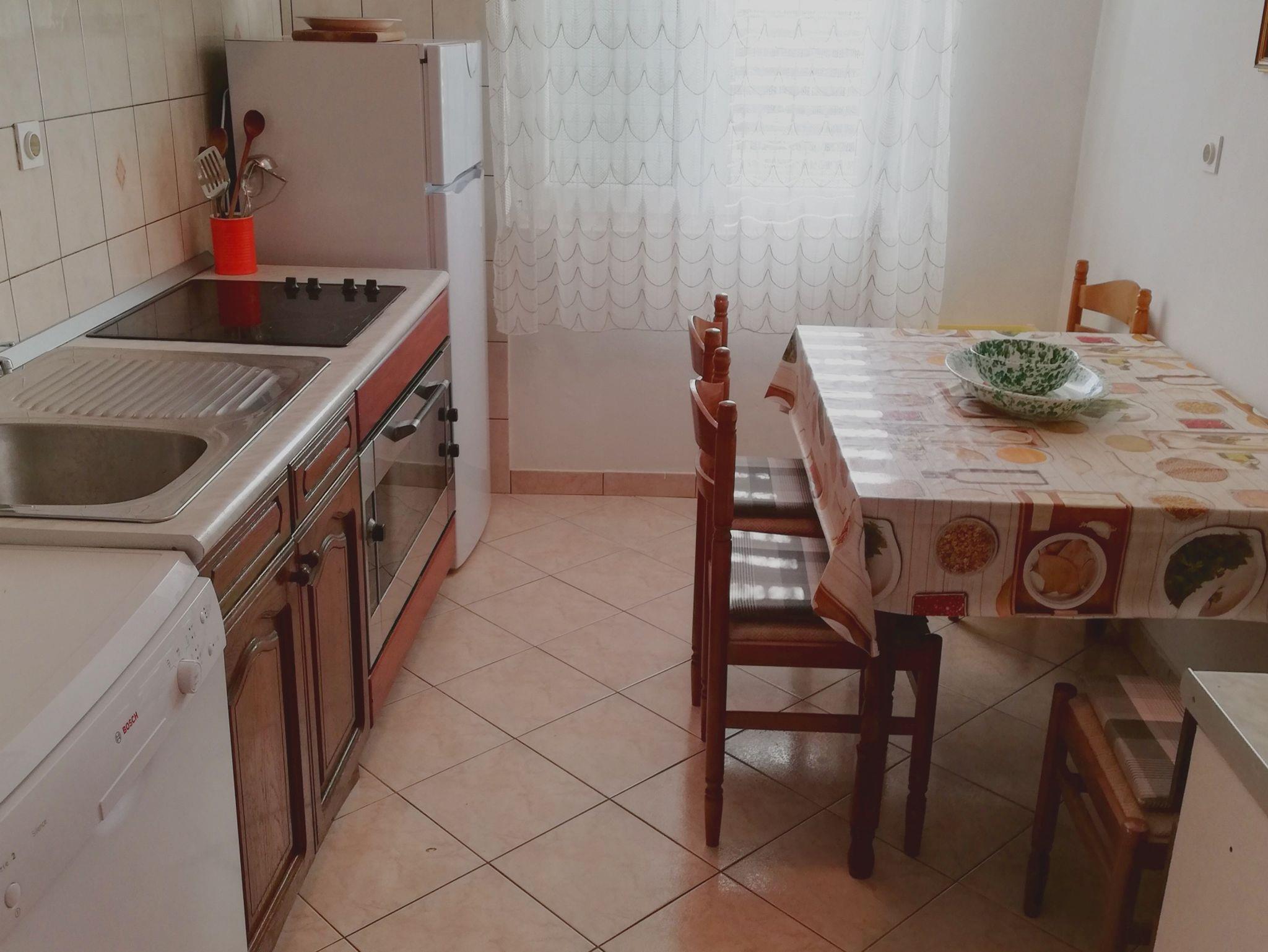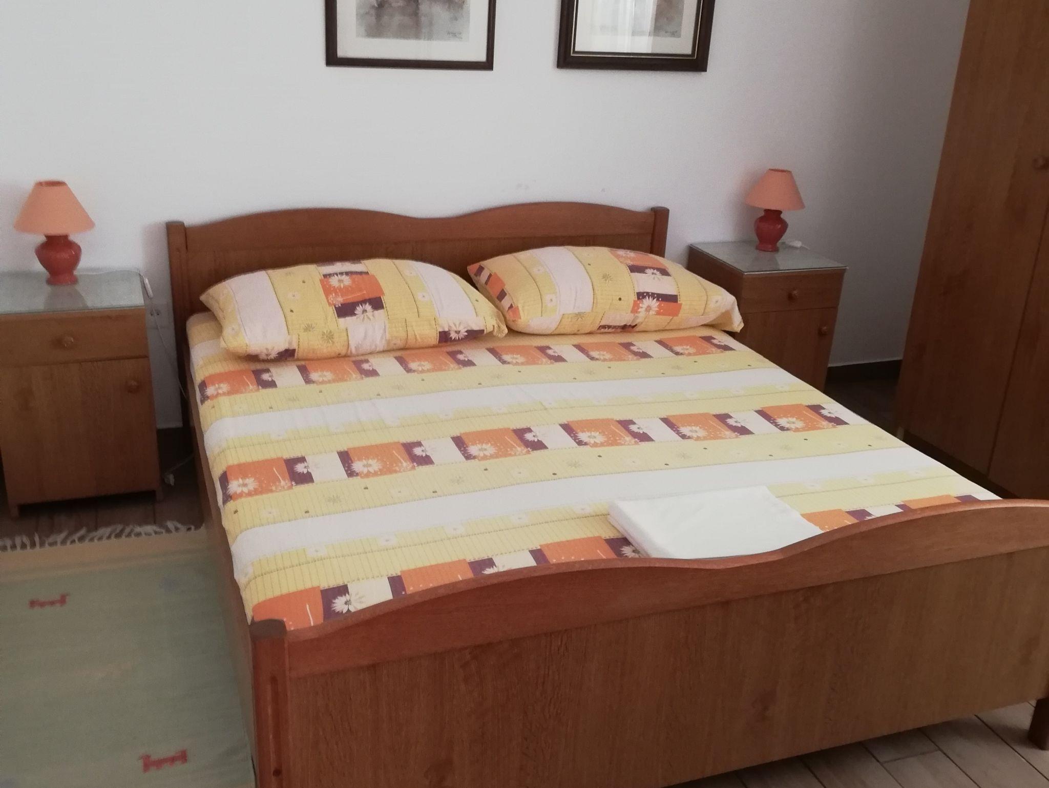 Ferienwohnung bietet Platz für 6 Gäste. Die Betten sind in Schlafzimmern, die es 2 gibt, und in Wohnzimmer, innerhalb einer Gesamtfläche von 51m2, angeordnet. Die Gäste haben eine eigene Terrasse zur Verfügung, auf der sie in warmen Sommernächten genießen können. Das Apartment bietet Meerblick. Es ist erlaubt, Speisen auf dem Gemeinschafts-Grill vorzubereiten. IM PREIS INBEGRIFFEN: Kurtaxe, Endreinigung, Parkplatz, Internet, Bootsanlegeplatz, Bügeleisen, Bügelbrett, Föhn, Sonnenschirm. VERBINDLICHE ZUSÄTZLICHE KOSTEN: Aufzahlung für Kurzaufenthalte (prozentualer Zuschlag pro Nächtigungsanzahl: 30% - 1, 20% - 2, 10% - 3). UNVERBINDLICHE ZUSÄTZLICHE KOSTEN: Klimatisierung (5,00 € pro Nacht), Zusatzbett (9,00 € pro Nacht). Die Verfügbarkeit zusätzlicher Dienstleistungen in Ihrem reservierten Termin und die Preise derselben (falls nicht aufgeführt) müssen im Voraus überprüft werden. Zusätzliche Dienstleistungen die in der Zahlungsaufforderung nicht aufgeführt sind werden direkt beim Vermieter bezahlt, angenommen der Gast nutzt auch diese.