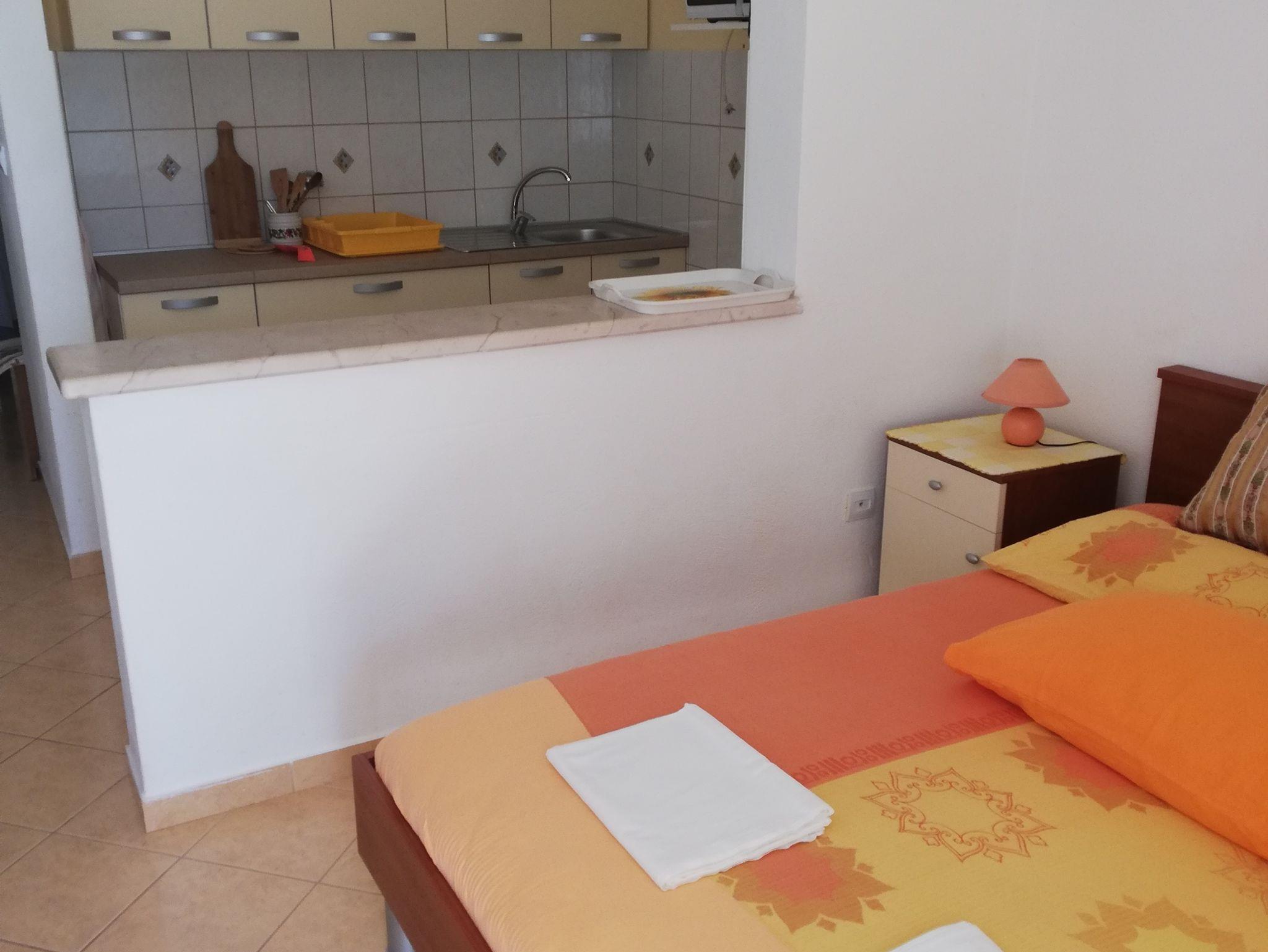 Studio bietet Platz für 3 Gäste. Die Betten sind in Schlafzimmern, die es 1 gibt, innerhalb einer Gesamtfläche von 25m2, angeordnet. Die Gäste haben eine eigene Terrasse zur Verfügung, auf der sie in warmen Sommernächten genießen können. Das Studio-Apartment bietet Meerblick. Es ist erlaubt, Speisen auf dem Gemeinschafts-Grill vorzubereiten. IM PREIS INBEGRIFFEN: Kurtaxe, Endreinigung, Parkplatz, Internet, Bootsanlegeplatz, Bügeleisen, Bügelbrett, Föhn, Sonnenschirm. VERBINDLICHE ZUSÄTZLICHE KOSTEN: Aufzahlung für Kurzaufenthalte (prozentualer Zuschlag pro Nächtigungsanzahl: 30% - 1, 20% - 2, 10% - 3). UNVERBINDLICHE ZUSÄTZLICHE KOSTEN: Klimatisierung (5,00 € pro Nacht). Die Verfügbarkeit zusätzlicher Dienstleistungen in Ihrem reservierten Termin und die Preise derselben (falls nicht aufgeführt) müssen im Voraus überprüft werden. Zusätzliche Dienstleistungen die in der Zahlungsaufforderung nicht aufgeführt sind werden direkt beim Vermieter bezahlt, angenommen der Gast nutzt auch diese.