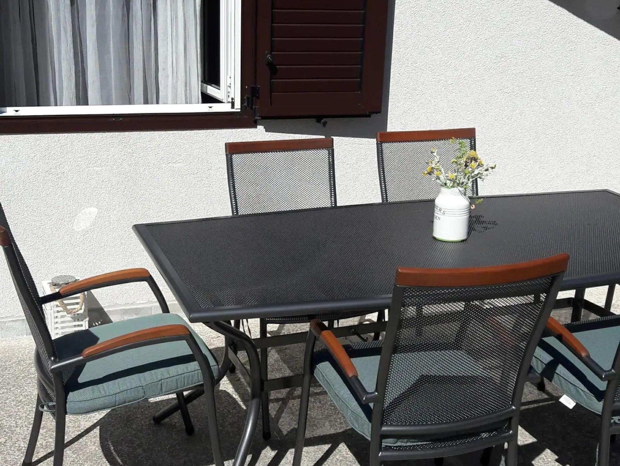 Hof (100m2, Sitzbereich), Parkplatz (Anzahl der Parkplätze: 4, Entfernung vom Objekt: im Hof), Grill: gemeinsam, WiFi Internet, Föhn, Bügeleisen, Bügelbrett, Tragbarer Grill, Kinderbett