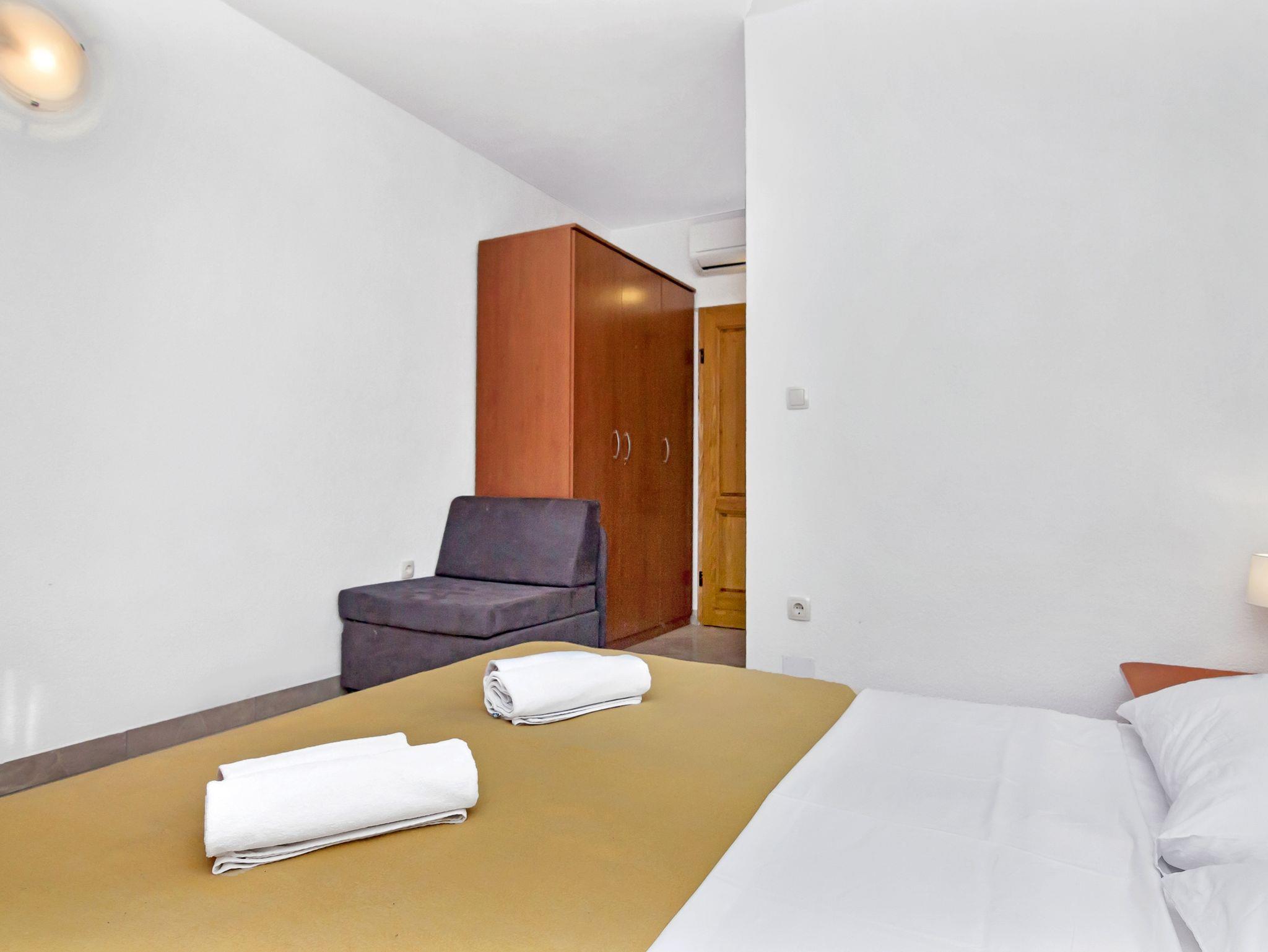 Ferienwohnung bietet Platz für 5 Gäste. Die Betten sind in Schlafzimmern, die es 1 gibt, und in Wohnzimmer, innerhalb einer Gesamtfläche von 36m2, angeordnet. Die Gäste haben eine eigene Terrasse zur Verfügung, auf der sie in warmen Sommernächten genießen können. Das Apartment bietet Meerblick. Es ist erlaubt, Speisen auf dem Gemeinschafts-Grill vorzubereiten. In der Unterkunftseinheit besteht die Möglichkeit des Mitbringens von Haustieren gegen Aufpreis. IM PREIS INBEGRIFFEN: Kurtaxe, Endreinigung, Klimatisierung, Parkplatz, Internet, Bootsanlegeplatz, Kinderbett. UNVERBINDLICHE ZUSÄTZLICHE KOSTEN: Haustiere (13,00 € pro Nacht). Die Verfügbarkeit zusätzlicher Dienstleistungen in Ihrem reservierten Termin und die Preise derselben (falls nicht aufgeführt) müssen im Voraus überprüft werden. Zusätzliche Dienstleistungen die in der Zahlungsaufforderung nicht aufgeführt sind werden direkt beim Vermieter bezahlt, angenommen der Gast nutzt auch diese.