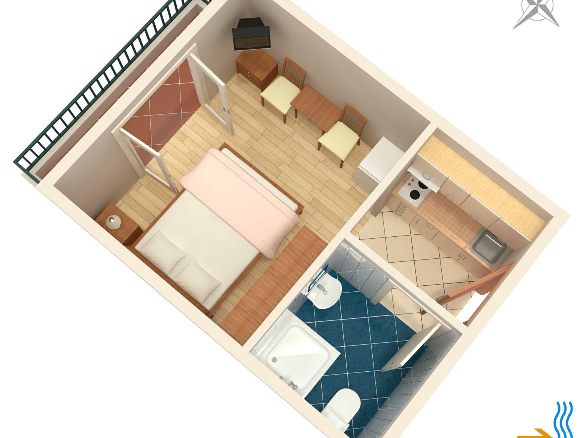 Studio bietet Platz für 2 Gäste. Die Betten sind in Schlafzimmern, die es 1 gibt, innerhalb einer Gesamtfläche von 16m2, angeordnet. Die Gäste haben einen eigenen Balkon zur Verfügung, auf der sie in warmen Sommernächten genießen können. Es ist erlaubt, Speisen auf dem Gemeinschafts-Grill vorzubereiten. In der Unterkunftseinheit besteht die Möglichkeit des Mitbringens von Haustieren gegen Aufpreis. IM PREIS INBEGRIFFEN: Kurtaxe, Endreinigung, Klimatisierung, Parkplatz, Internet, Bootsanlegeplatz, Kinderbett. UNVERBINDLICHE ZUSÄTZLICHE KOSTEN: Haustiere (13,00 € pro Nacht). Die Verfügbarkeit zusätzlicher Dienstleistungen in Ihrem reservierten Termin und die Preise derselben (falls nicht aufgeführt) müssen im Voraus überprüft werden. Zusätzliche Dienstleistungen die in der Zahlungsaufforderung nicht aufgeführt sind werden direkt beim Vermieter bezahlt, angenommen der Gast nutzt auch diese.