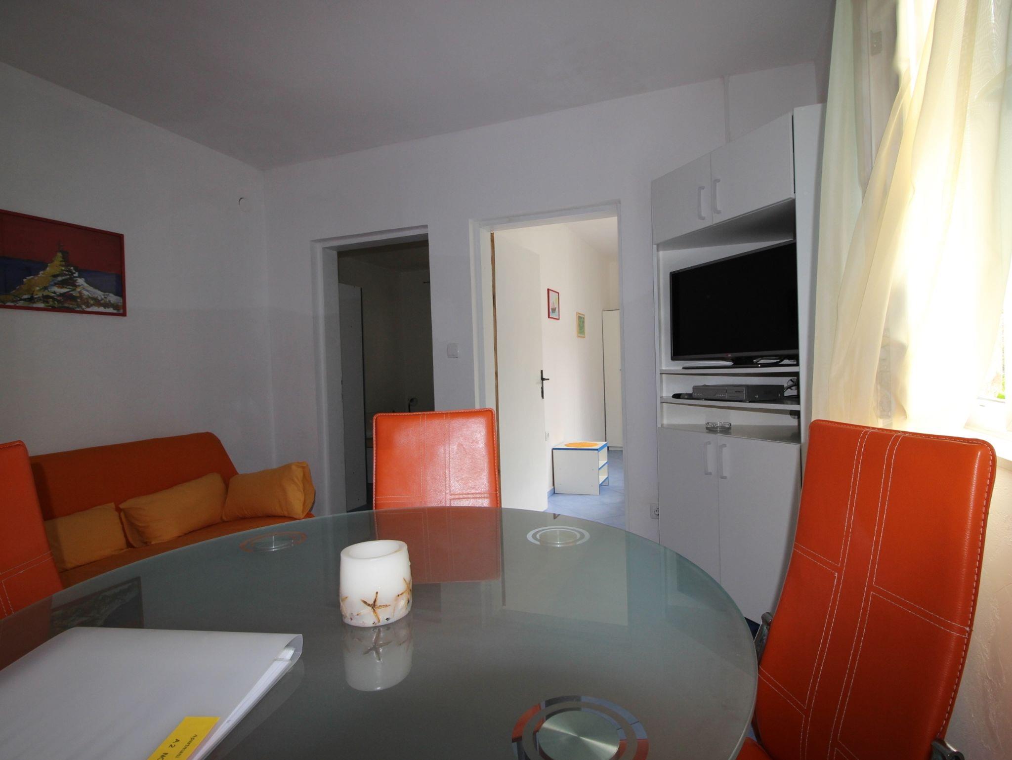 Ferienwohnung bietet Platz für 4 Gäste. Die Betten sind in Schlafzimmern, die es 2 gibt, innerhalb einer Gesamtfläche von 35m2, angeordnet. Die Gäste haben einen eigenen Balkon zur Verfügung, auf der sie in warmen Sommernächten genießen können. Das Apartment bietet Meerblick. Für vollen Genuss und Entspannung gibt es einen privaten Grill für Gäste dieser Unterkunft. In der Unterkunftseinheit besteht die Möglichkeit des Mitbringens von Haustieren gegen Aufpreis. Die reservierte Unterkunftseinheit verfügt über einen gemeinsame Terrasse. IM PREIS INBEGRIFFEN: Kurtaxe, Endreinigung, Klimatisierung, Parkplatz, Internet, Bügeleisen, Föhn. UNVERBINDLICHE ZUSÄTZLICHE KOSTEN: Wäschewaschen (10,00 € Waschen), Haustiere (10,00 € pro Nacht), Zusatzbett (10,00 € pro Nacht). Die Verfügbarkeit zusätzlicher Dienstleistungen in Ihrem reservierten Termin und die Preise derselben (falls nicht aufgeführt) müssen im Voraus überprüft werden. Zusätzliche Dienstleistungen die in der Zahlungsaufforderung nicht aufgeführt sind werden direkt beim Vermieter bezahlt, angenommen der Gast nutzt auch diese. Ermäßigung auf den Grundpreis: Gratistag 21=19 (bei einem Aufenthalt von 21 Tagen oder mehr erhalten Sie 2 Gratistage für den Aufenthalt bis 31.12.26).