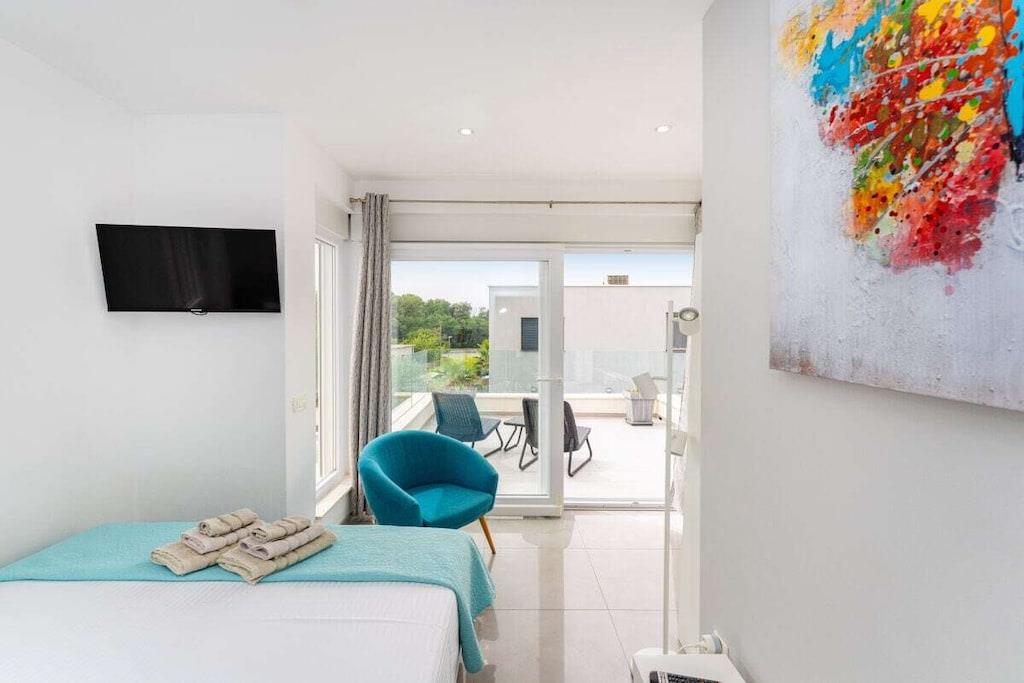 Nyd en stilfuld oplevelse i denne centralt beliggende indkvartering. Der er også et smukt udendørsområde med en opvarmet pool og en grillplads til at nyde og slappe af. To gratis, skyggefulde parkeringspladser er tilgængelige direkte ved huset. Køkkenet er fuldt udstyret, og sengelinned og håndklæder er inkluderet. Plisa Strand ligger cirka 1 km væk. Butikker, et udendørs fitnesscenter, et bageri, et fiskemarked og restauranter ligger også i nærheden.