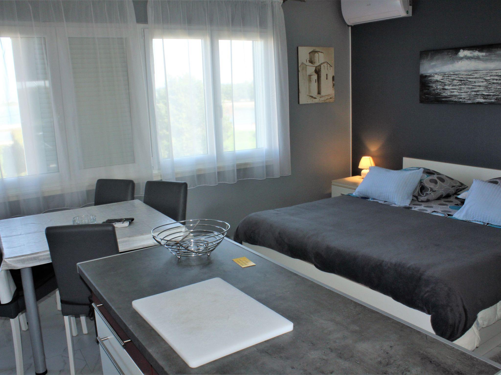Holiday apartments within walking distance to the sea and a communal garden with barbecue This house with five holiday apartments is located in Croatia's sunny Dalmatia province, within walking distance from the sea and beach. The house is in very comfortable and quiet surroundings.