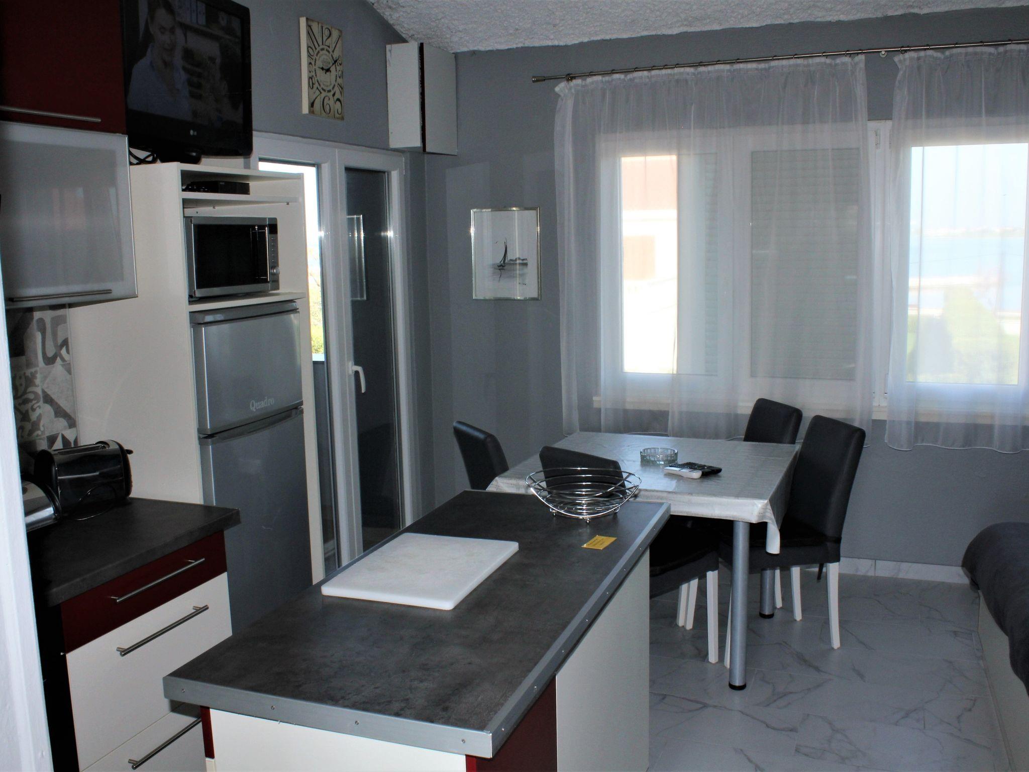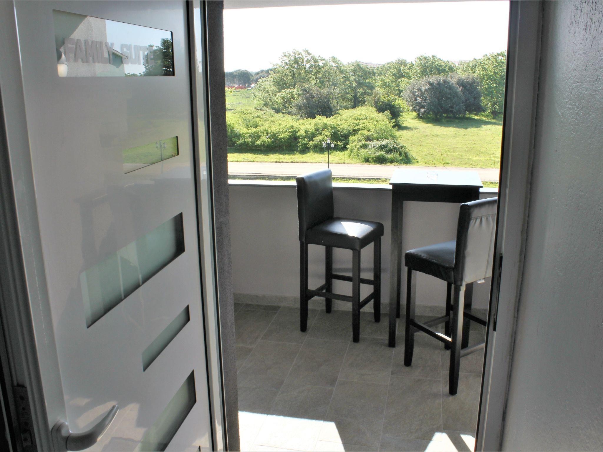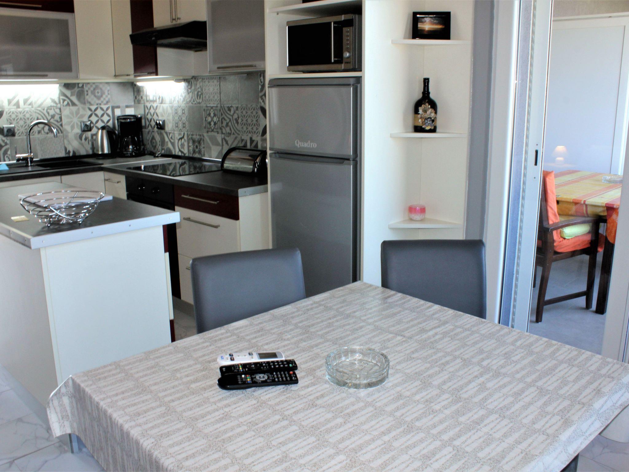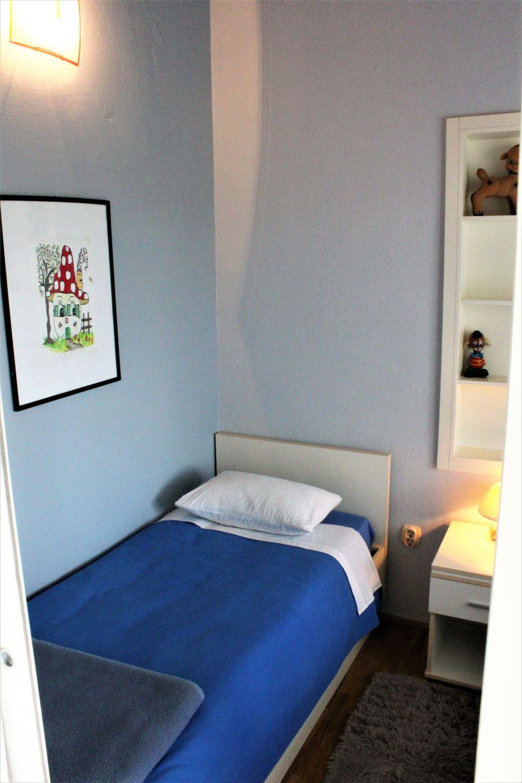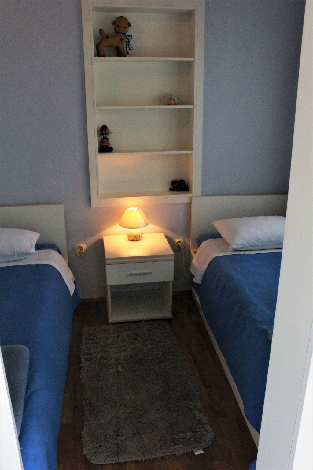 The apartment is located on the first floor and its overall size is 44 m2 (including the balcony). It has one bedroom and can accommodate four persons. There is a double bed in the living area and the bedroom is furnished with two single beds. The kitchen is fully equipped, complete kitchen utensils, microwave and electric oven, gas cooking plate, electric kettle, toaster, fridge with freezer, refrigerator water. The apartment is air conditioned, equipped with digital satellite system (approximately 2000 free channels), DVD player and 26 “LED TV. Internet access via WLAN. In the bathroom there is a washing machine which is used exclusively by guests of the apartments.
