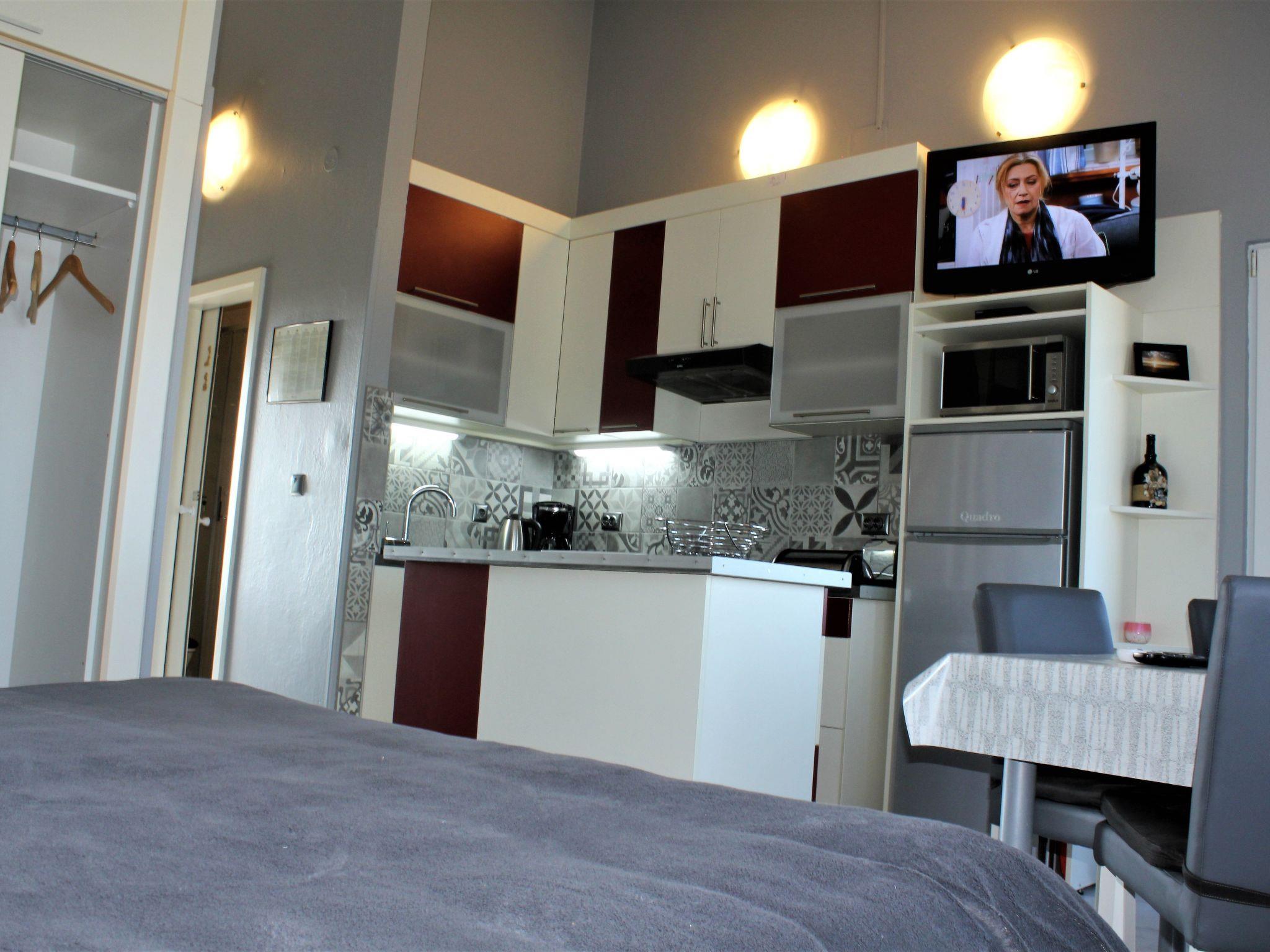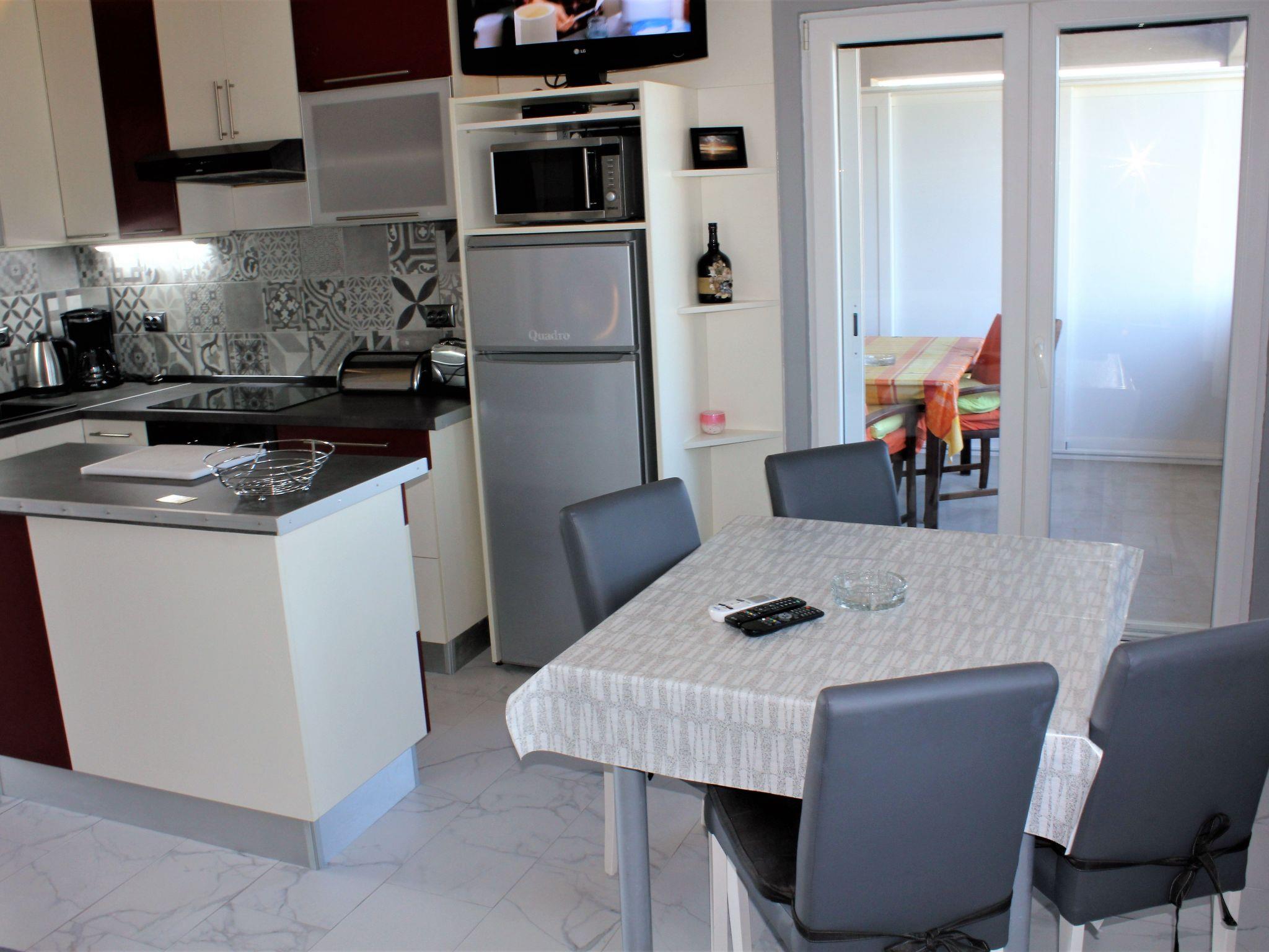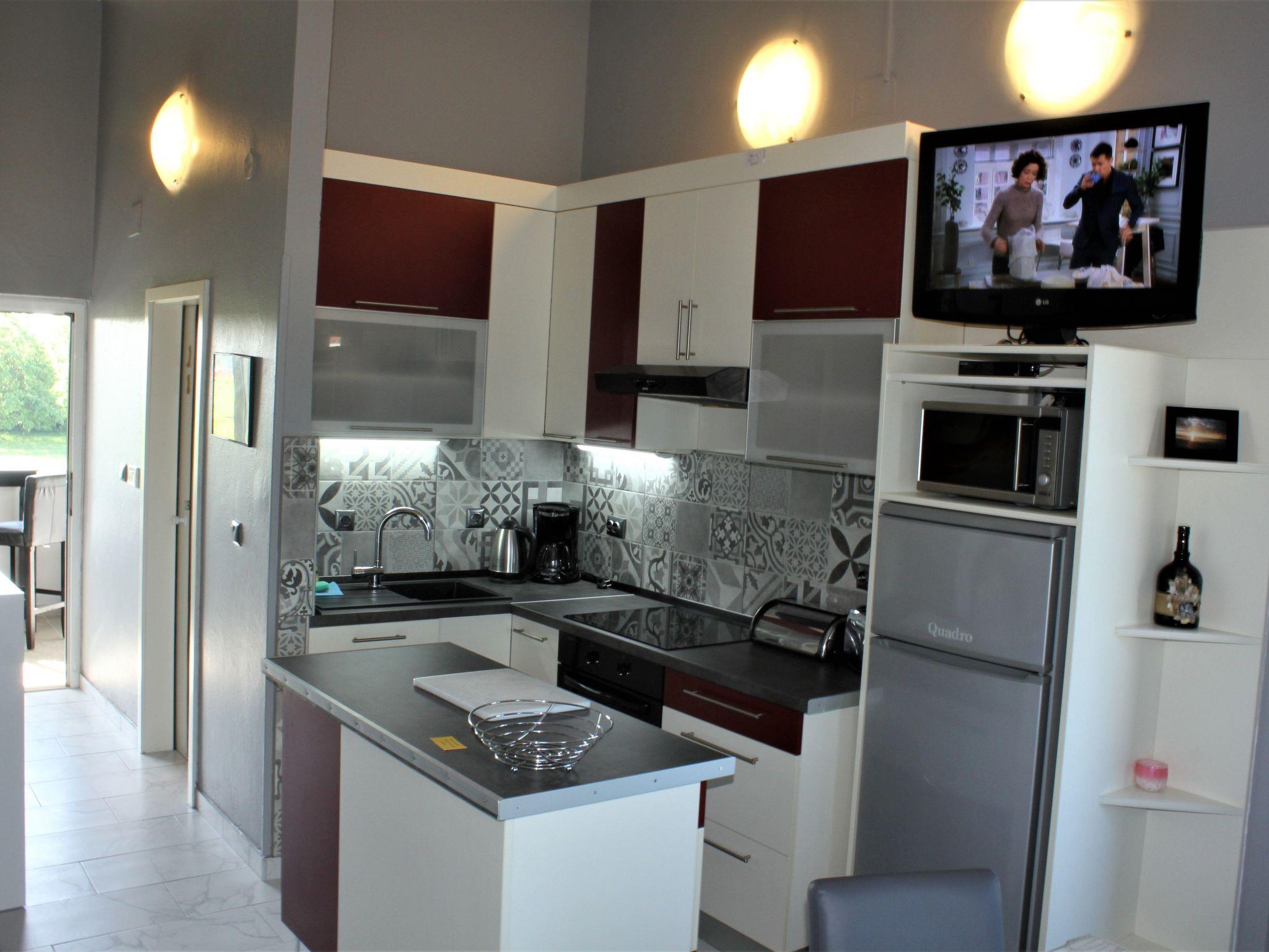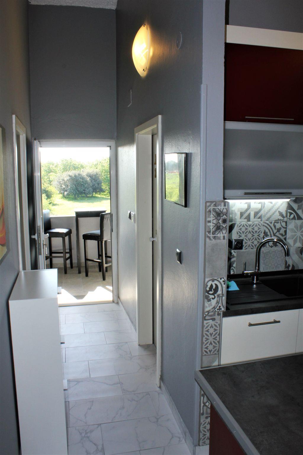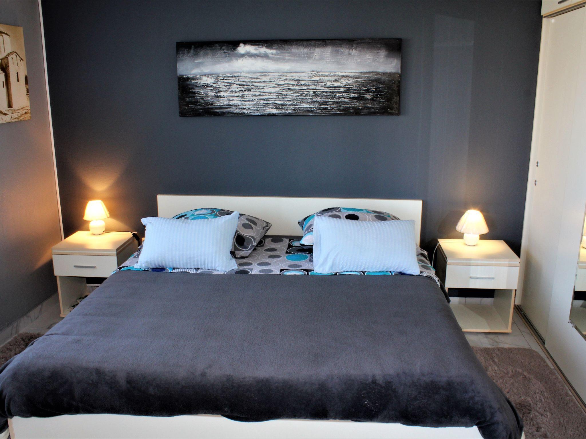 The apartment is located on the first floor and its overall size is 44 m2 (including the balcony). It has one bedroom and can accommodate four persons. There is a double bed in the living area and the bedroom is furnished with two single beds. The kitchen is fully equipped, complete kitchen utensils, microwave and electric oven, gas cooking plate, electric kettle, toaster, fridge with freezer, refrigerator water. The apartment is air conditioned, equipped with digital satellite system (approximately 2000 free channels), DVD player and 26 “LED TV. Internet access via WLAN. In the bathroom there is a washing machine which is used exclusively by guests of the apartments.