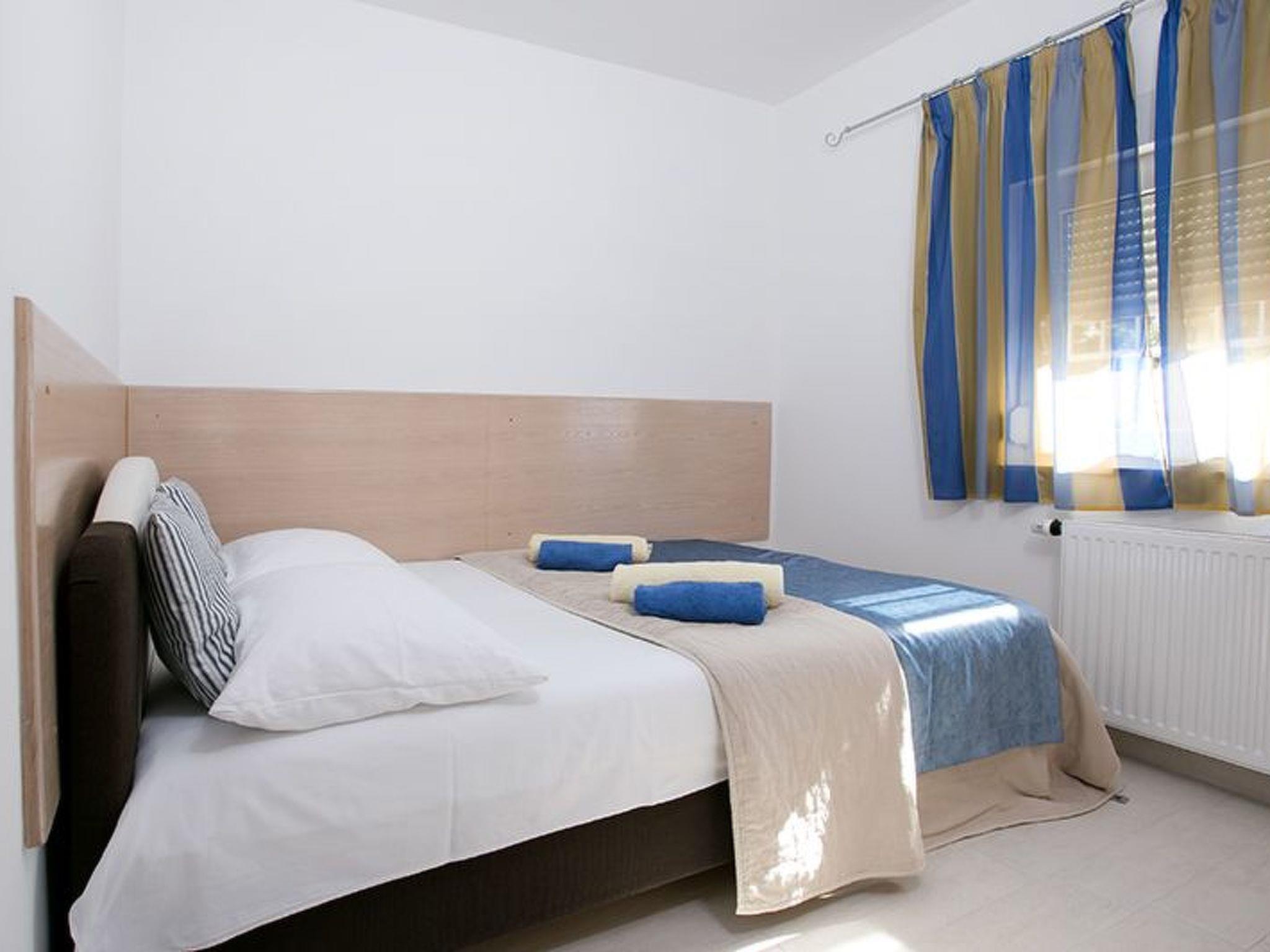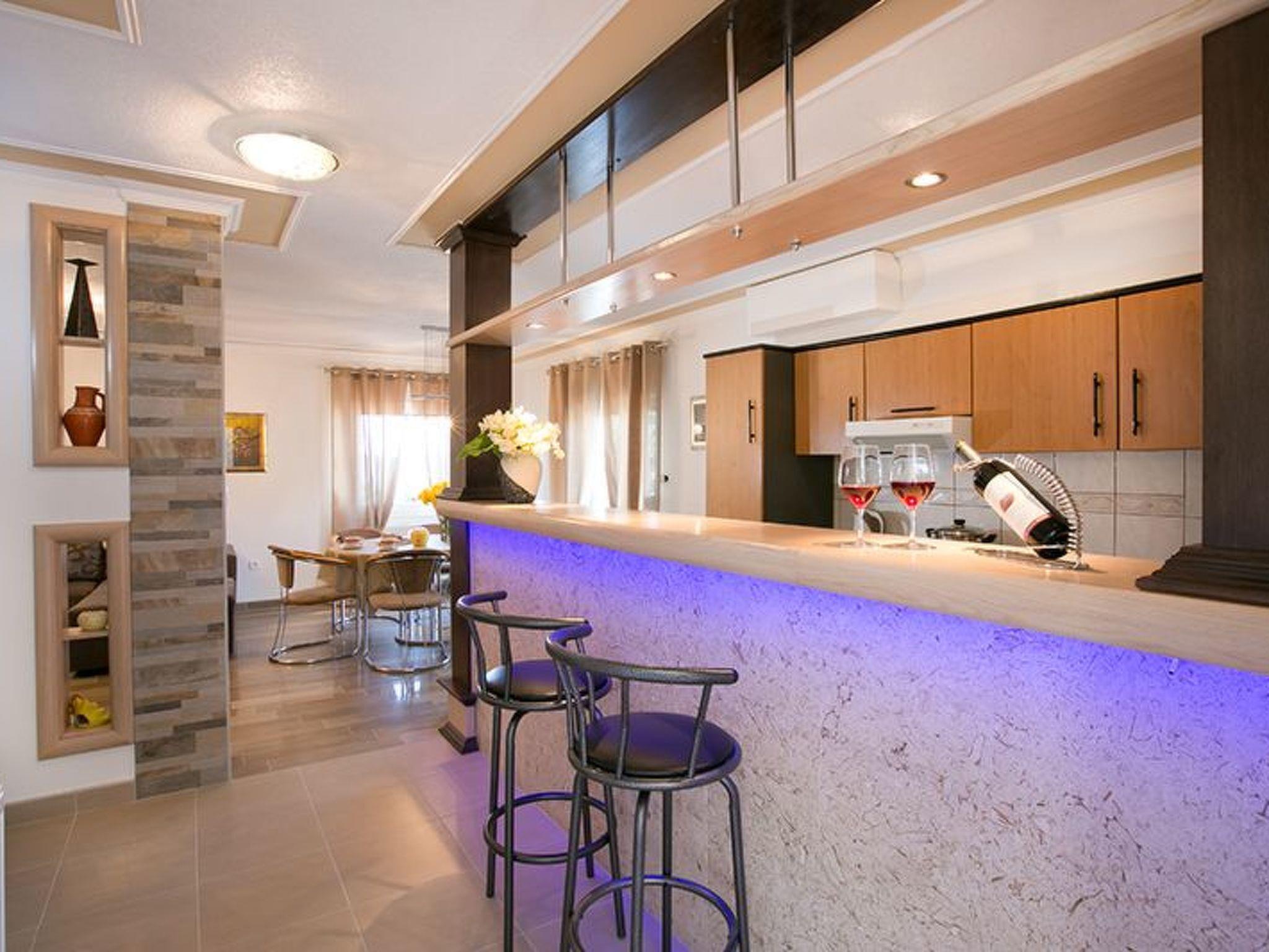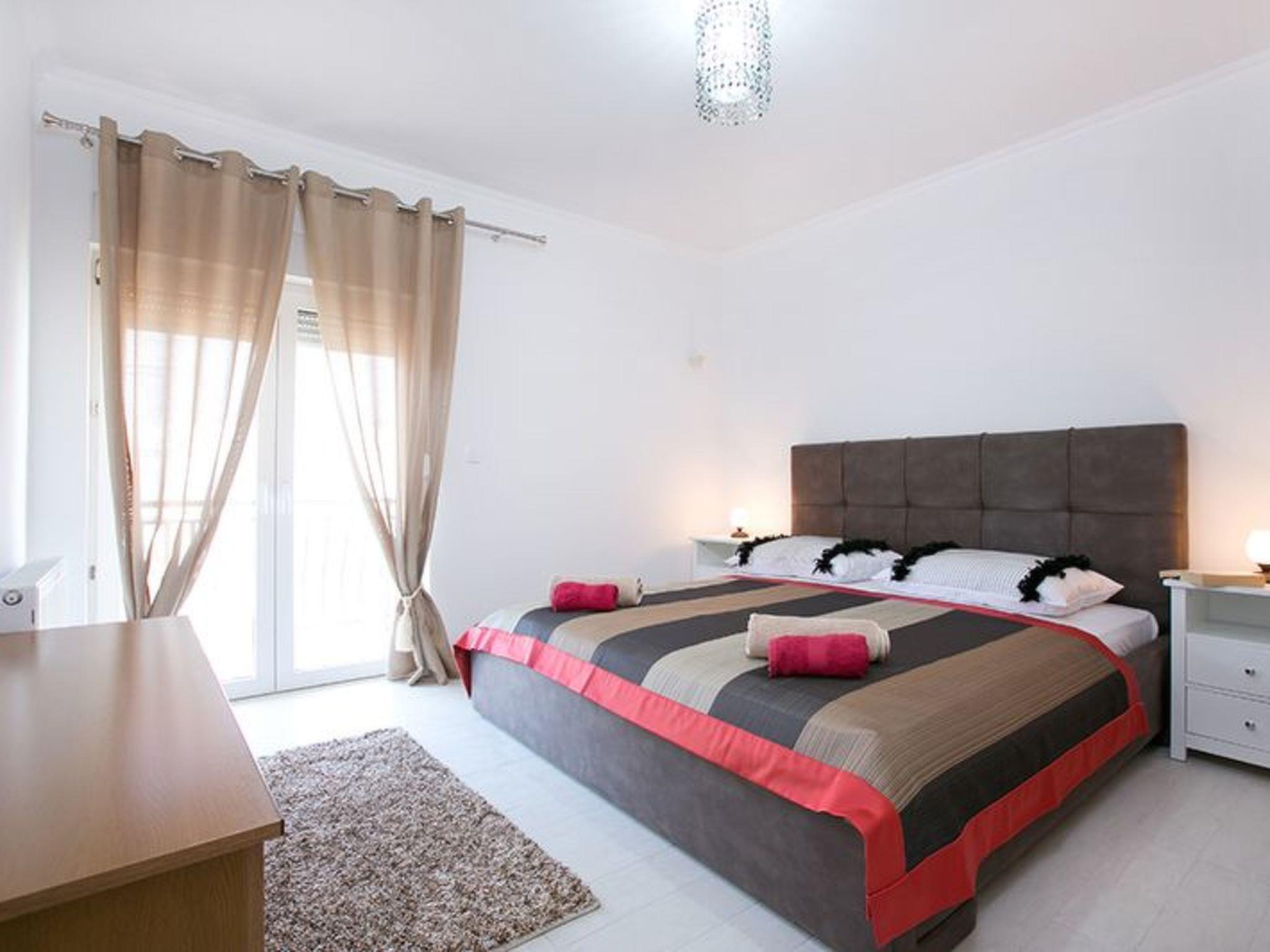The apartment has 100m2 Is intended for 4 people ( + 2 child possible under 14 years ) and consist of 3 bed rooms with double bed, 2 bathrooms ( on with shower other only toilet ) , open space living room and kitchen ( dish washer, Owen, hob, coffee-machine, microwave, large fridge ) large balcony with table and chairs and sea view, air-condition, washing machine, SAT TV. outside grill.
