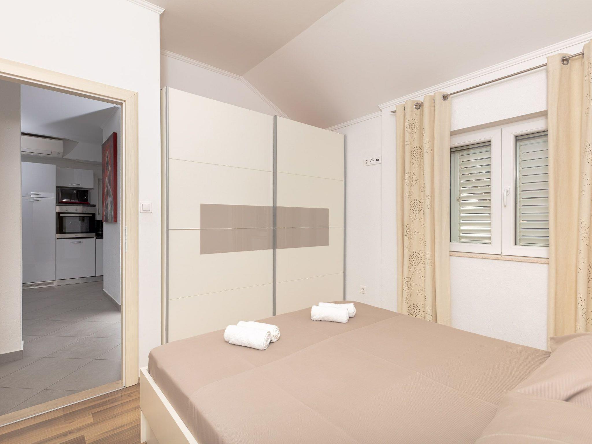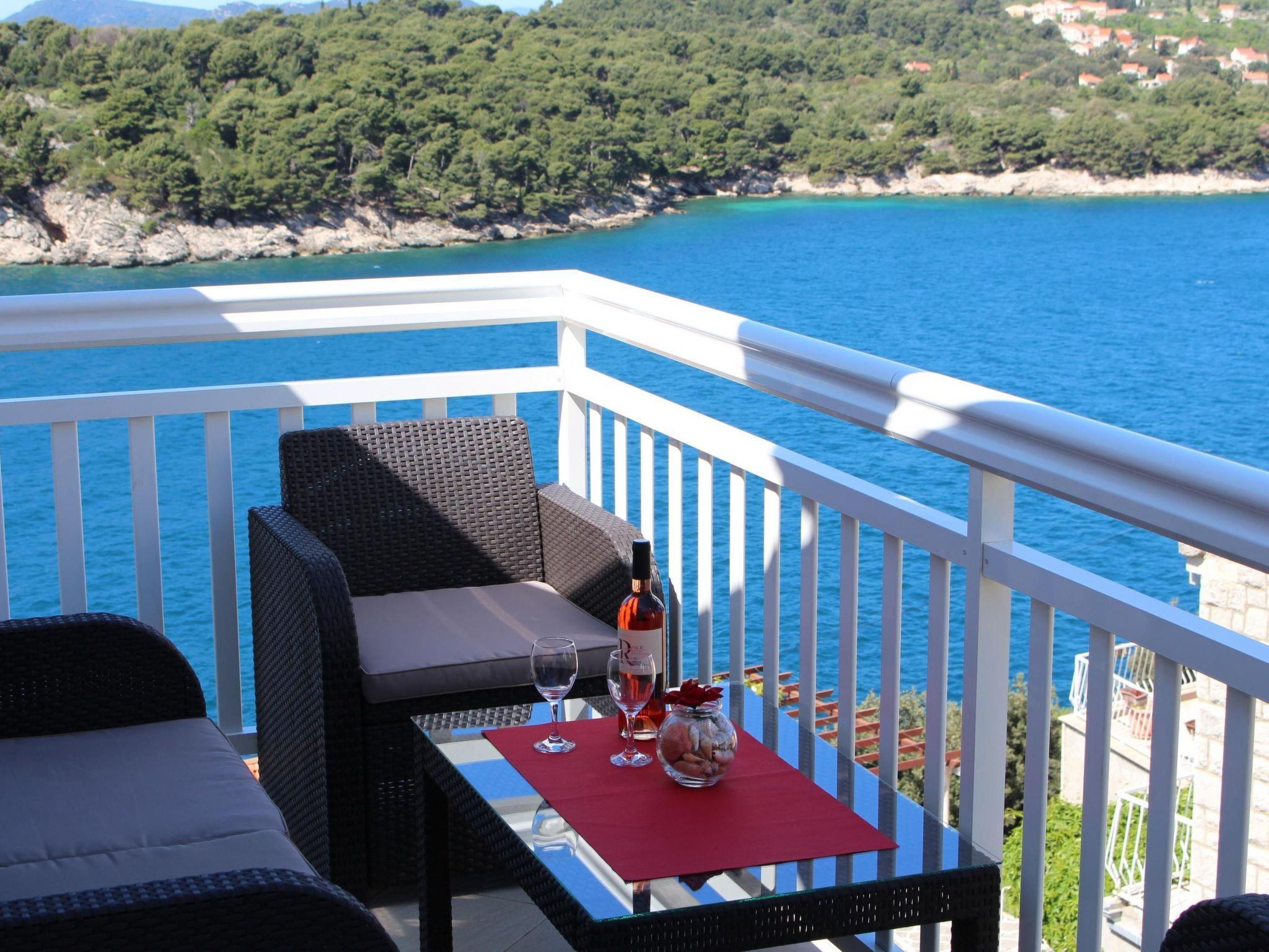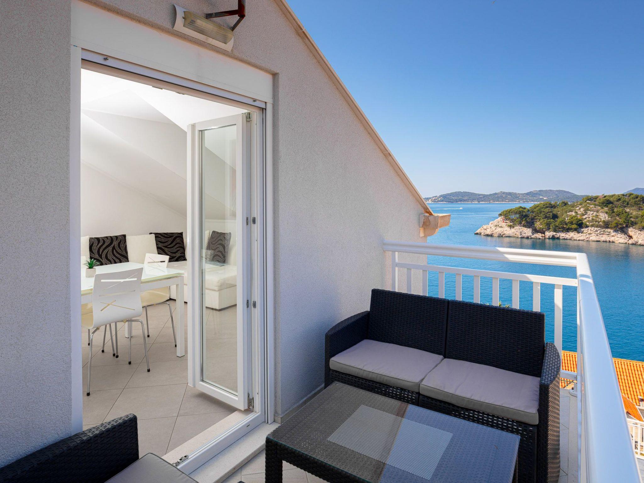 The balcony with a view of the Elaphiti Islands has enough space for a little dining table. Private parking spaces are provided.