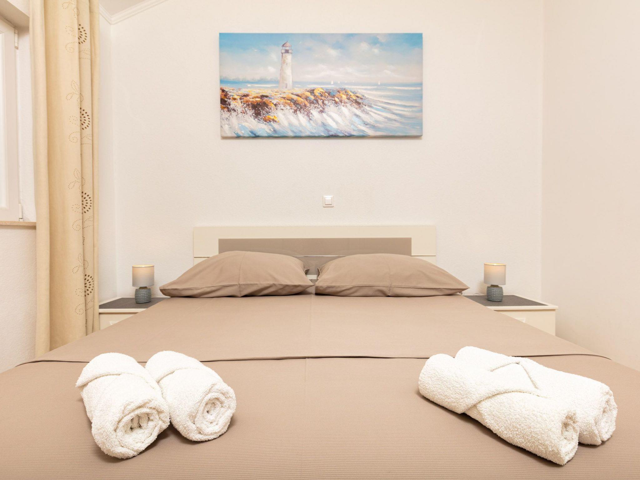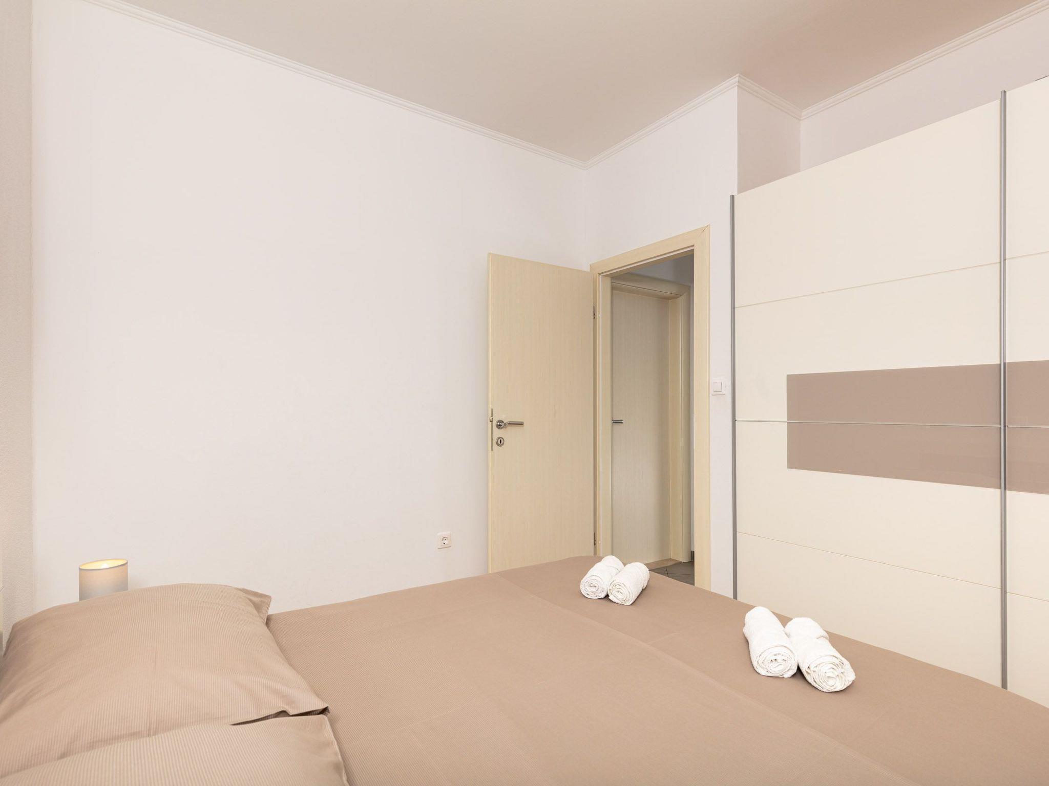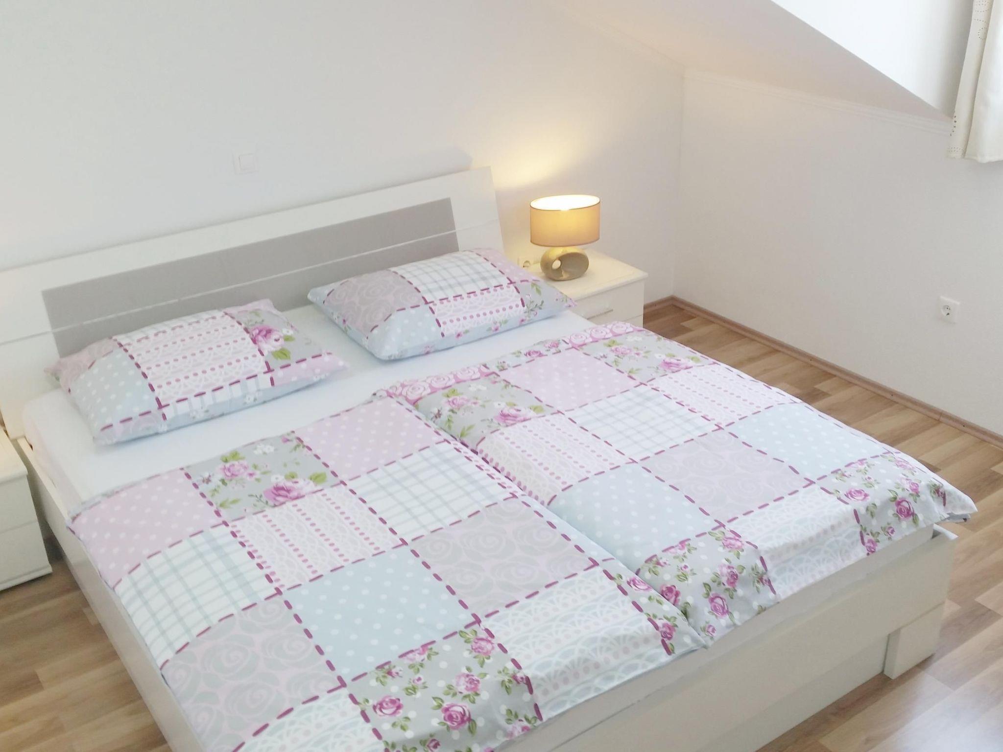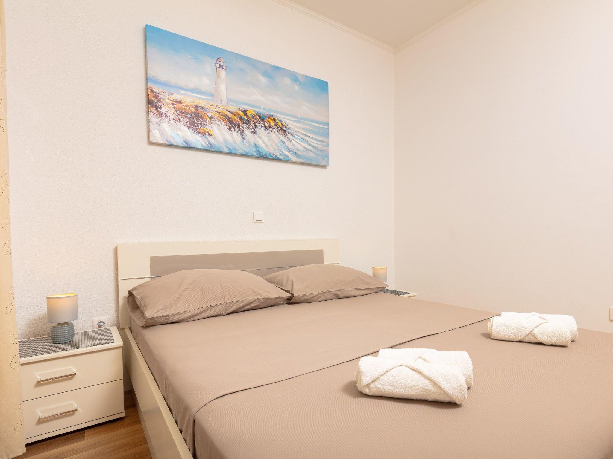 The accommodation has a new and modern interior and provides 70m² of living space. It can accommodate four to six people. There are two bedrooms with double beds and a sofa bed for two people in the living room. Satellite TV, free wireless Internet access and air conditioning are available. The kitchen is fully equipped and the bathroom has a shower and a washing machine.