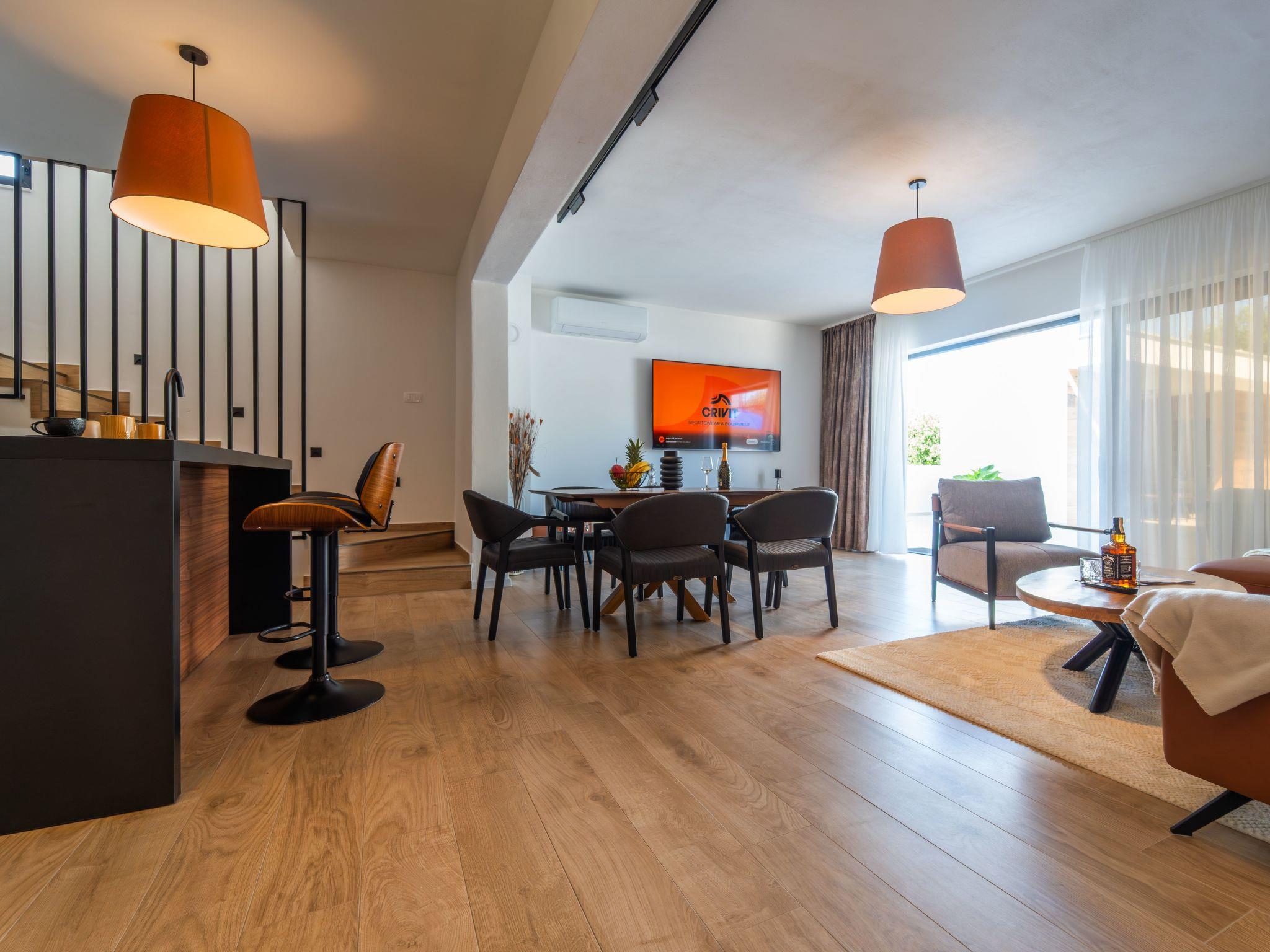 Embraced by the serene coastal landscape of Zaton near Zadar, the location of our holiday house is a haven for sea enthusiasts and fans of outdoor activities. Just a brisk walk of 1500m separates you from the beach, making it a haven for water sports aficionados or those wishing simply to bask in the seaside splendor. Essential amenities, including the nearest town center and grocery store, are merely 300m away, ensuring that your supply runs or exploratory excursions are both convenient and hassle-free.