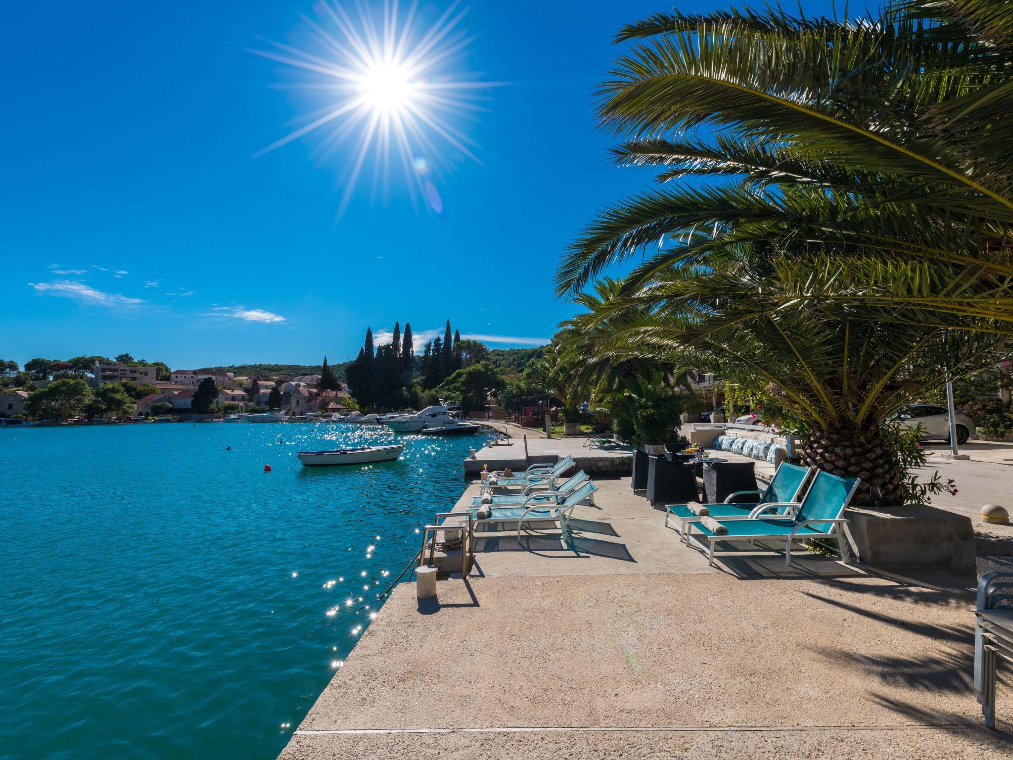 Beautifull white stone villa is located on the coastline, It has private beach with chairs and sun shade, a parking place is always available but if you are coming by boat, mooring is at disposal as well.