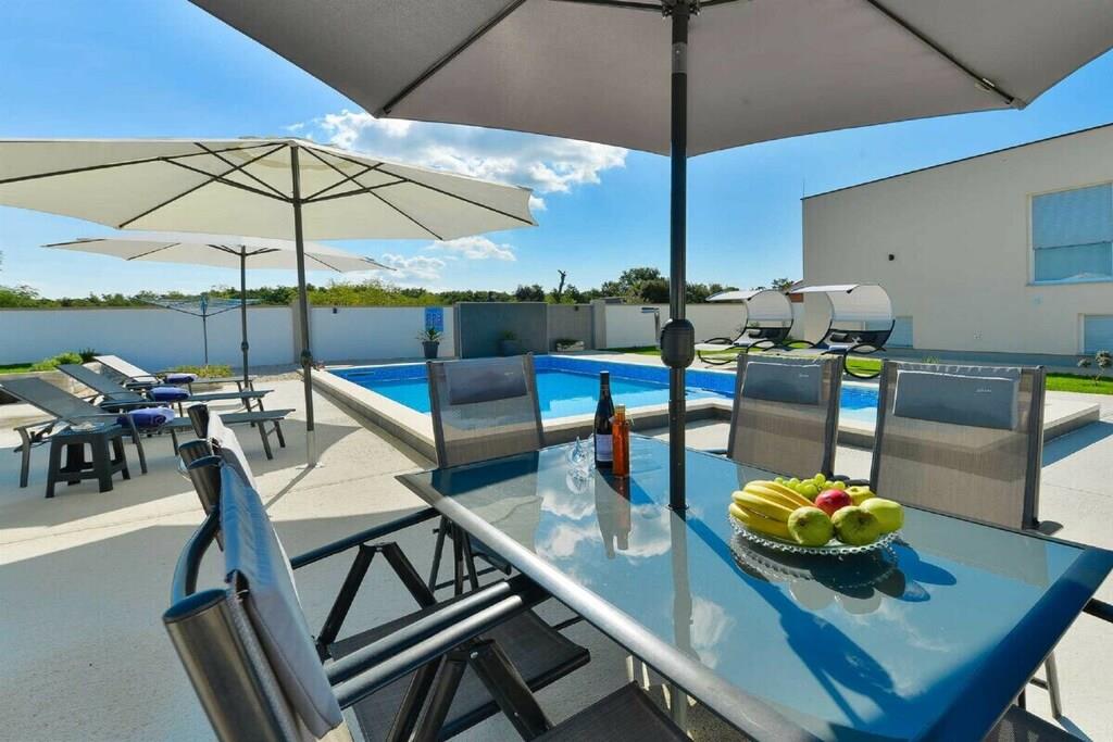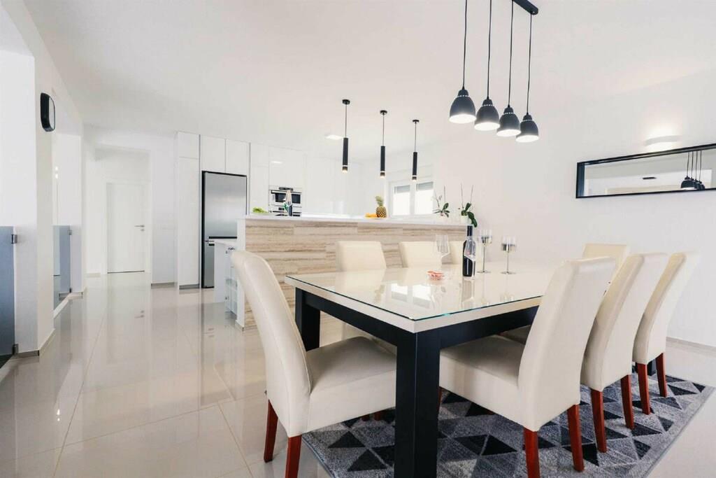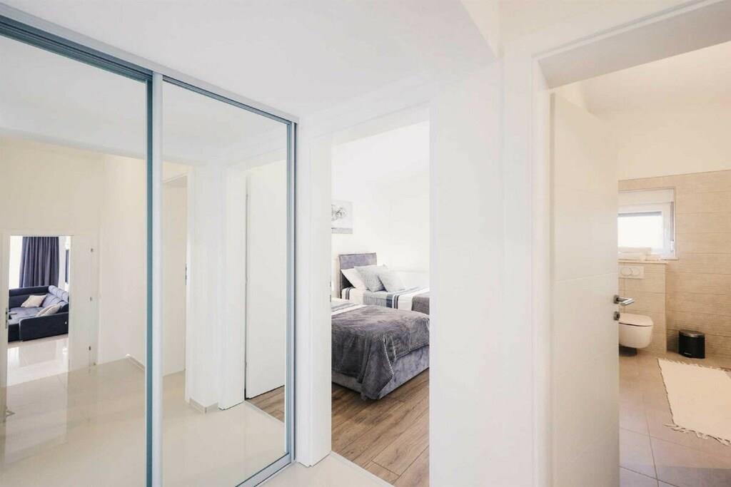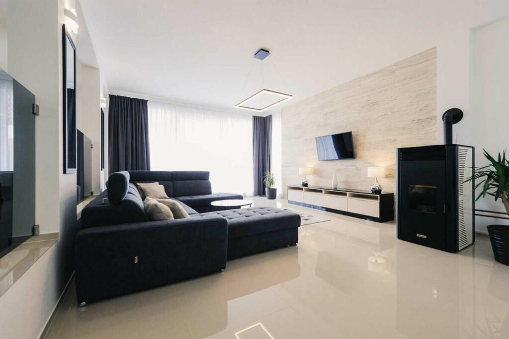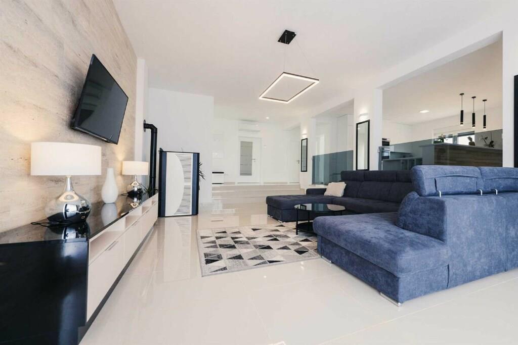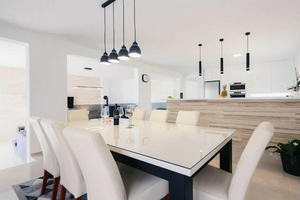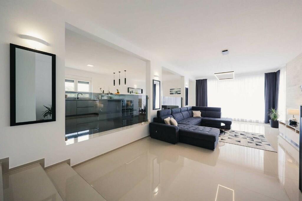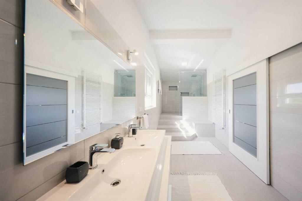 The interior of the house is tastefully and functionally furnished. The ground floor has 3 bedrooms - one bedroom has a double bed, the second bedroom has a single bed that you can turn into a double bed and the third bedroom has two single beds. There is also a spacious and modern living room with a double sofa bed and a fully equipped kitchen. On the ground floor there is a fitness room and a laundry room. Outside the house you can enjoy a nice furnished terrace, a barbecue and a large pool where you can refresh yourself on hot summer days. Prepare your favourite dishes on the grill while your children have fun in the pool.