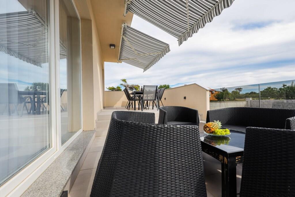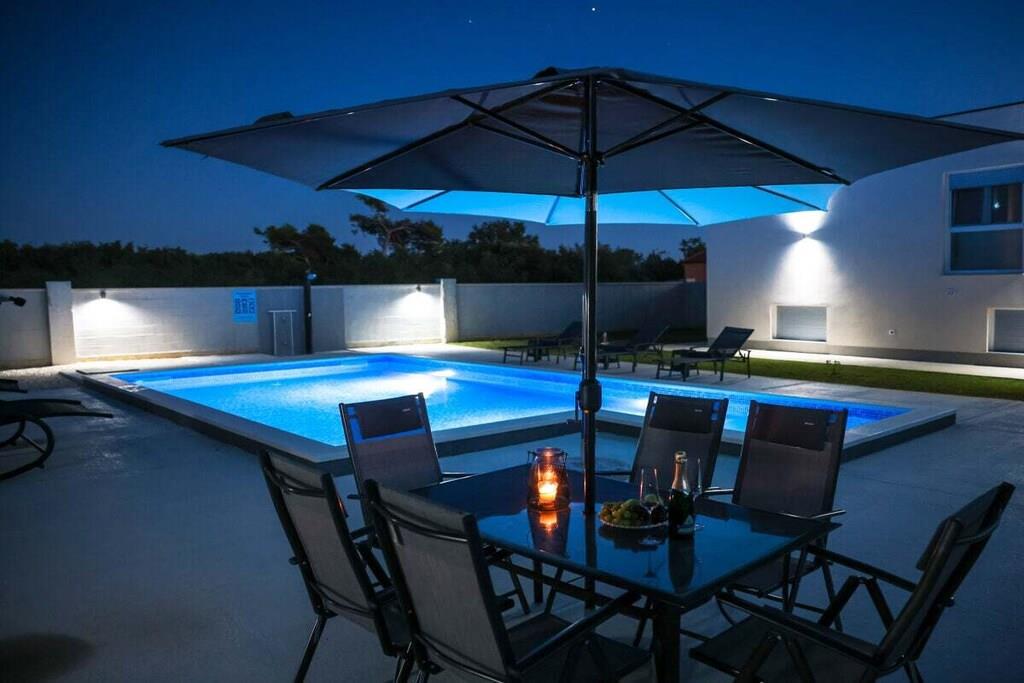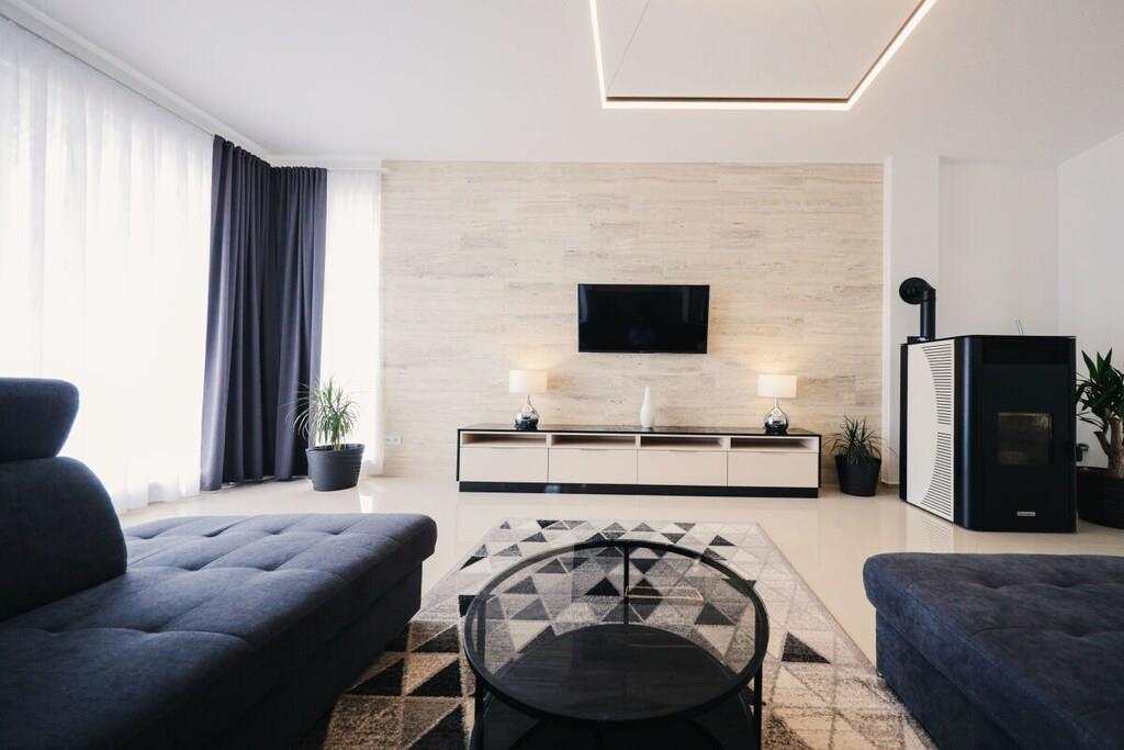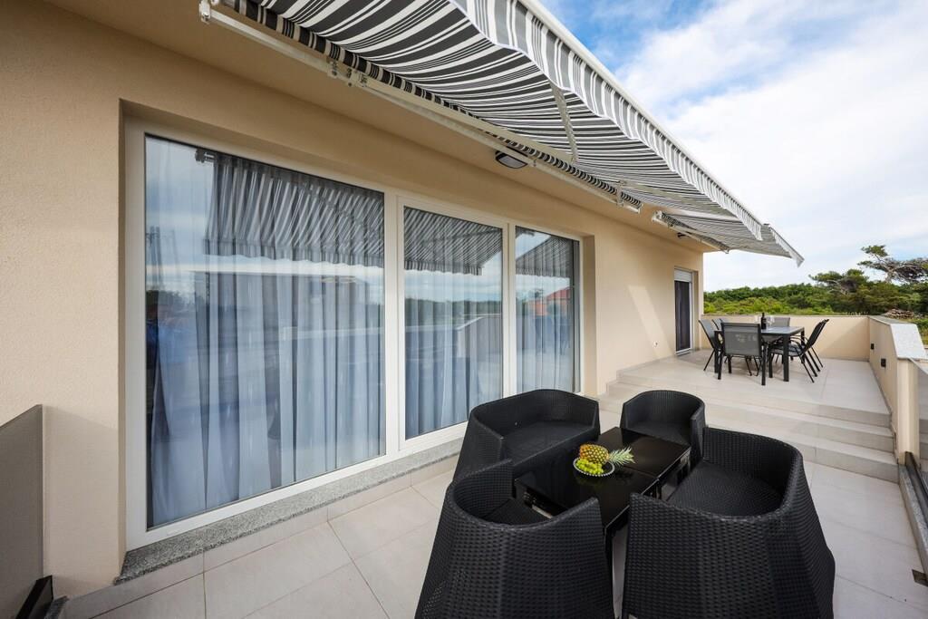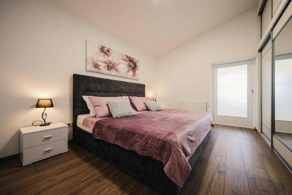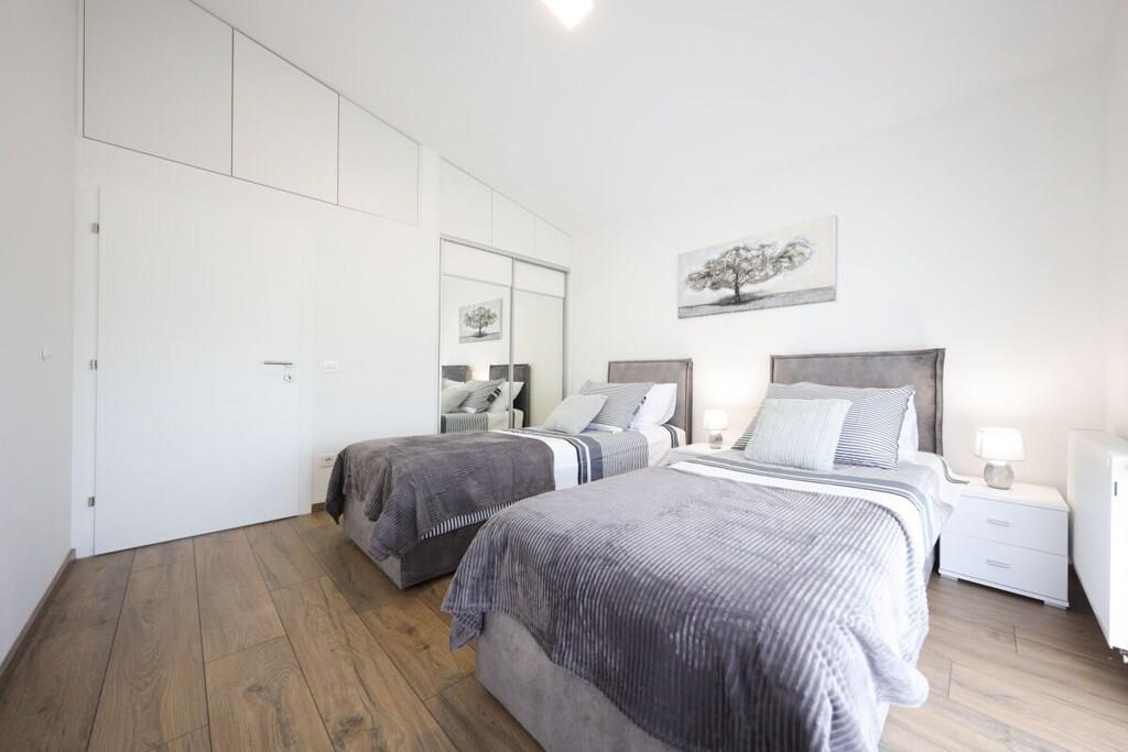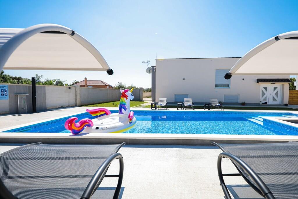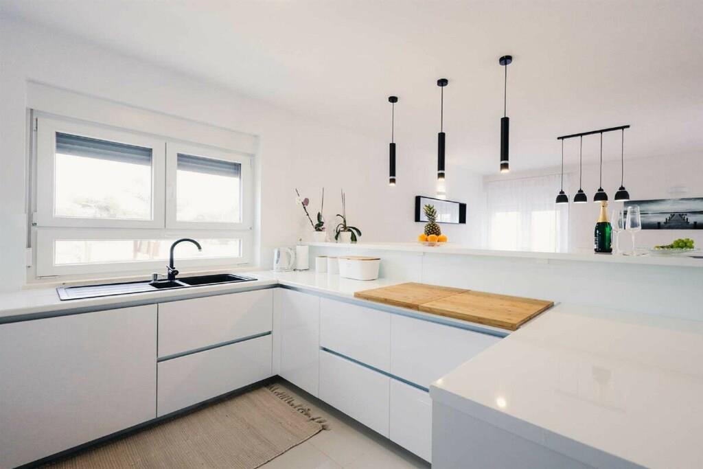 The interior of the house is tastefully and functionally furnished. The ground floor has 3 bedrooms - one bedroom has a double bed, the second bedroom has a single bed that you can turn into a double bed and the third bedroom has two single beds. There is also a spacious and modern living room with a double sofa bed and a fully equipped kitchen. On the ground floor there is a fitness room and a laundry room. Outside the house you can enjoy a nice furnished terrace, a barbecue and a large pool where you can refresh yourself on hot summer days. Prepare your favourite dishes on the grill while your children have fun in the pool.