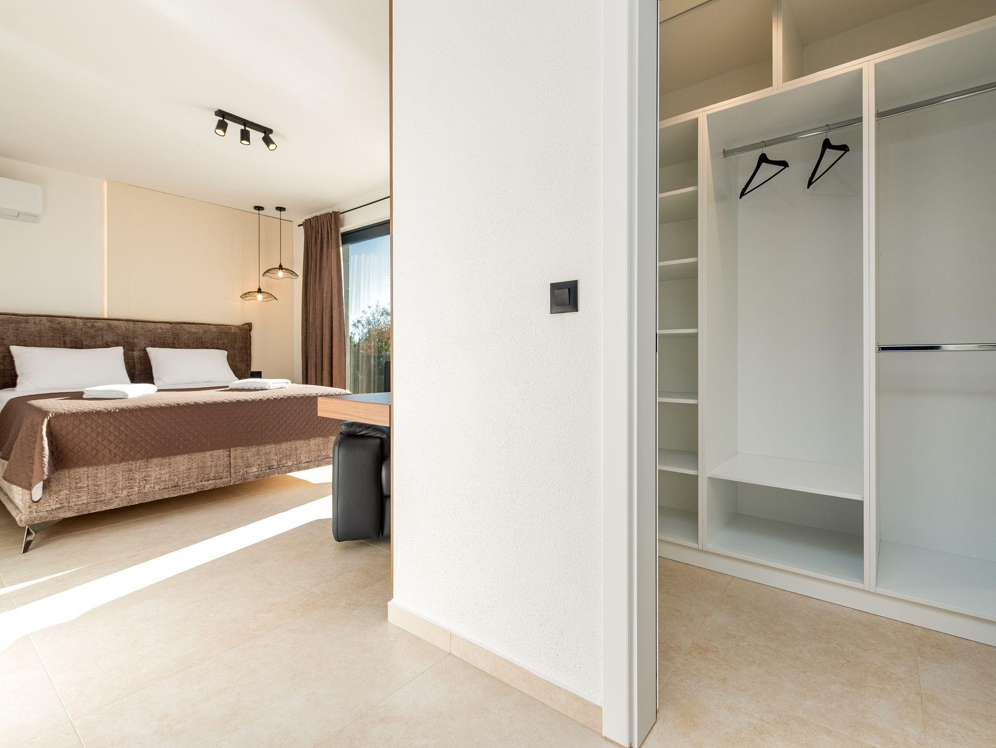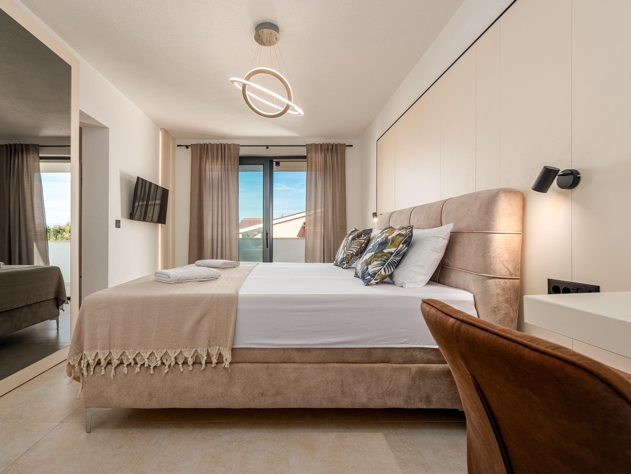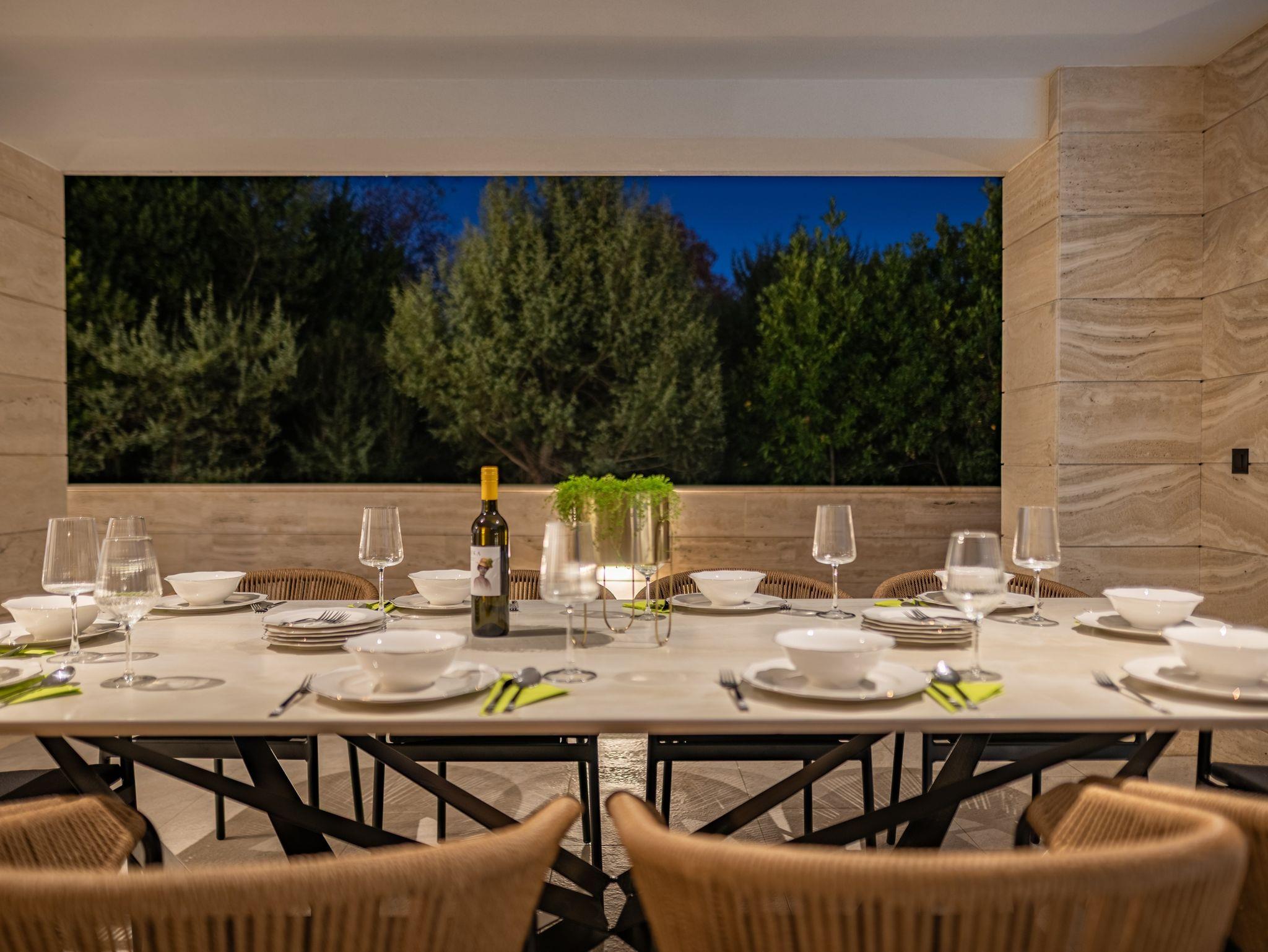 Haus bietet Platz für 10 Gäste. Die Betten sind in Schlafzimmern, die es 5 gibt, innerhalb einer Gesamtfläche von 310m2, angeordnet. Die Gäste haben eine eigene Terrasse zur Verfügung, auf der sie in warmen Sommernächten genießen können. Für vollen Genuss und Entspannung gibt es einen privaten Grill für Gäste dieser Unterkunft. Während ihres Aufenthalts können sich Gäste im privaten Schwimmbad entspannen. IM PREIS INBEGRIFFEN: Kurtaxe, Endreinigung, Klimatisierung, Pool, Parkplatz, Internet, Kinderbett, Bügeleisen, Bügelbrett, Föhn. Die Verfügbarkeit zusätzlicher Dienstleistungen in Ihrem reservierten Termin und die Preise derselben (falls nicht aufgeführt) müssen im Voraus überprüft werden. Zusätzliche Dienstleistungen die in der Zahlungsaufforderung nicht aufgeführt sind werden direkt beim Vermieter bezahlt, angenommen der Gast nutzt auch diese.