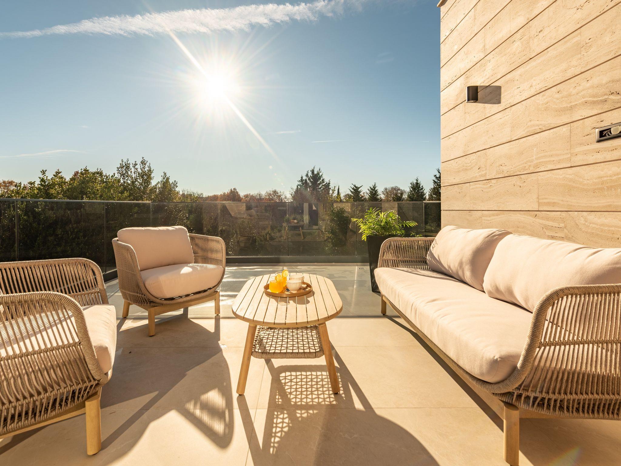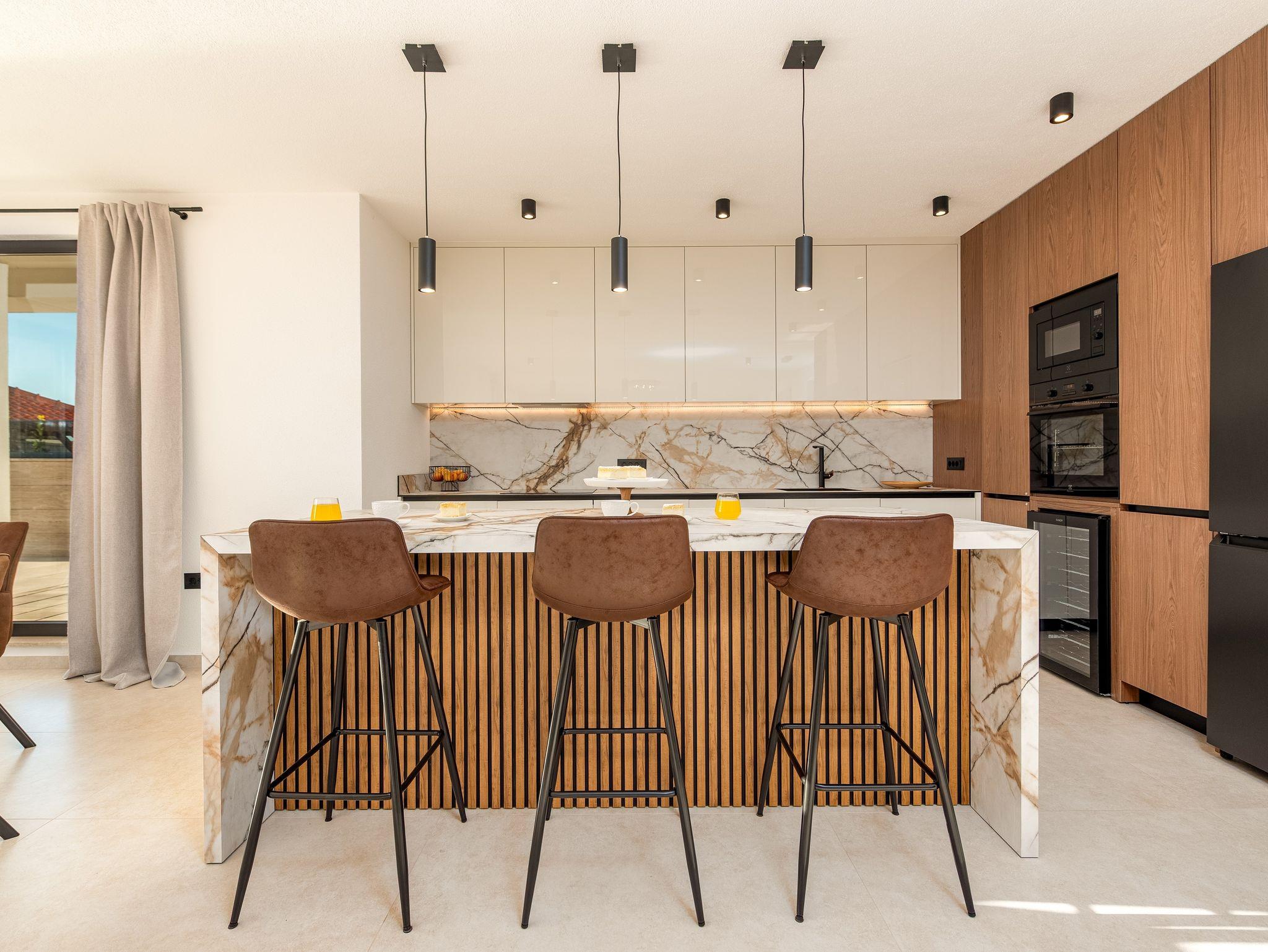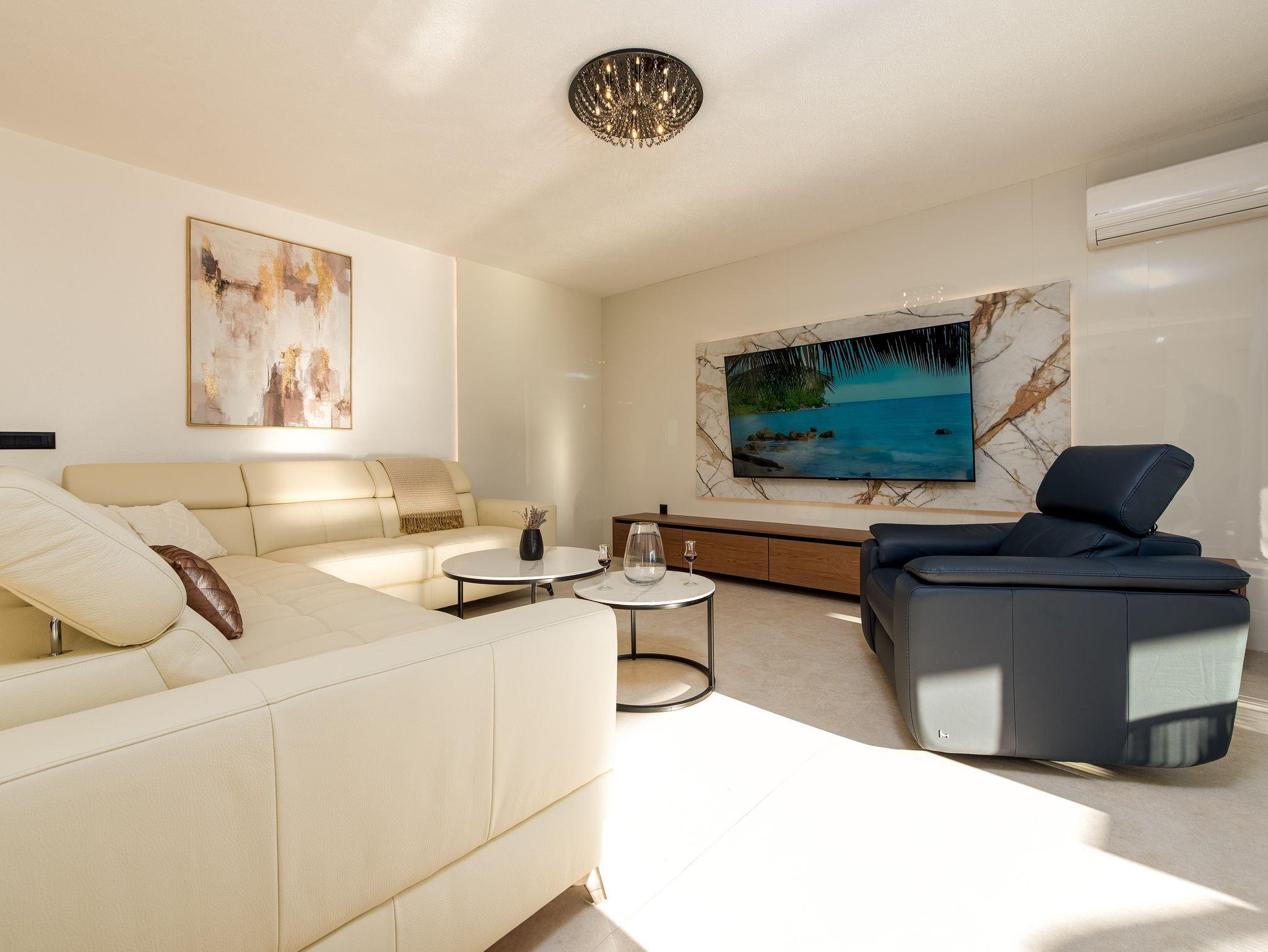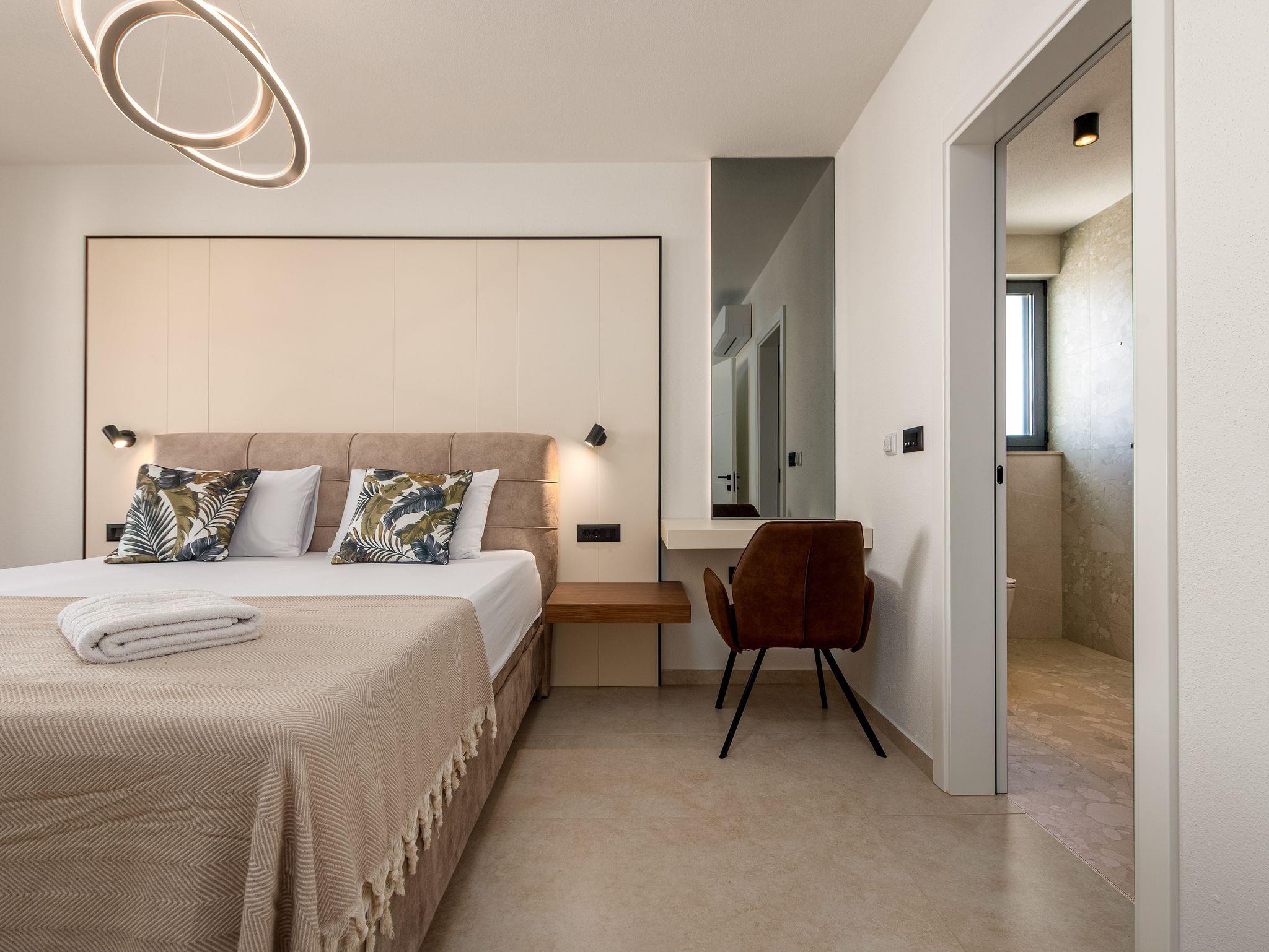 Haus bietet Platz für 10 Gäste. Die Betten sind in Schlafzimmern, die es 5 gibt, innerhalb einer Gesamtfläche von 310m2, angeordnet. Die Gäste haben eine eigene Terrasse zur Verfügung, auf der sie in warmen Sommernächten genießen können. Für vollen Genuss und Entspannung gibt es einen privaten Grill für Gäste dieser Unterkunft. Während ihres Aufenthalts können sich Gäste im privaten Schwimmbad entspannen. IM PREIS INBEGRIFFEN: Kurtaxe, Endreinigung, Klimatisierung, Pool, Parkplatz, Internet, Kinderbett, Bügeleisen, Bügelbrett, Föhn. Die Verfügbarkeit zusätzlicher Dienstleistungen in Ihrem reservierten Termin und die Preise derselben (falls nicht aufgeführt) müssen im Voraus überprüft werden. Zusätzliche Dienstleistungen die in der Zahlungsaufforderung nicht aufgeführt sind werden direkt beim Vermieter bezahlt, angenommen der Gast nutzt auch diese.