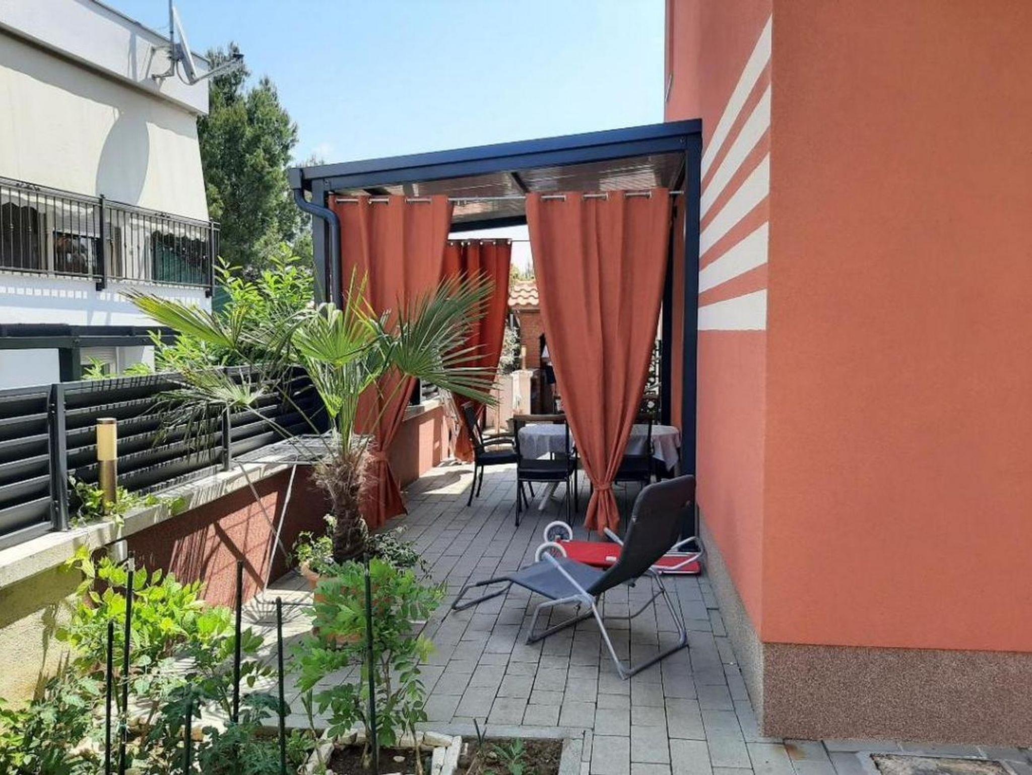 Ferienwohnung bietet Platz für 5 Gäste. Die Betten sind in Schlafzimmern, die es 2 gibt, innerhalb einer Gesamtfläche von 30m2, angeordnet. Die Gäste haben eine eigene Terrasse zur Verfügung, auf der sie in warmen Sommernächten genießen können. Es ist erlaubt, Speisen auf dem Gemeinschafts-Grill vorzubereiten. In der Unterkunftseinheit besteht die Möglichkeit des Mitbringens von Haustieren gegen Aufpreis. IM PREIS INBEGRIFFEN: Kurtaxe, Endreinigung, Klimatisierung, Parkplatz, Internet, Kinderbett, Bügeleisen, Bügelbrett, Föhn. UNVERBINDLICHE ZUSÄTZLICHE KOSTEN: Haustiere (10,00 € pro Nacht). Die Verfügbarkeit zusätzlicher Dienstleistungen in Ihrem reservierten Termin und die Preise derselben (falls nicht aufgeführt) müssen im Voraus überprüft werden. Zusätzliche Dienstleistungen die in der Zahlungsaufforderung nicht aufgeführt sind werden direkt beim Vermieter bezahlt, angenommen der Gast nutzt auch diese.