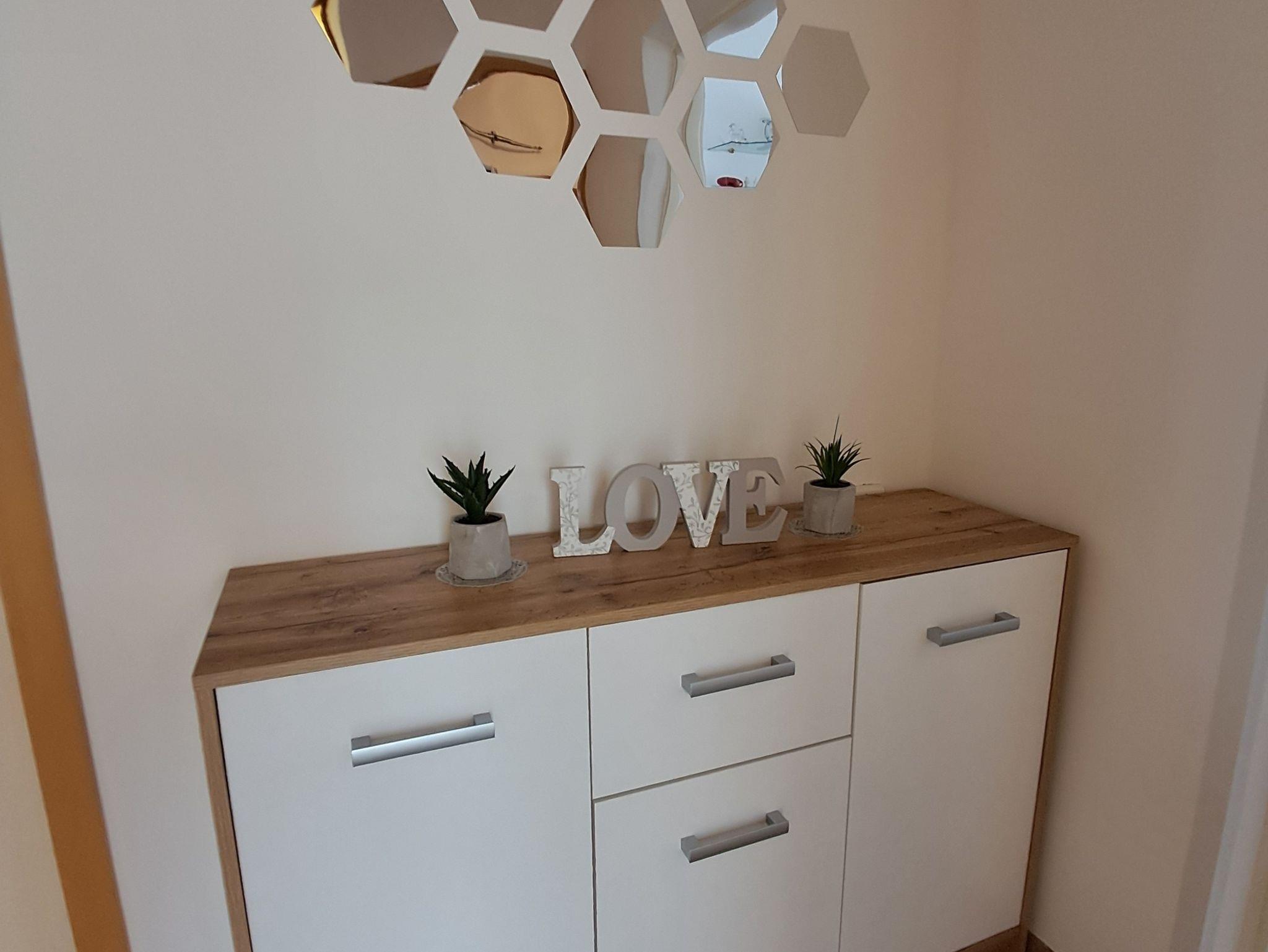 Ferienwohnung bietet Platz für 6 Gäste. Die Betten sind in Schlafzimmern, die es 3 gibt, innerhalb einer Gesamtfläche von 74m2, angeordnet. Die Gäste haben eine eigene Terrasse zur Verfügung, auf der sie in warmen Sommernächten genießen können. Es ist erlaubt, Speisen auf dem Gemeinschafts-Grill vorzubereiten. In der Unterkunftseinheit besteht die Möglichkeit des Mitbringens von Haustieren, und die Dienstleistung ist im Preis der Unterkunft enthalten. IM PREIS INBEGRIFFEN: Kurtaxe, Endreinigung, Klimatisierung, Parkplatz, Internet, Haustiere, Kinderbett, Bügeleisen, Bügelbrett, Föhn. VERBINDLICHE ZUSÄTZLICHE KOSTEN: Aufzahlung für Kurzaufenthalte (prozentualer Zuschlag pro Nächtigungsanzahl: 30% - 1, 20% - 2, 10% - 3). Die Verfügbarkeit zusätzlicher Dienstleistungen in Ihrem reservierten Termin und die Preise derselben (falls nicht aufgeführt) müssen im Voraus überprüft werden. Zusätzliche Dienstleistungen die in der Zahlungsaufforderung nicht aufgeführt sind werden direkt beim Vermieter bezahlt, angenommen der Gast nutzt auch diese.