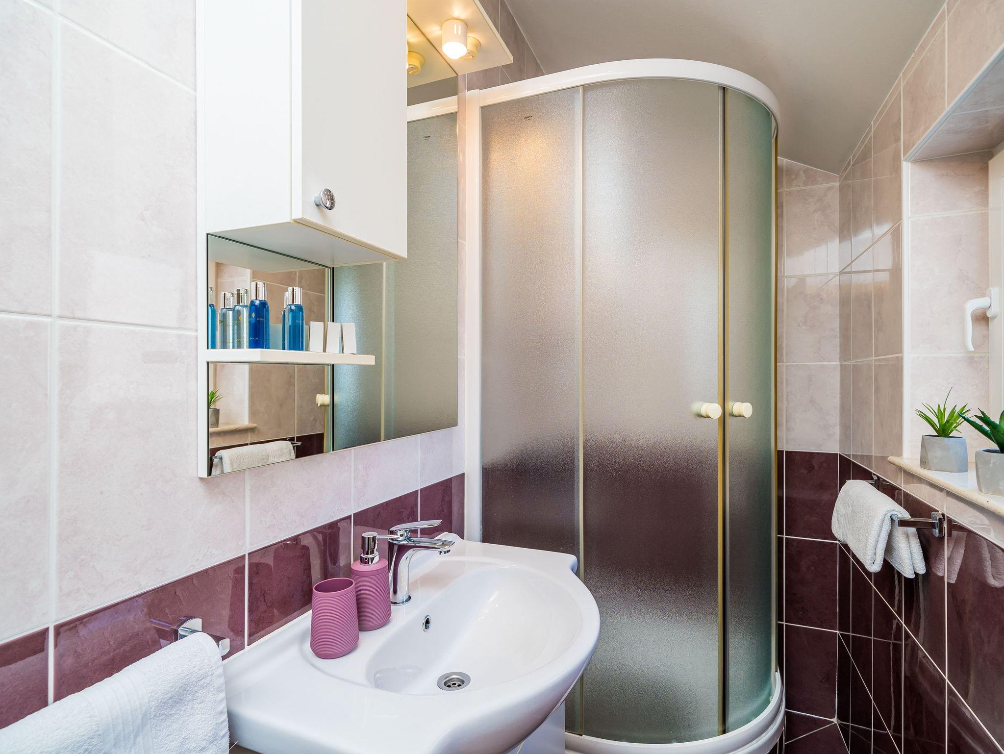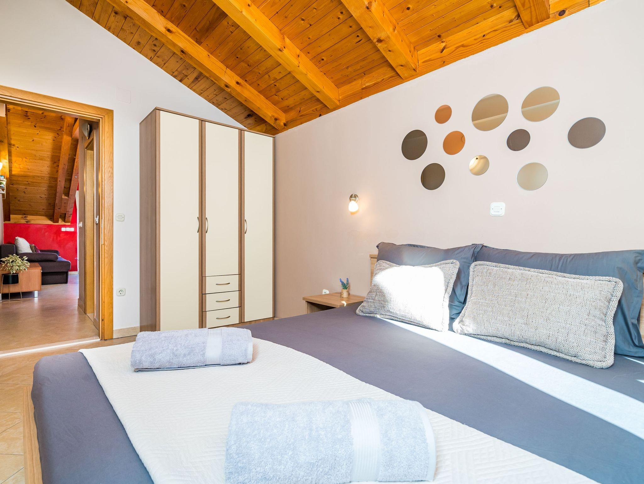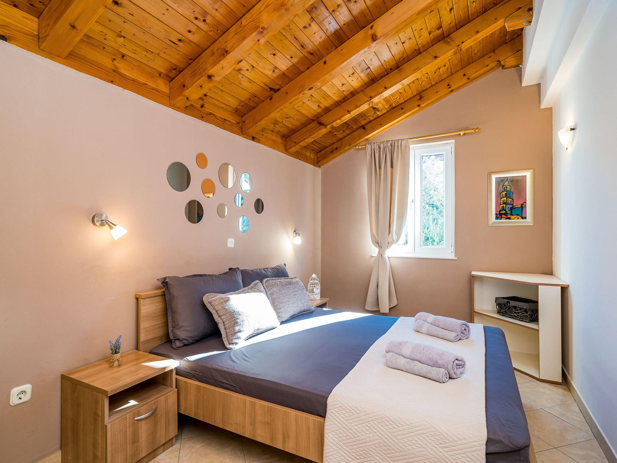 Ferienwohnung bietet Platz für 4 Gäste. Die Betten sind in Schlafzimmern, die es 1 gibt, und in Wohnzimmer, innerhalb einer Gesamtfläche von 42m2, angeordnet. Die Gäste haben einen eigenen Balkon zur Verfügung, auf der sie in warmen Sommernächten genießen können. Das Apartment bietet Meerblick. Es ist erlaubt, Speisen auf dem Gemeinschafts-Grill vorzubereiten. IM PREIS INBEGRIFFEN: Kurtaxe, Endreinigung, Klimatisierung, Parkplatz, Internet, Kinderbett, Föhn. VERBINDLICHE ZUSÄTZLICHE KOSTEN: Aufzahlung für Kurzaufenthalte (prozentualer Zuschlag pro Nächtigungsanzahl: 30% - 1, 20% - 2, 10% - 3). UNVERBINDLICHE ZUSÄTZLICHE KOSTEN: Bootsanlegeplatz (30,00 € pro Nacht). Die Verfügbarkeit zusätzlicher Dienstleistungen in Ihrem reservierten Termin und die Preise derselben (falls nicht aufgeführt) müssen im Voraus überprüft werden. Zusätzliche Dienstleistungen die in der Zahlungsaufforderung nicht aufgeführt sind werden direkt beim Vermieter bezahlt, angenommen der Gast nutzt auch diese. Ermäßigung auf den Grundpreis: Gratistag 14=13 (bei einem Aufenthalt von 14 Tagen oder mehr erhalten Sie einen Gratistag für den Aufenthalt bis 31.12.26).