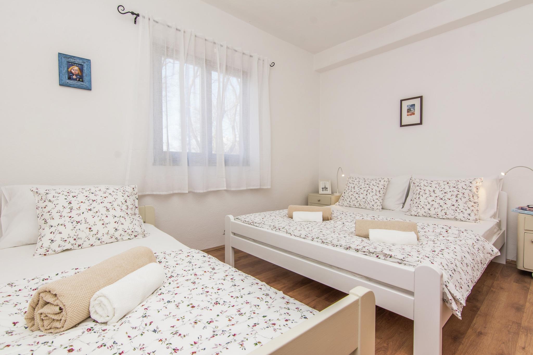 Feriehus Sestan er beliggende i en lille landsby Zemunik, kun 12 km langt fra den gamle by Zadar. Det er godt forbundet med mange europæiske destinationer, da Zadars internationale lufthavn er en velkendt base for lavprisflyselskaber. Din feriebolig tilbyder et rummeligt opholdsstue med moderne stue / spisestue, 2 komfortable soveværelser, åbent køkken og et moderne badeværelse. Nice overdækket terrasse godt udstyret med havemøbler og privat swimmingpool er ideel sted for dine afslappende øjeblikke. Rummelig indhegnet have tilbyder en volleyballbane, legeplads for børn og grillfaciliteter. Denne indkvartering er perfekt til en familie eller en gruppe på maksimalt 7 personer. På afstanden 12 km finder du forskellige strande, caféer og restauranter. Besøg den gamle by Zadar, du vil nyde i de smalle små gader, gå på Forum Romanum, lyt til de berømte havorganer og smag Mediteranean retter. Denne indkvartering er praktisk til at udforske hele regionen. Gå ikke glip af at besøge flere nationalparker som Kornati-øerne, Krka-vandfaldene og Paklenica, det vigtigste klatringscenter i Kroatien.