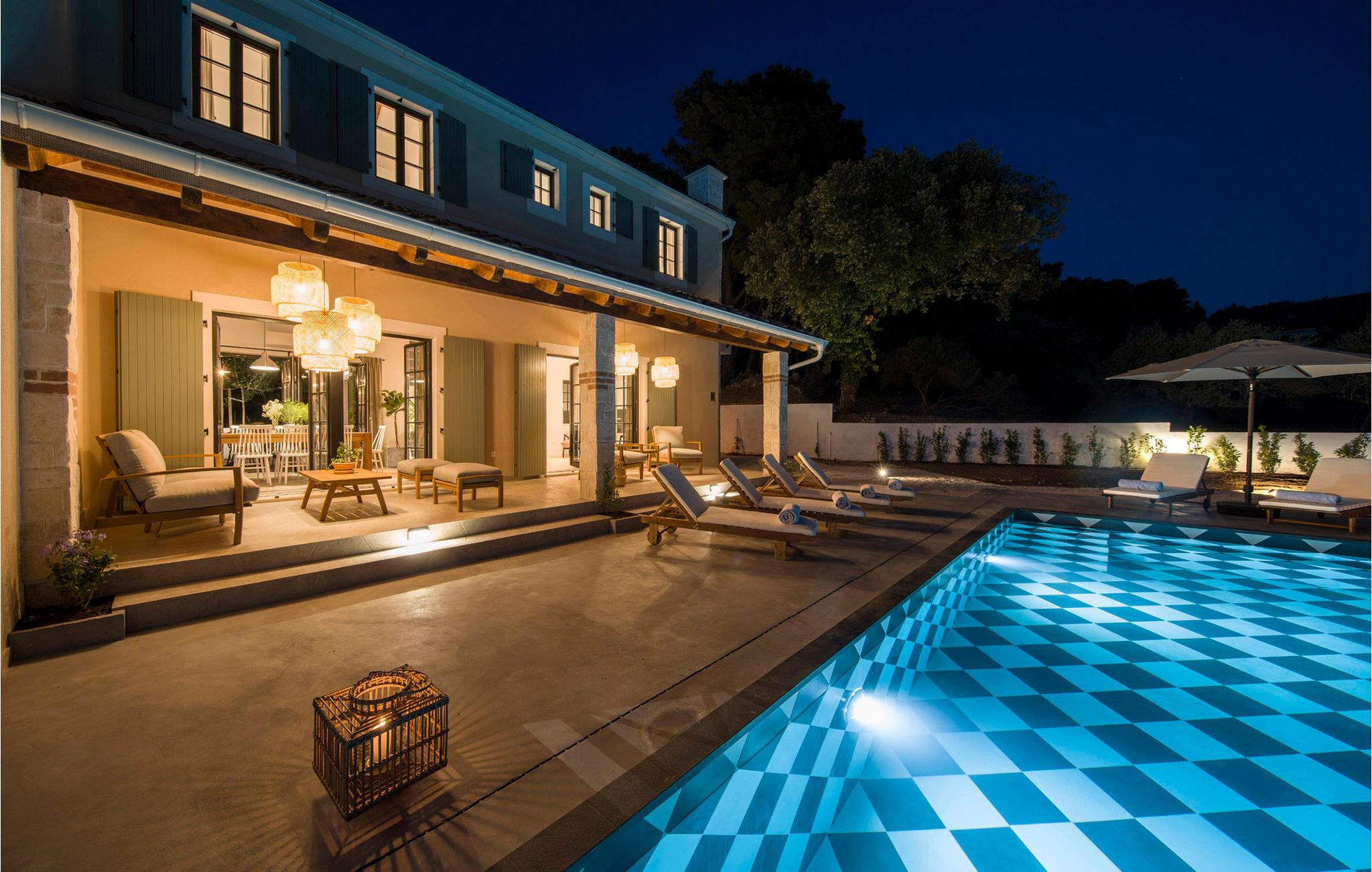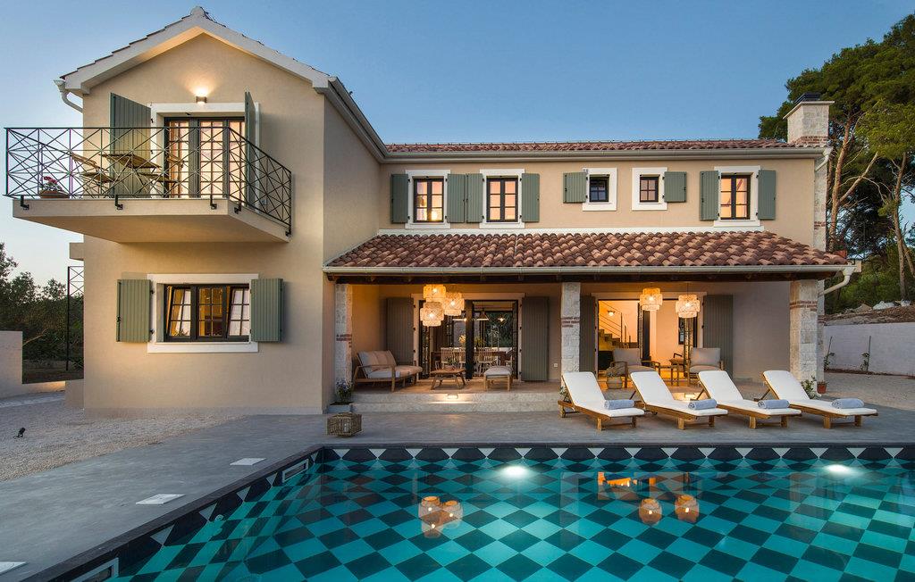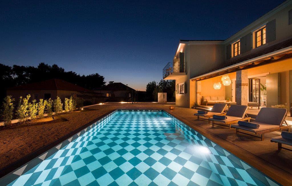 Smukke Villa Parona ligger på den lille ø Zlarin, som ligger i Sibenik-øgruppen. Øen Zlarin er et ideelt sted for en ferie i fred og ro. Den er berømt for sine håndlavede røde koraller, som du kan tage med hjem som en souvenir fra denne fantastiske ø. Moderne Villa Parona med rustikke detaljer vil helt sikkert fange dit øje. Villaen ligger i første række til havet, som du kan nå på få skridt. Ovenpå er der 4 soveværelser med aircondition og et moderne, luksuriøst badeværelse med bruser og et badeværelse har et afslappende badekar. Det særlige ved værelserne er den smukke udsigt over det krystalblå hav og den grønne dalmatiske vegetation. Når du træder ind i rummet, bliver du fyldt med den eufori af skønhed og eventyr, som dette landskab byder på. I stueetagen er der et moderne udstyret køkken, en spisestue og en stue med et stort plasma-tv. I stueetagen kan du også slappe af i en privat sauna eller en smuk middelhavsstengård, der vil give dig en dalmatisk atmosfære. Middelhavsgården er udstyret med en udendørs stengrill, hvor du kan tilberede friskfanget dalmatisk fisk. Det komplette hegn med træer og en mur giver dig følelsen af dit eget middelhavsparadis. Du kan slappe af på liggestolene omkring den 9x4 m store pool, fuldt udstyret med automatisk dispenser, saltklorinator og LED undervandsreflektorer. På trods af de veje, der er bygget på øen, er biltrafik forbudt, hvilket gør den til en perfekt oase til lange gåture langs øens længste strandpromenade og til cykling. Besøg den historiske by Šibenik og den nærliggende Krka Nationalpark under dit ophold på Villa Parona i Zlarin. Du kan nå øen med regelmæssige færgelinjer fra Šibenik og Vodice. Kæledyr er tilladt på denne ejendom efter ejerens skøn eller mod et gebyr.