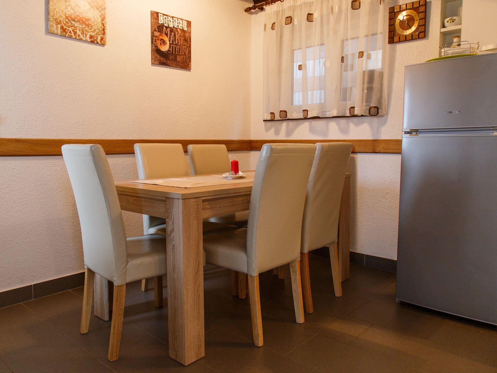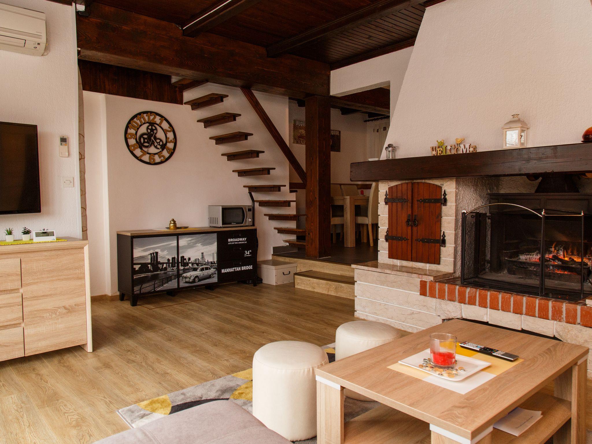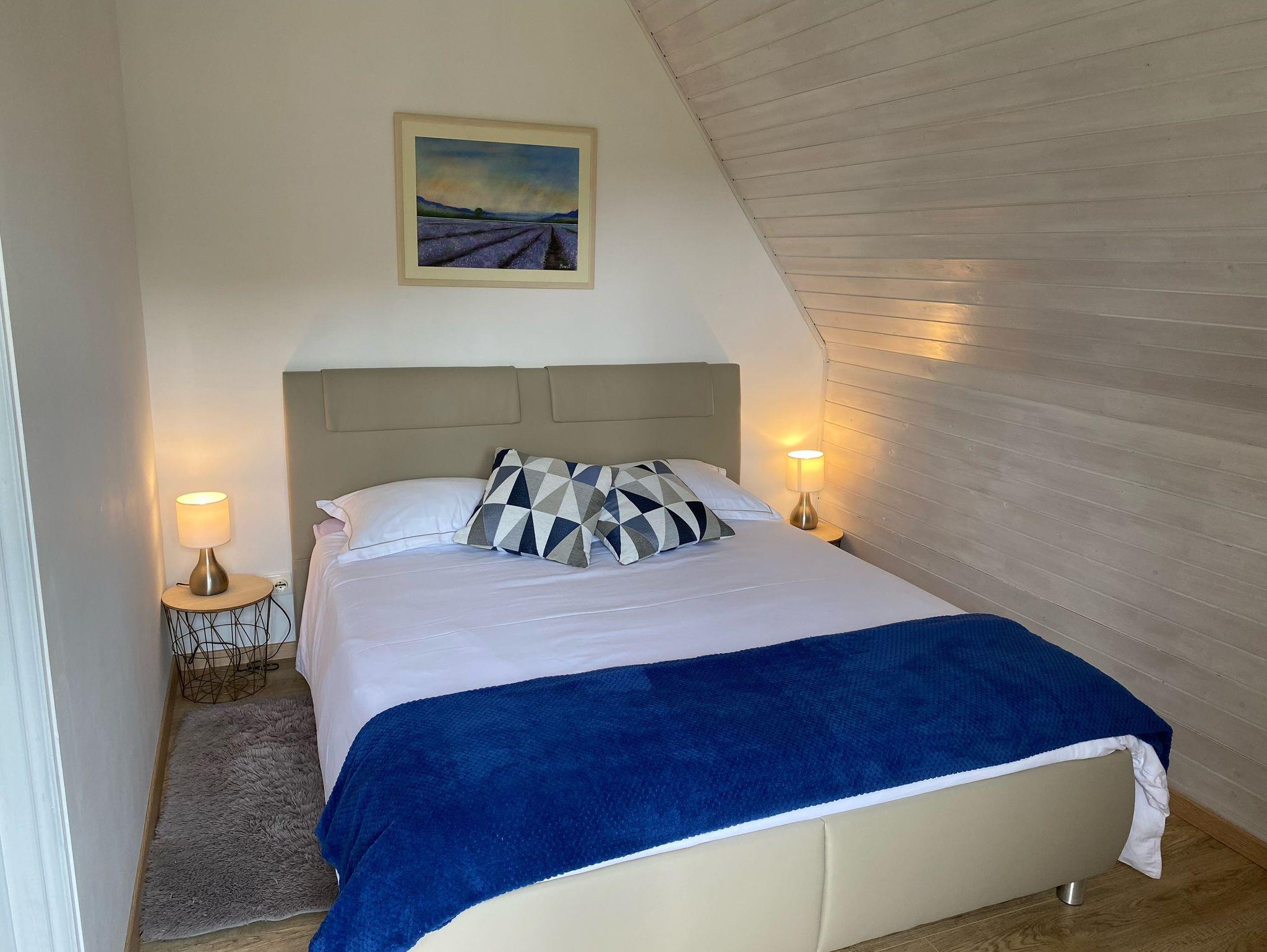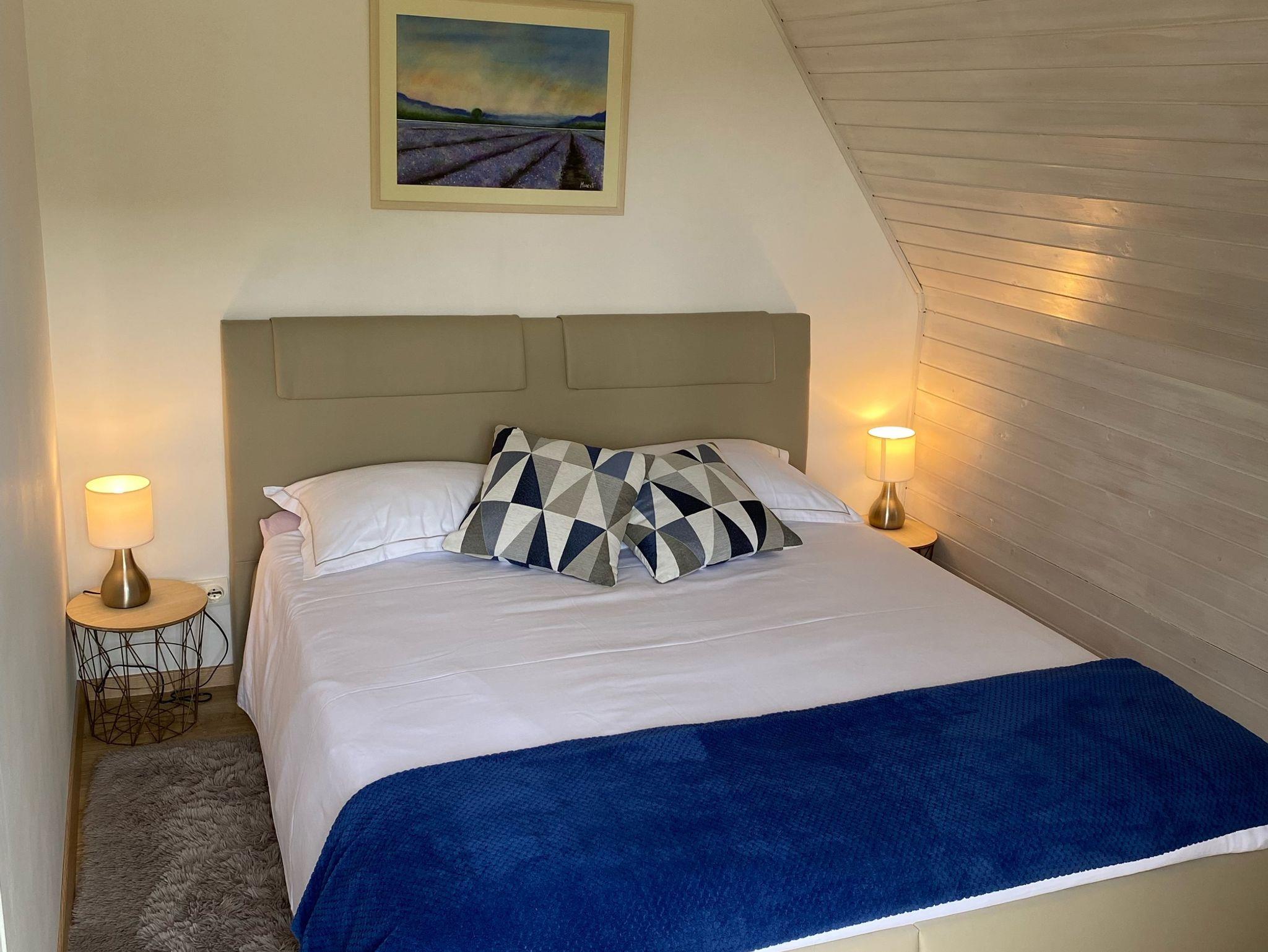Haus bietet Platz für 6 Gäste. Die Betten sind in Schlafzimmern, die es 2 gibt, und in Wohnzimmer, innerhalb einer Gesamtfläche von 89m2, angeordnet. Die Gäste haben eine eigene Terrasse zur Verfügung, auf der sie in warmen Sommernächten genießen können. Für vollen Genuss und Entspannung gibt es einen privaten Grill für Gäste dieser Unterkunft. In der Unterkunftseinheit besteht die Möglichkeit des Mitbringens von Haustieren gegen Aufpreis. IM PREIS INBEGRIFFEN: Kurtaxe, Endreinigung, Klimatisierung, Parkplatz, Internet, Kinderbett, Zusatzbett, Bügeleisen, Bügelbrett, Föhn. VERBINDLICHE ZUSÄTZLICHE KOSTEN: Aufzahlung für Kurzaufenthalte (prozentualer Zuschlag pro Nächtigungsanzahl: 30% - 1, 20% - 2, 10% - 3). UNVERBINDLICHE ZUSÄTZLICHE KOSTEN: Haustiere (7,00 € pro Nacht). Die Verfügbarkeit zusätzlicher Dienstleistungen in Ihrem reservierten Termin und die Preise derselben (falls nicht aufgeführt) müssen im Voraus überprüft werden. Zusätzliche Dienstleistungen die in der Zahlungsaufforderung nicht aufgeführt sind werden direkt beim Vermieter bezahlt, angenommen der Gast nutzt auch diese.