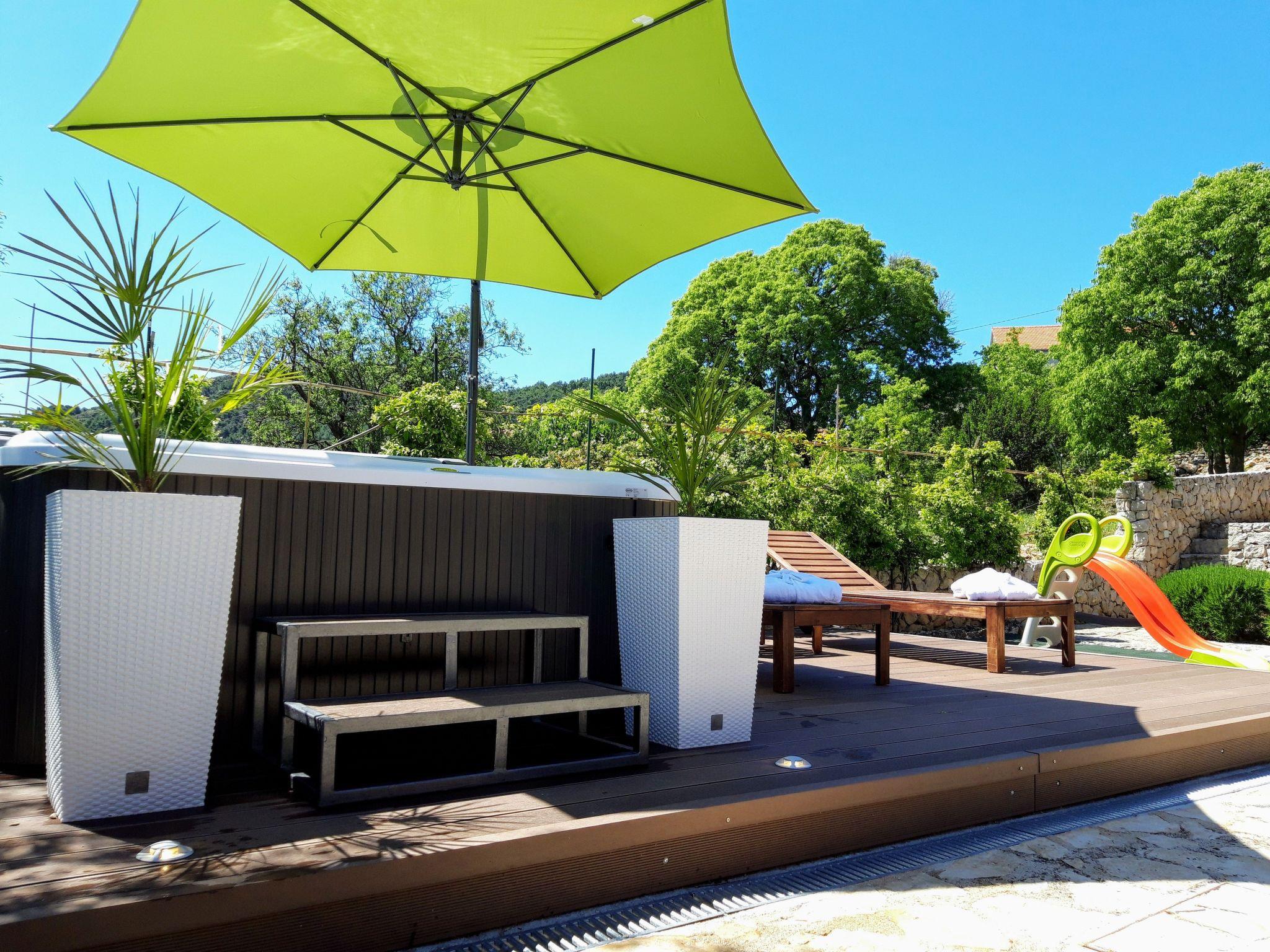 This elegant stone house with a romantic décor is on a hill in the historic centre of the village Žman. It is in a quiet and secluded location.