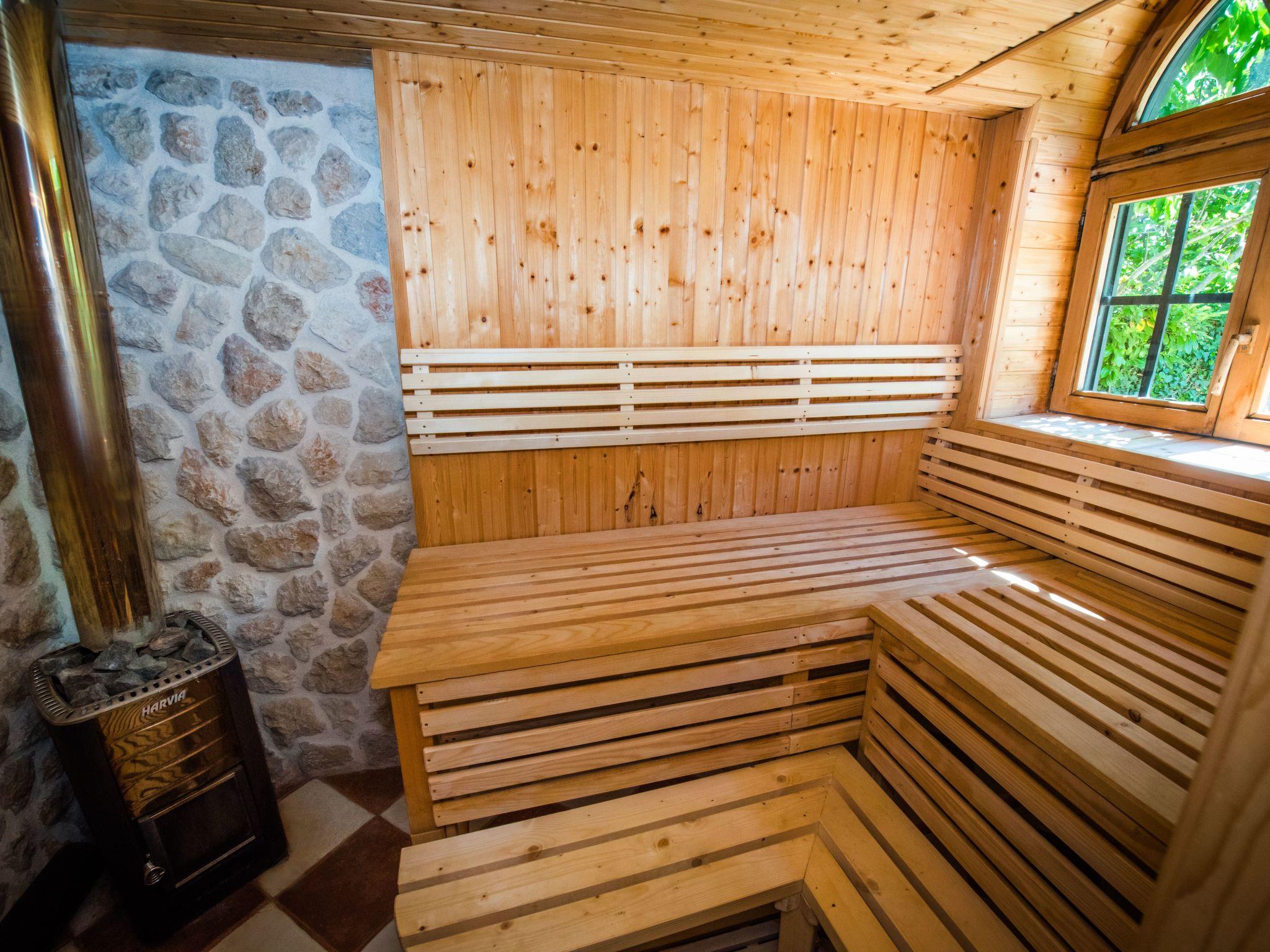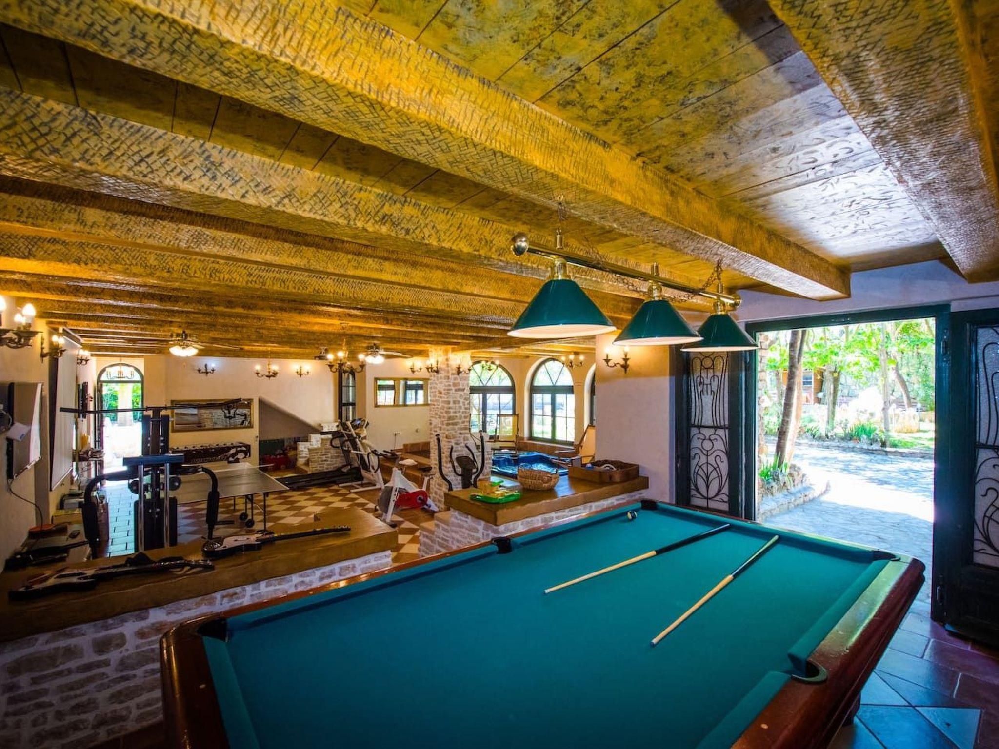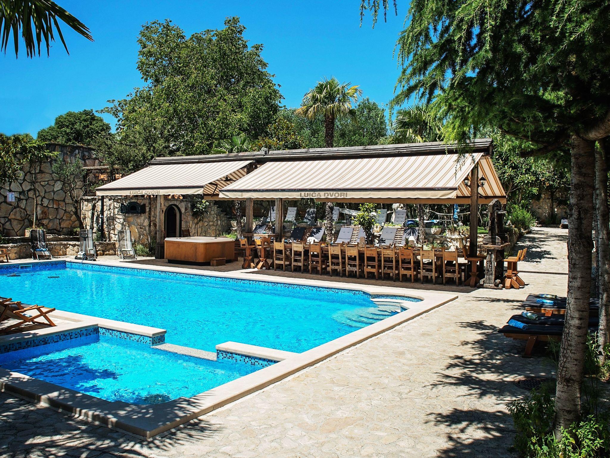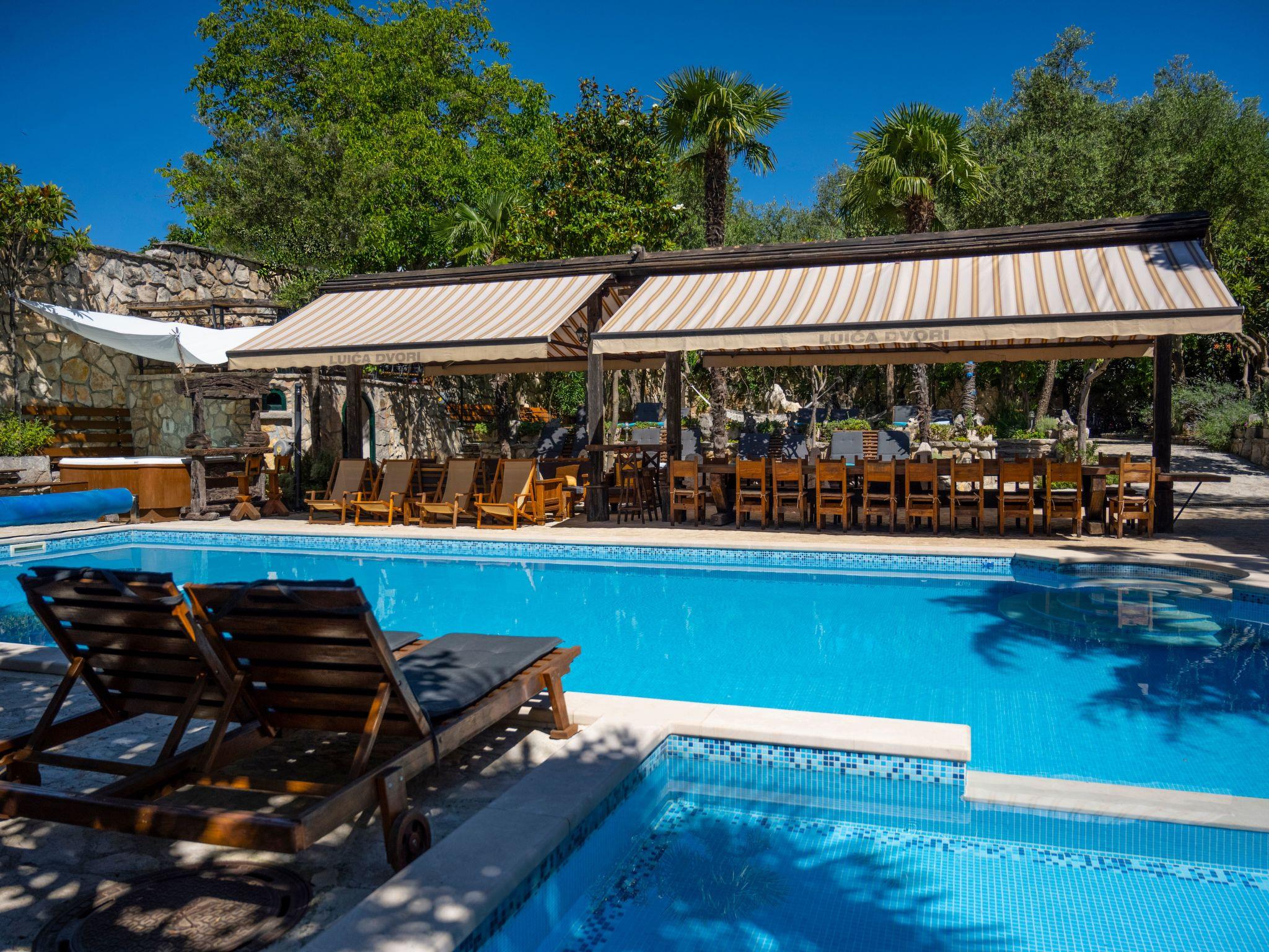 This beautiful five star estate Luica dvori is made of two luxuriously decorated villas of stone with a heated pool on the property 2000m2 big surrounded with giant stone walls which provide guests with privacy and intimacy for an unforgettable vacation.This extraordinary property consists of two stone luxurious villas with a heated pool on a plot of 2000m2 surrounded by a high stone wall that allows guests complete privacy for a memorable vacation. Just across the two villas (the haciendas) guests can use a third (extra) facility with parking lots and garages with 20 bicycles that are ideal for cycling lovers since there is a beautiful river just about 100 meters from the property with numerous cycle paths running along. Both villas have the top two floors connected by an internal communication, while the three separate units at the ground floor have separate entrances. The richly decorated interiors are made of hand-hewn stone, old mortar, Roman brick and hand-carved wood and furnished with restored antique furniture from the 18th and 19th centuries. Beds with their short dimensions out of this period are especially restored and prolonged by today's highest standards. Each villa has one large room for a common room, one of which is associated with a wine cellar. In one of the villas lies a large fitness room with whirlpool, sauna and changing rooms with showers. In several activity rooms, guests can relax by playing in one of the three pianos, or have fun with 2 billiards, table tennis, darts, table football, table hockey, a game console, and the use of free and unlimited Wi-Fi with signal covering the entire property. In the yard is a playground with a sandbox where there is a multitude of children's content for the youngest guests.The special microclimate of the area along the river and wide stone walls of the villa enable pleasant vacation with summer heat during the day and the pleasant night temperatures without any major need to use (existing) air conditioning. Each room has air conditioning (heating/cooling).