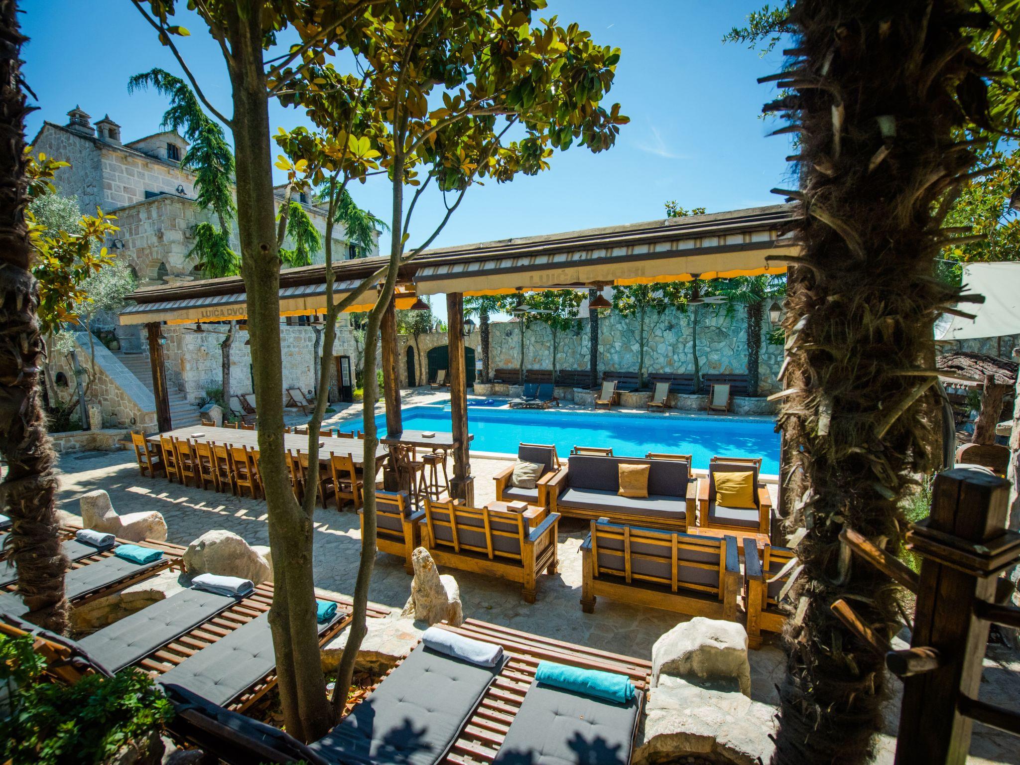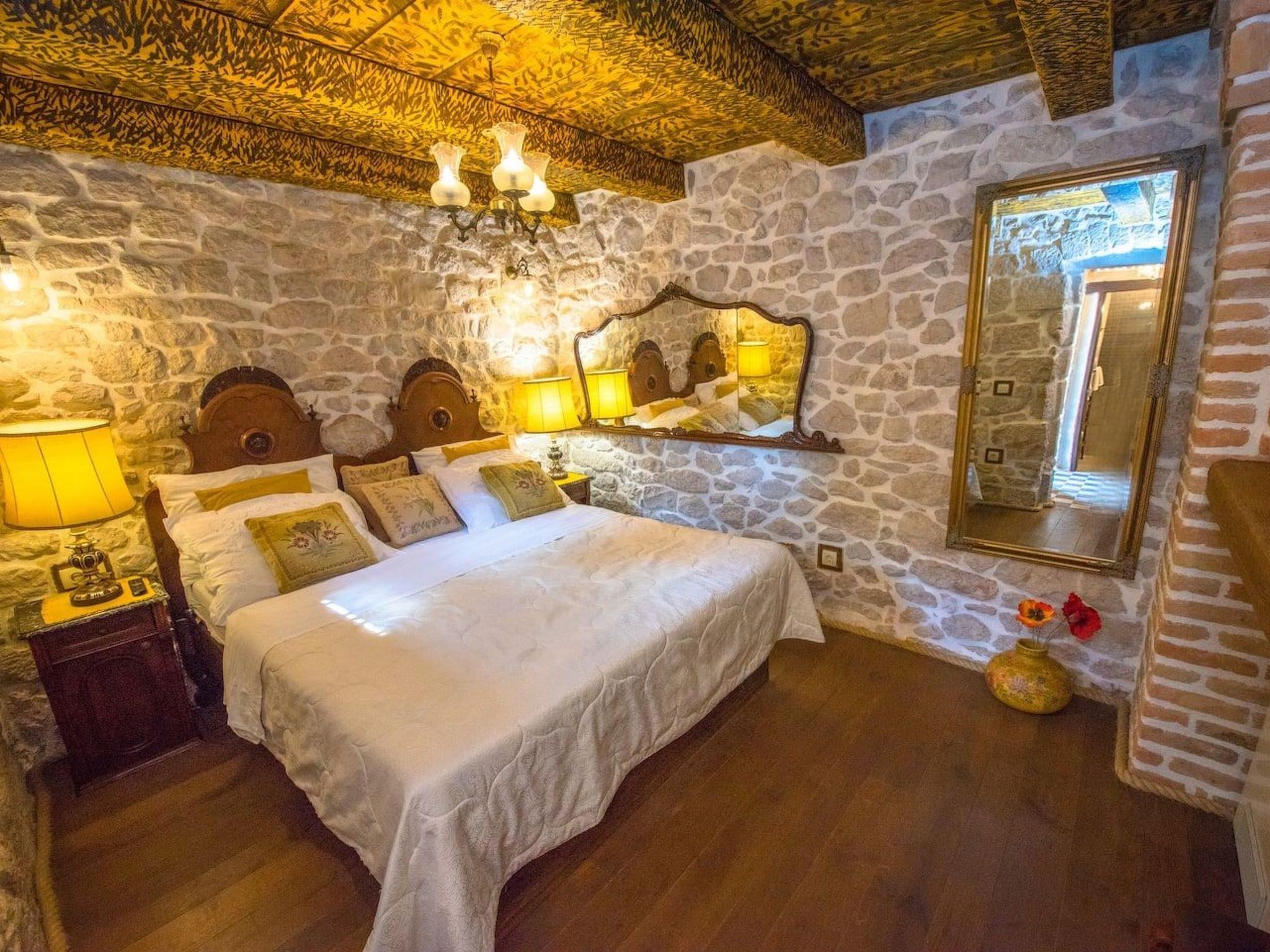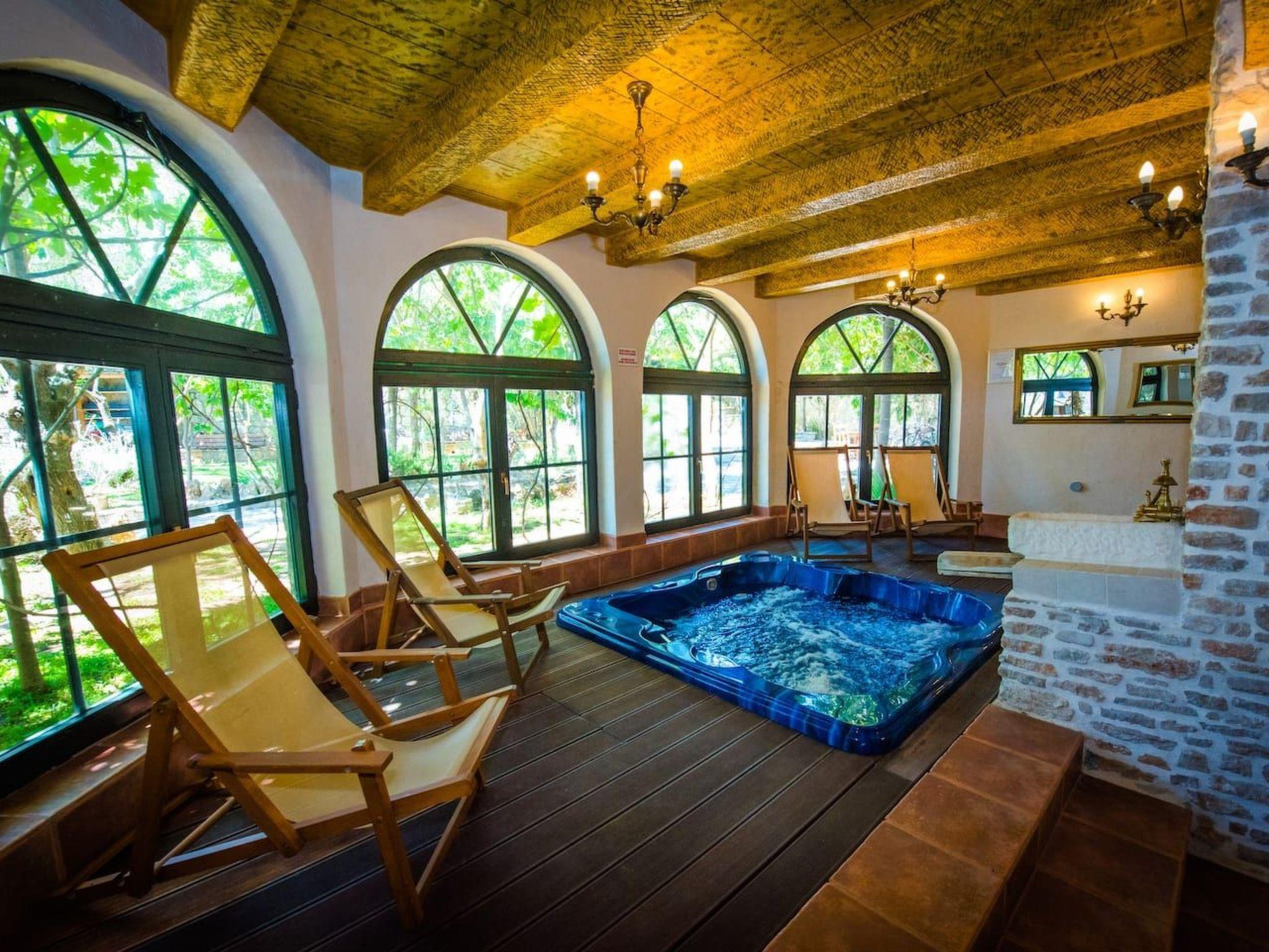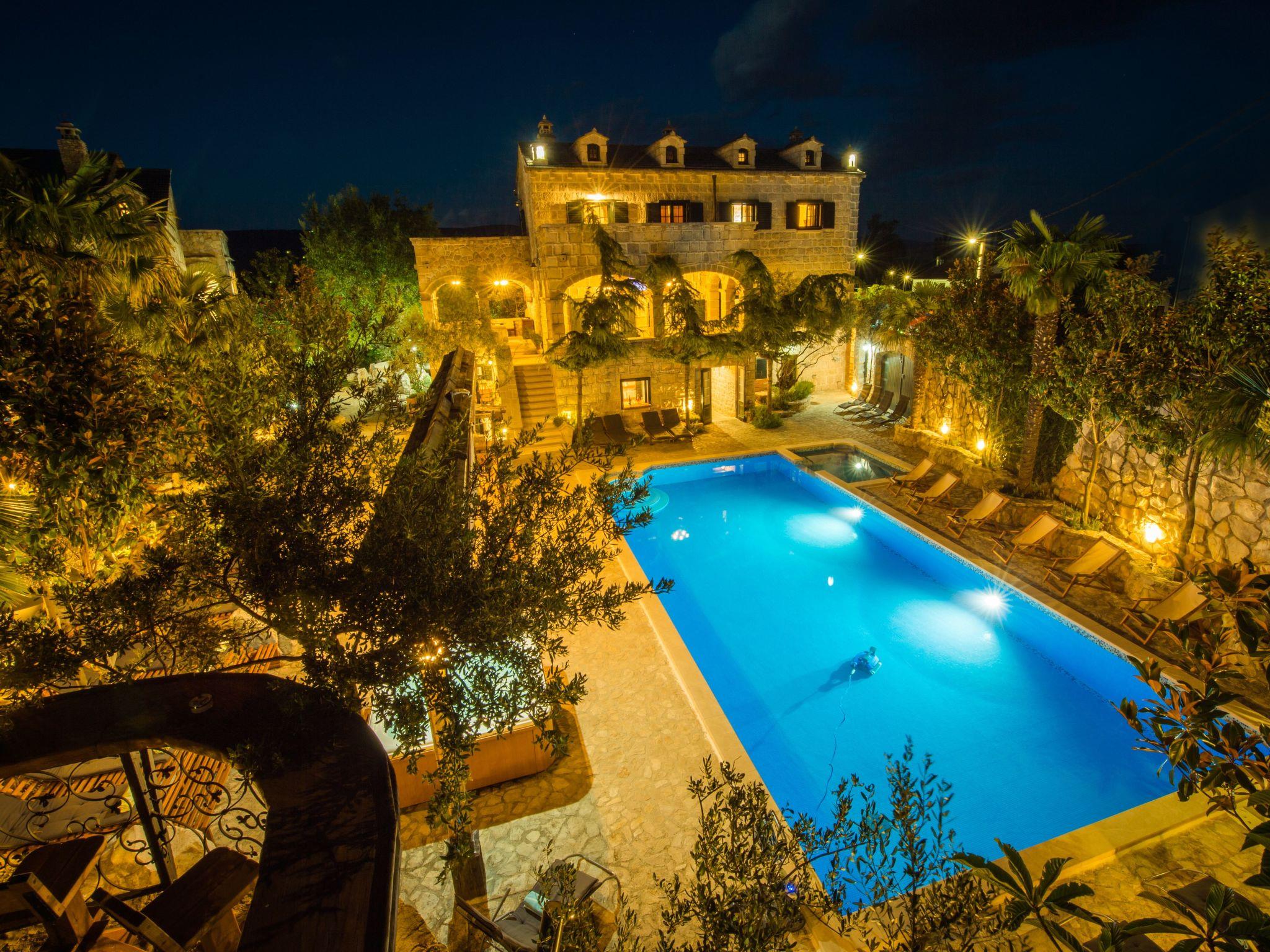 This beautiful five star estate Luica dvori is made of two luxuriously decorated villas of stone with a heated pool on the property 2000m2 big surrounded with giant stone walls which provide guests with privacy and intimacy for an unforgettable vacation.This extraordinary property consists of two stone luxurious villas with a heated pool on a plot of 2000m2 surrounded by a high stone wall that allows guests complete privacy for a memorable vacation. Just across the two villas (the haciendas) guests can use a third (extra) facility with parking lots and garages with 20 bicycles that are ideal for cycling lovers since there is a beautiful river just about 100 meters from the property with numerous cycle paths running along. Both villas have the top two floors connected by an internal communication, while the three separate units at the ground floor have separate entrances. The richly decorated interiors are made of hand-hewn stone, old mortar, Roman brick and hand-carved wood and furnished with restored antique furniture from the 18th and 19th centuries. Beds with their short dimensions out of this period are especially restored and prolonged by today's highest standards. Each villa has one large room for a common room, one of which is associated with a wine cellar. In one of the villas lies a large fitness room with whirlpool, sauna and changing rooms with showers. In several activity rooms, guests can relax by playing in one of the three pianos, or have fun with 2 billiards, table tennis, darts, table football, table hockey, a game console, and the use of free and unlimited Wi-Fi with signal covering the entire property. In the yard is a playground with a sandbox where there is a multitude of children's content for the youngest guests.The special microclimate of the area along the river and wide stone walls of the villa enable pleasant vacation with summer heat during the day and the pleasant night temperatures without any major need to use (existing) air conditioning. Each room has air conditioning (heating/cooling).