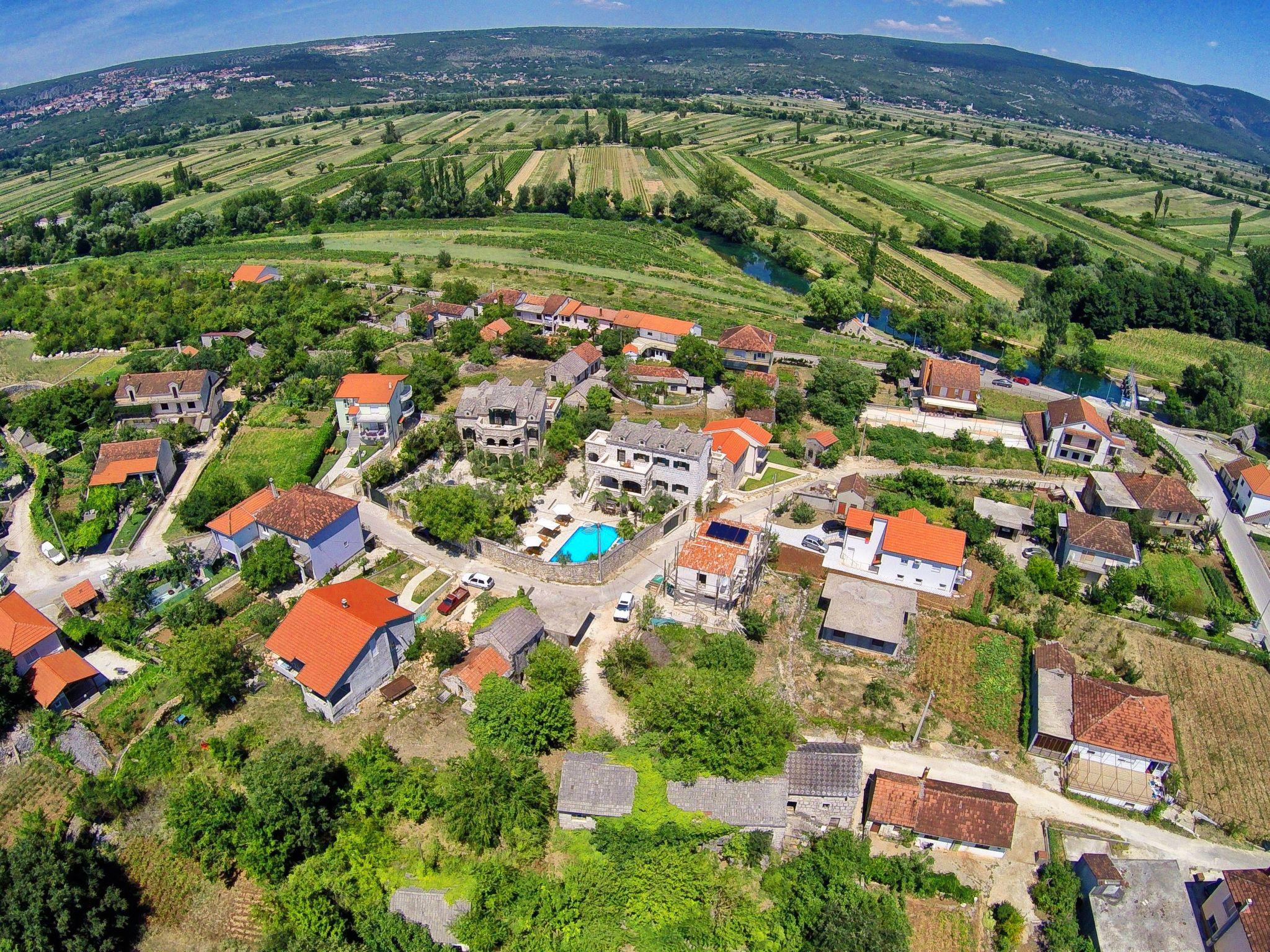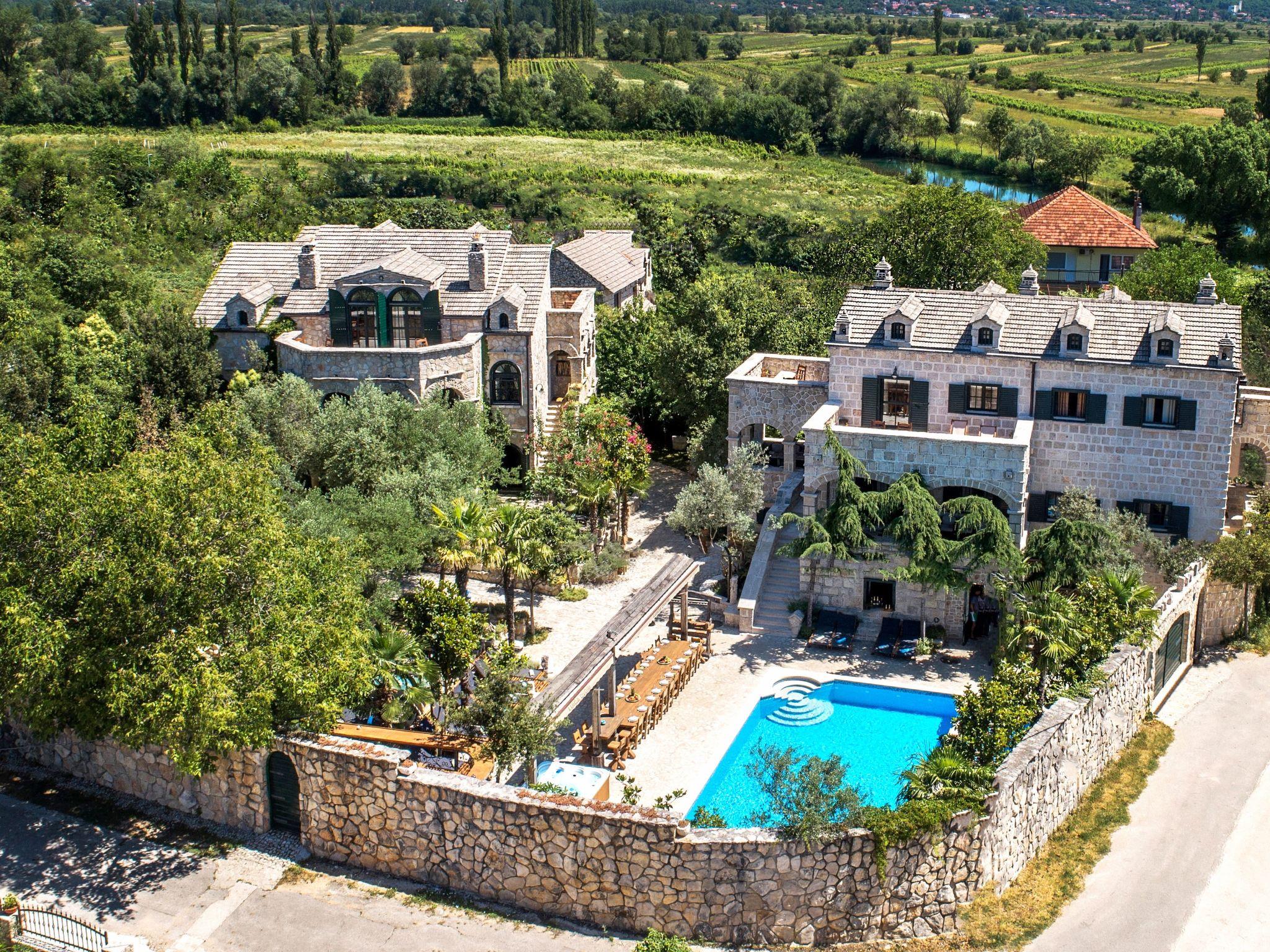 This wonderful estate is located in the village of Zmijavci, only 23km from the sea. The village of Zmijavci has a wonderful landscape with river Vrlika just 20metres from the property. There are 20 bikes available for our guests that they can freely use to explore the natural beauties of the area.The world famous pebble and sandy beaches of Makarska Riviera can be reached in 20-25 minutes by car, and in the vicinity there is also the town of Imotski with the natural phenomena of the Red and the Blue Lake. In addition to Imotski and Makarska, for day trips we recommend a tour of historic towns under UNESCO protection Split, Trogir, Dubrovnik and Omis and the National Nature Park Biokovo which is to be seen in the distance fro the estate. Near the property there are several restaurants, shops, a pizzeria with a wood oven, a bakery, there is a possibility for small and large football, rafting and fishing.