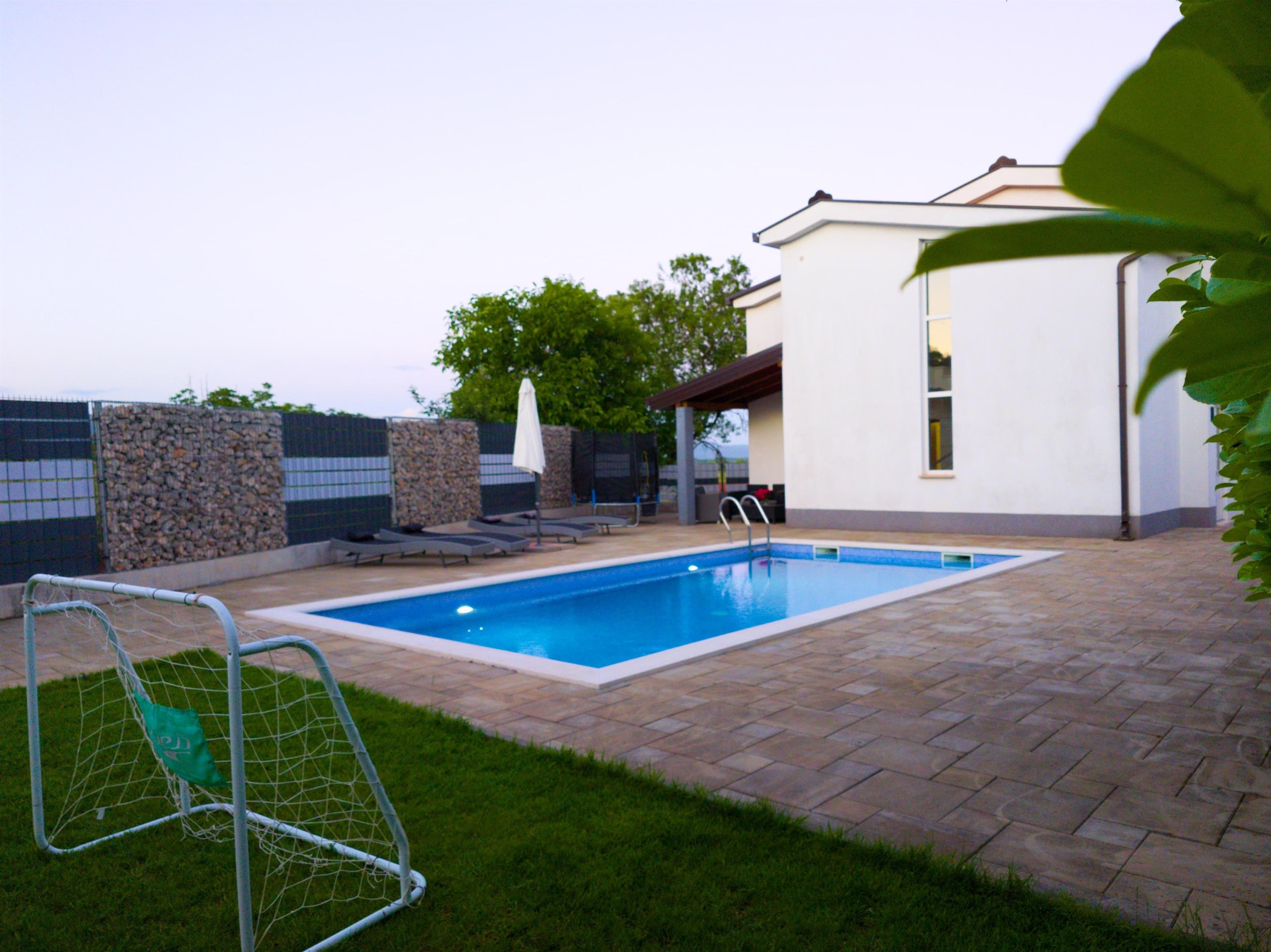 Außenpool mit 32qm, Dartautomat, TV in allen Zimmern ,WLAN. Naturgrundstück mit 600qm Grundfläche, Gartenmöbel, Parkplatz, Schaukel, Grill, Spielhaus, Rutsche, Liegestühl, Trampolin, Tischtennisplatte usw.,,