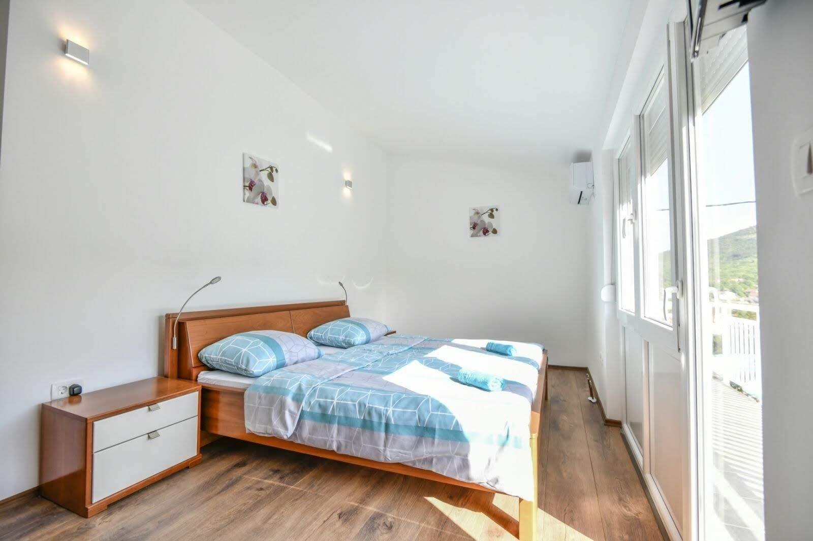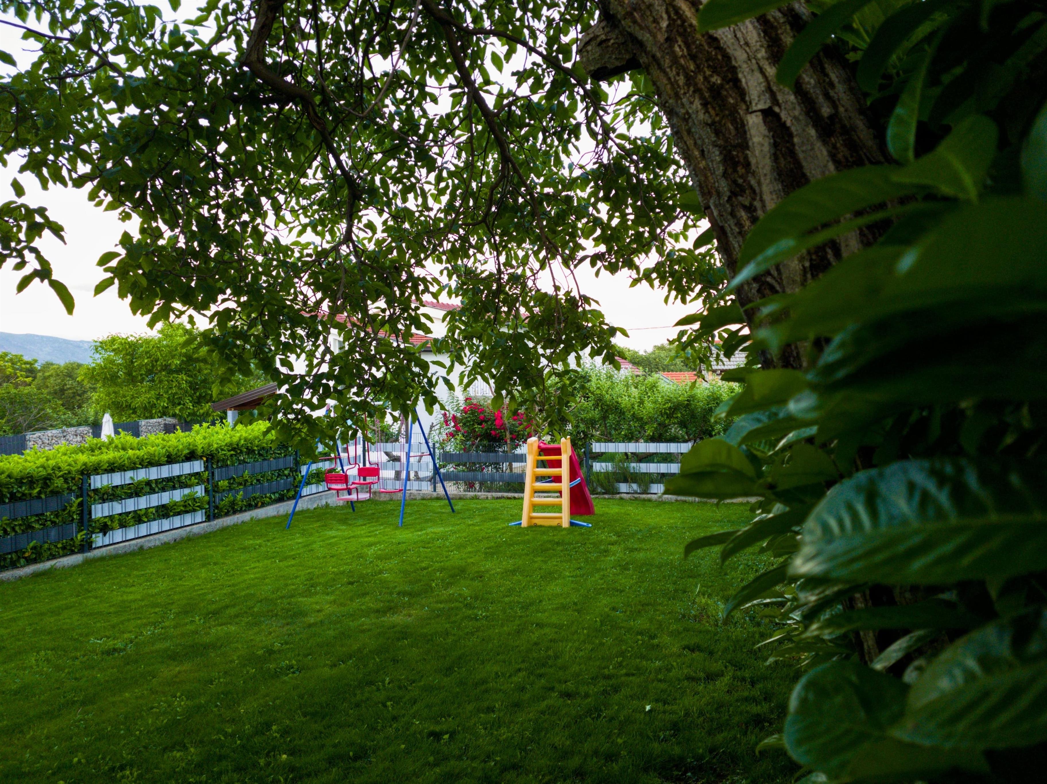Entspannen sie auf geräumiger Terrasse mit Grill, umgeben von Wiesen und Obstgärten. Erfrischen sie sich im Pool während sich die Kinder im Spielbereich beschäftigen. Imotski ist bekannt für seinen Roten und Blauen See, sowie den Fluss Vrljica und bietet ein exzellentes gastronomisches Angebot und Unterhaltungsmöglichkeiten in etwa 7 km Entfernung. In nur etwa einer halben Stunde mit dem Auto erreichen Sie auch herrlichen Strände an der Riviera von Makarska Baška Voda und Brela.Das Haus ist für 8 Personen ausgestattet und verfügt über vier Schlafzimmer, zwei Bäder, Toilette, Wohnzimmer, Esszimmer, Küche, und vier Terrassen. Alle vier Schlafzimmer und das Wohnzimmer verfügen über eine Klimaanlage.