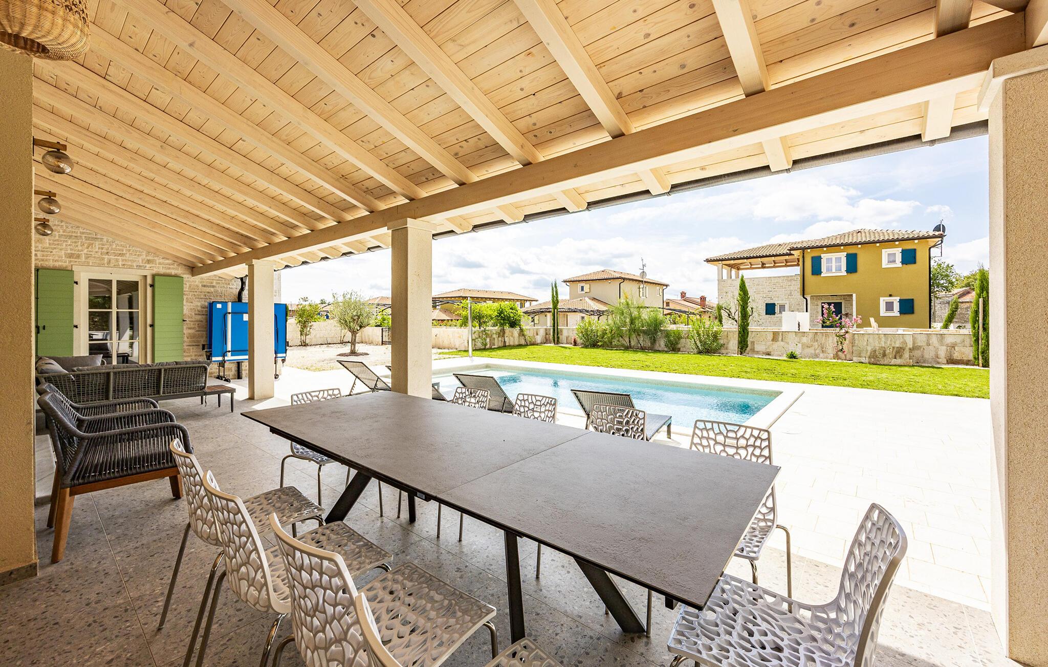 Poolen lægger op til en forfriskende dukkert om morgenen. Bagefter kan I slappe af på en liggestol og nyde udsigten over landskabet. Hvis I har lyst, kan I spille et spil bordtennis. Tilbring aftenen på terrassen og afslut dagen i hyggeligt selskab med et godt glas vin.