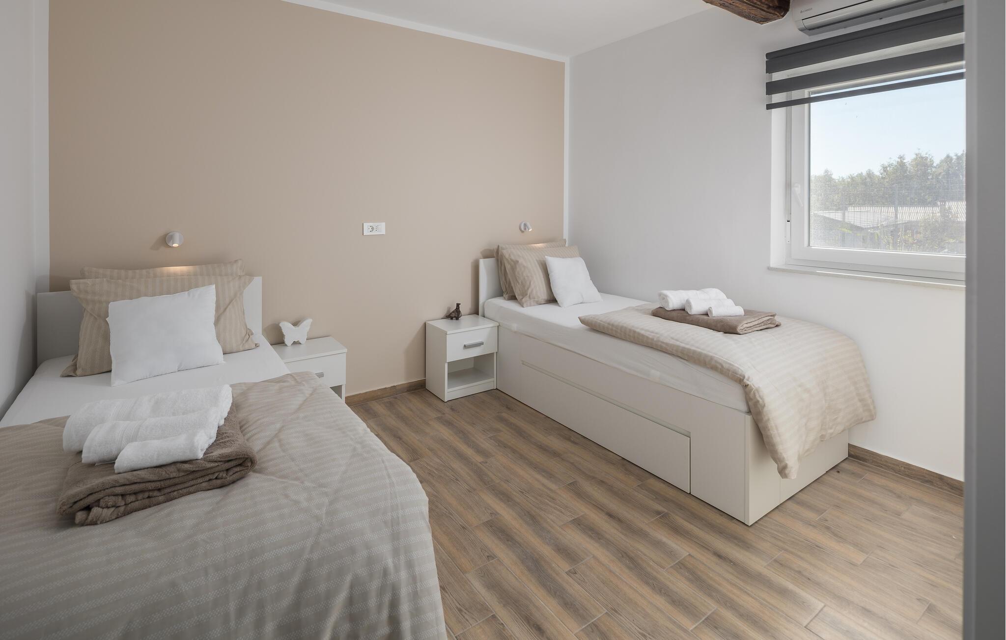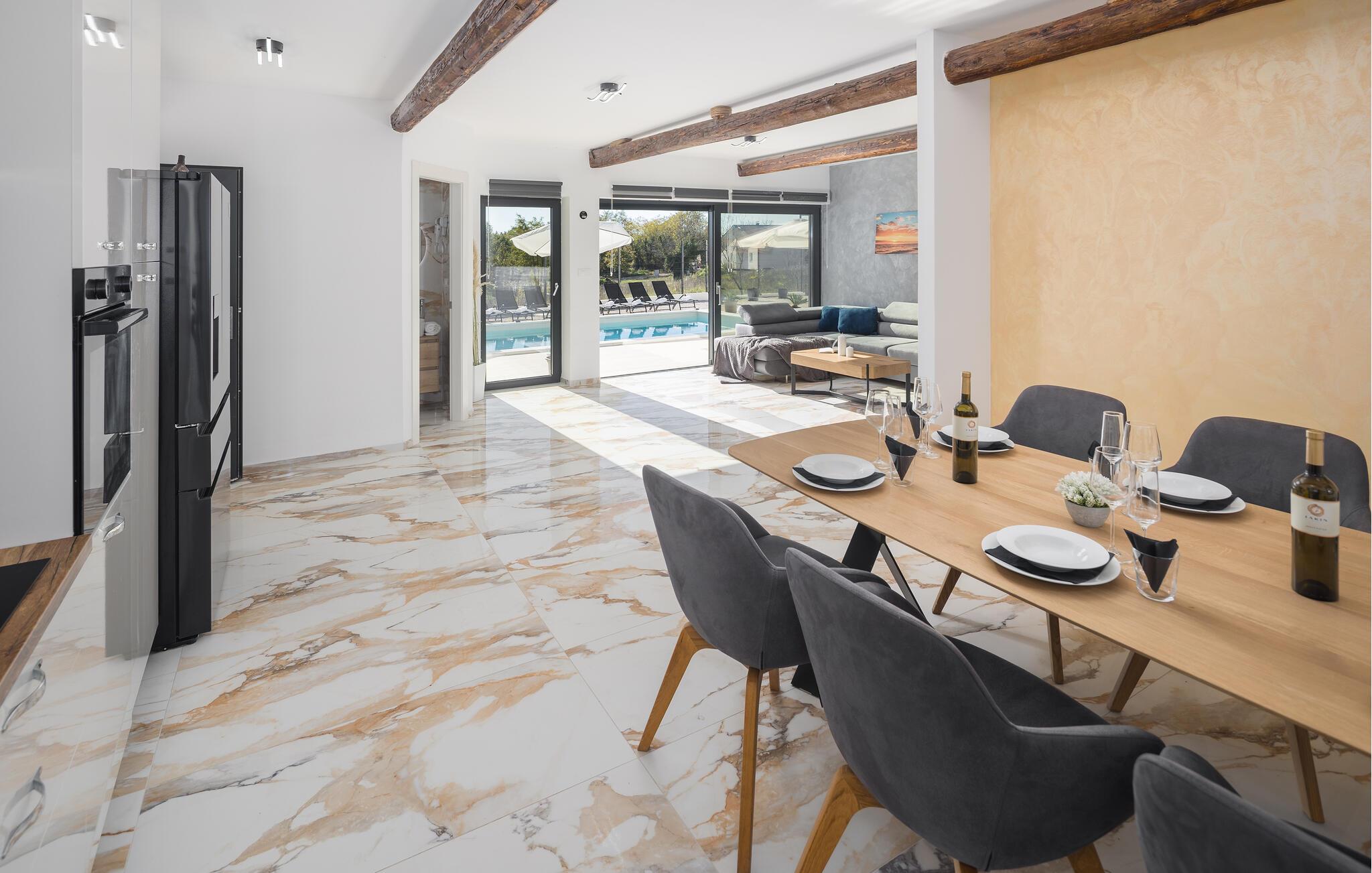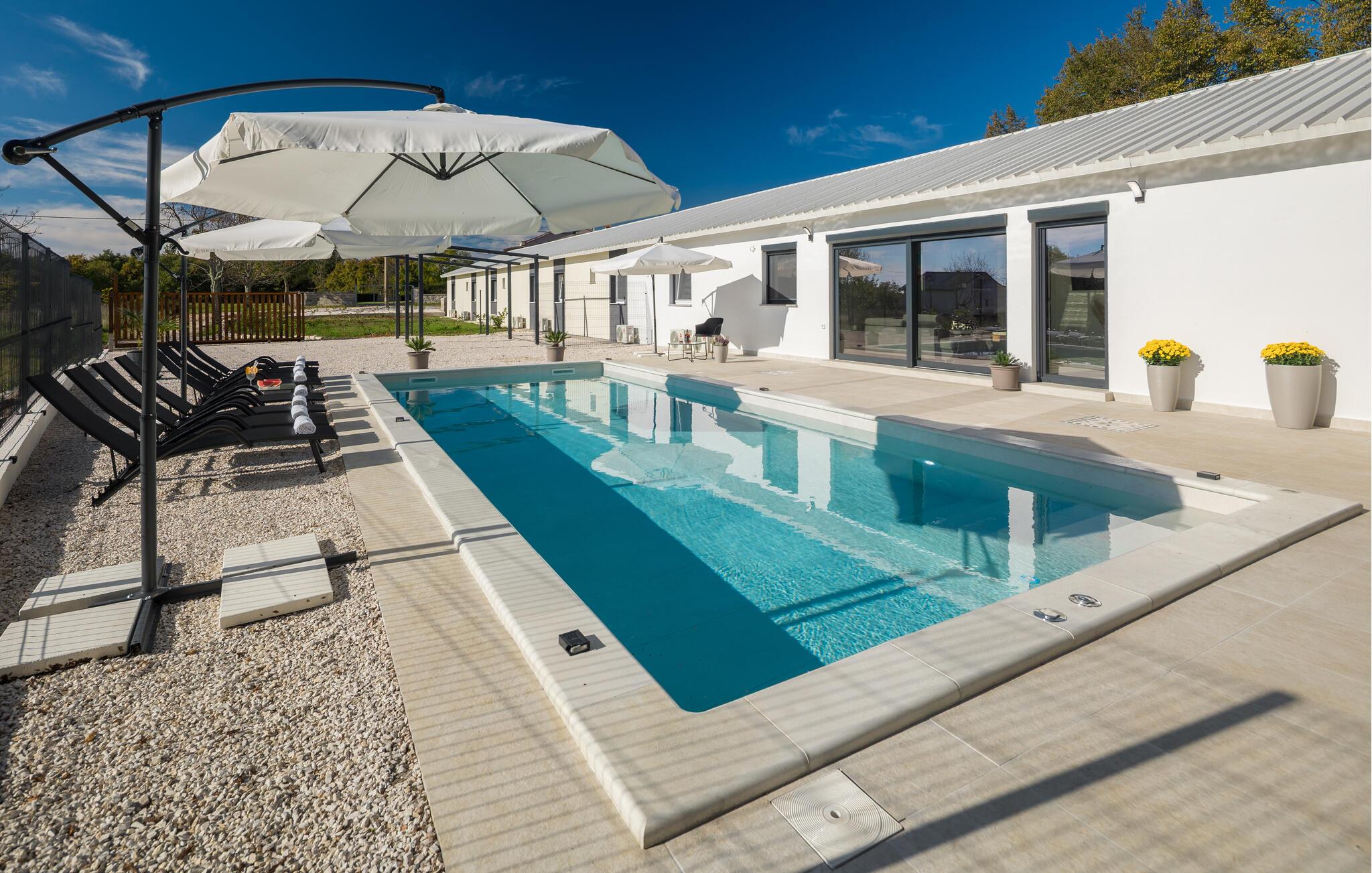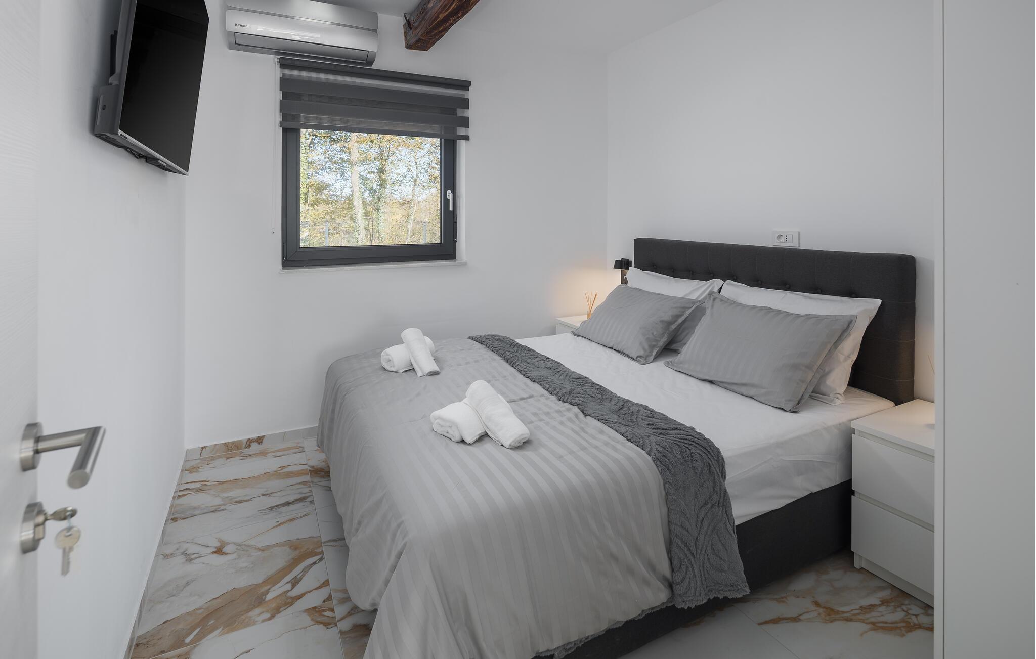 Tilbring en dejlig ferie ved havet i dette komfortable feriehus med en fantastisk panoramaudsigt. Velkommen til dette indbydende og meget rummelige hus, der byder jer velkommen midt i et idyllisk landskab og fortryller med sin storslåede udsigt. Her kan I nyde en uforglemmelig ferie, selv med en større gruppe. Efter dagens aktiviteter kan I slå jer ned i den behagelige sofa, diskutere dagens oplevelser og nyde udsigten over poolen, mens I spiser og slapper af. Gå ud på terrassen og nyd den unikke udsigt derfra. Nyd solen og svøm baner i poolen, eller slap af i udendørsspabadet. Jeres børn vil finde masser af plads til at lege og forskellige legeredskaber. Gå en tur gennem de idylliske gader i Žminj, en charmerende landsby i hjertet af halvøen, og oplev det autentiske Kroatien langt fra travlheden. Udforsk det grønne landskab omkring Šoštari på cykel eller til fods – indånd duften af lavendel, rosmarin og oliventræer, og nyd den vidtstrakte udsigt over bakker og vinmarker. Besøg nærliggende vingårde og prøv prisvindende vine direkte fra vinproducenten. Tag til havet og svøm i Adriaterhavet; Strandene i Rovinj, Porec og Vrsar ligger kun en kort køretur væk.