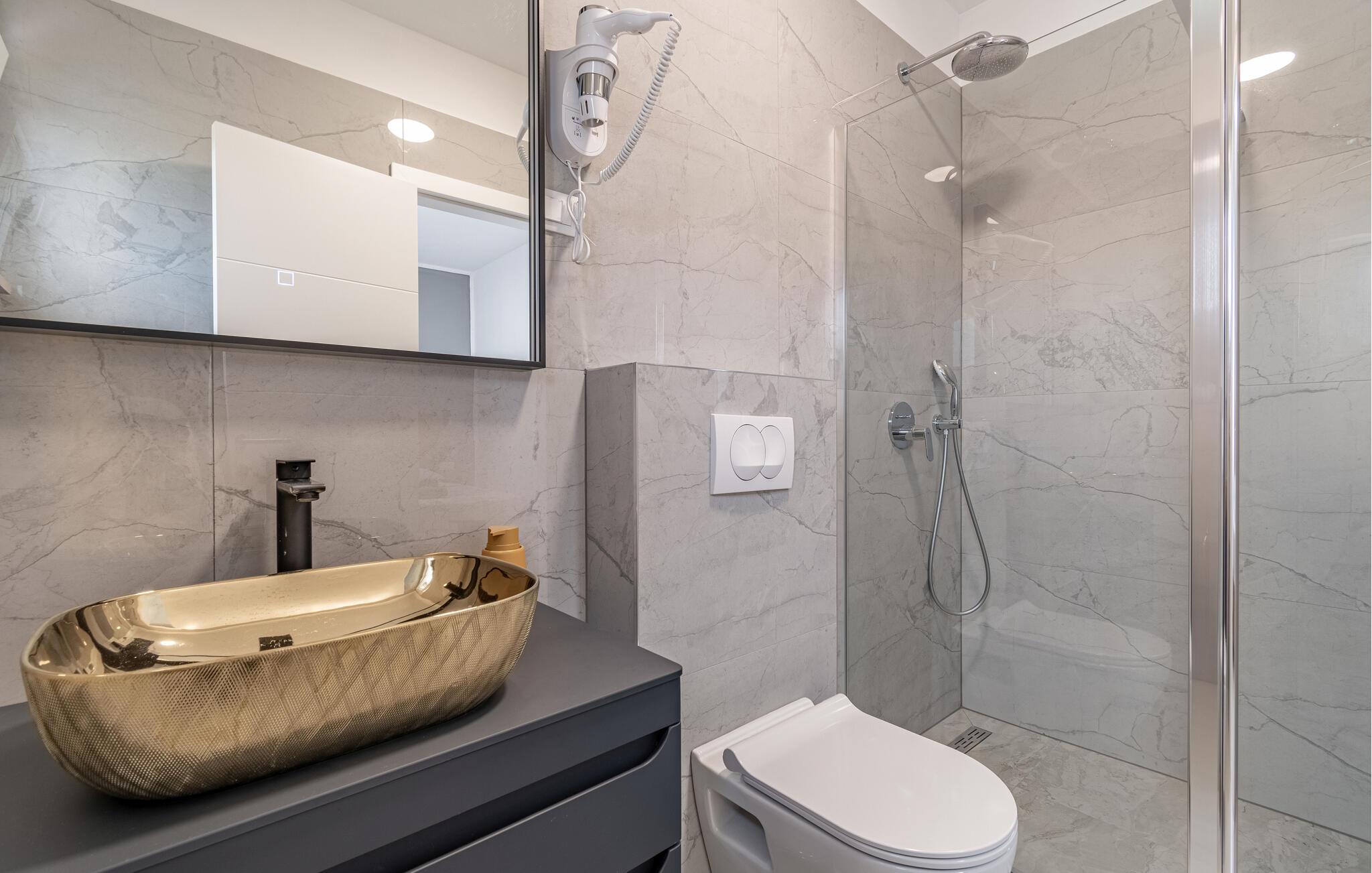- WC. Varmt og koldt vand, Bruser
