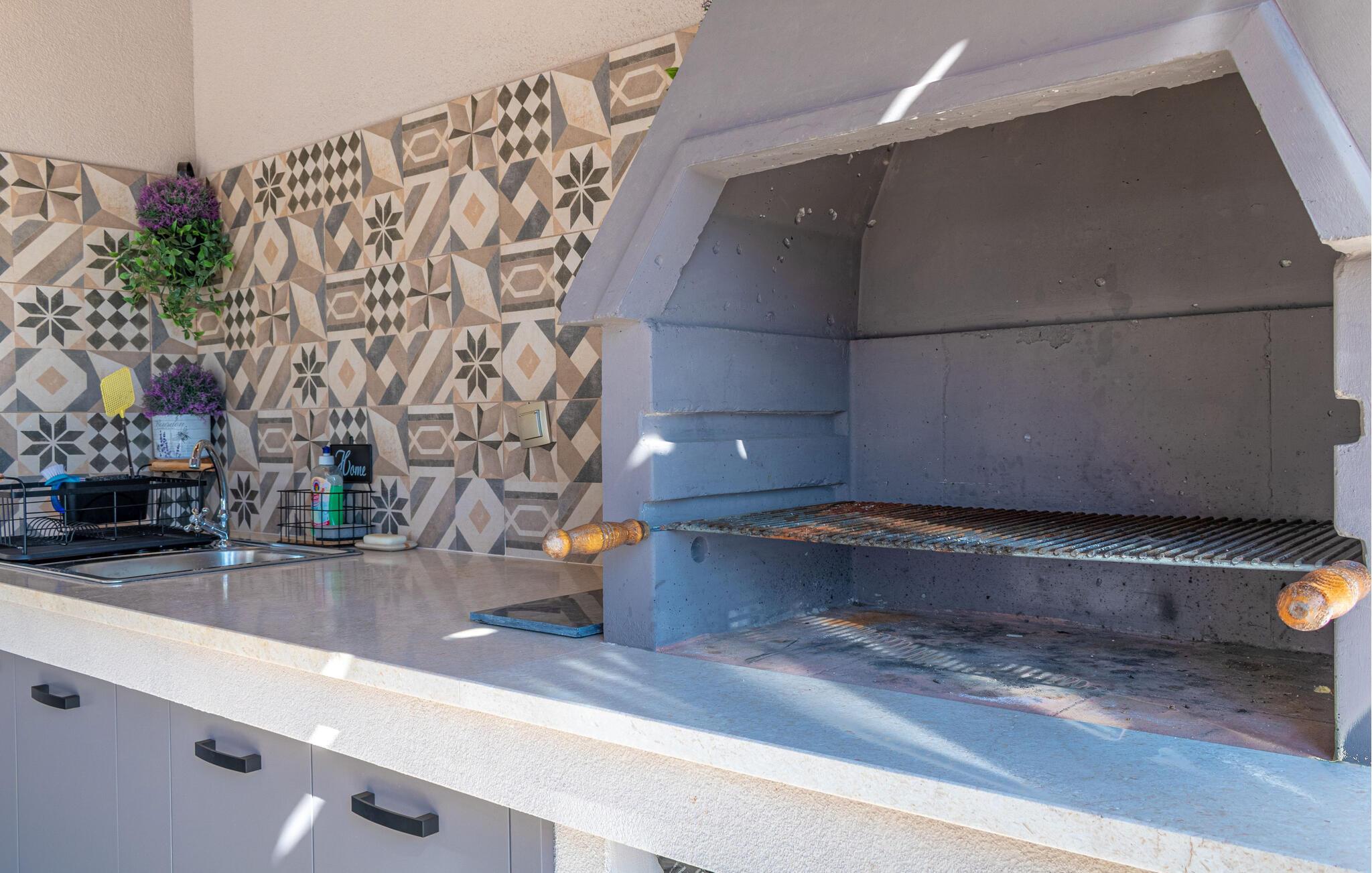 Benyt jer af muligheden for at tilberede jeres måltider på grillen, og nyd dem på den overdækkede terrasse eller i det smukke spisekøkken. De hyggelige siddegrupper indenfor giver hele familien rigelig plads til at slappe af og føle sig godt tilpas.