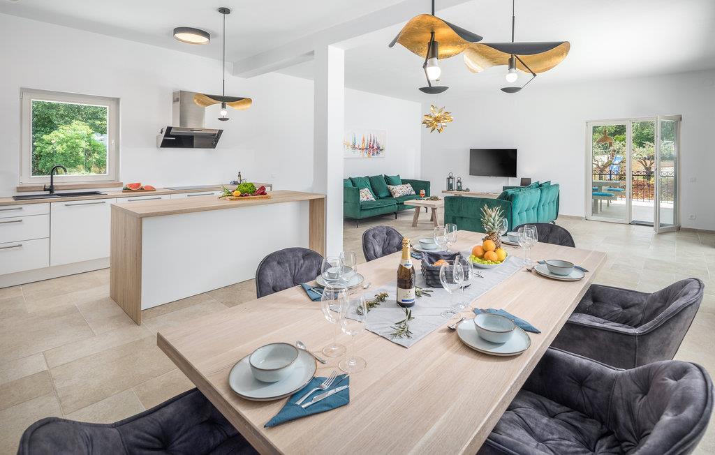 Glæd dig til en fantastisk ferie i dette rummelige og moderne stenhus med swimmingpool. Velkommen til dette smukke og moderne feriehus i hjertet af Istrien. Det er det ideelle sted at slappe af, slappe af og forlade dit hektiske familieliv. Det indre af huset er meget smagfuldt, lyst og indrettet med smukke farveaccenter. Her har du god plads i to etager til at tilbringe årets smukkeste uger i et miljø af høj kvalitet. Grill på den overdækkede terrasse om aftenen og se dine børn lege og svømme i poolen. Men ikke kun poolen vil være i fokus for dine små, du vil også have en masse sjov på den private legeplads. Når du udforsker området, kan du tage en afstikker til ruinbyen Dvigrad eller opleve Lim-kanalen, mens du vandrer og cykler. Betagende udsigt vil fortrylle dig og love dig uforglemmelige badeoplevelser. Besøg også kystbyerne Rovinj og Porec og nyd den gode atmosfære langs kystpromenadene og i restauranterne!