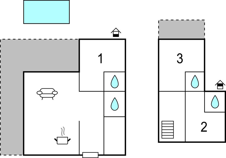 Soveværelse 20m2 (nr. 2) - 1 Soveplads. (Enkeltseng(e)). 2 Sovepladser. (Dobbeltseng(e)).