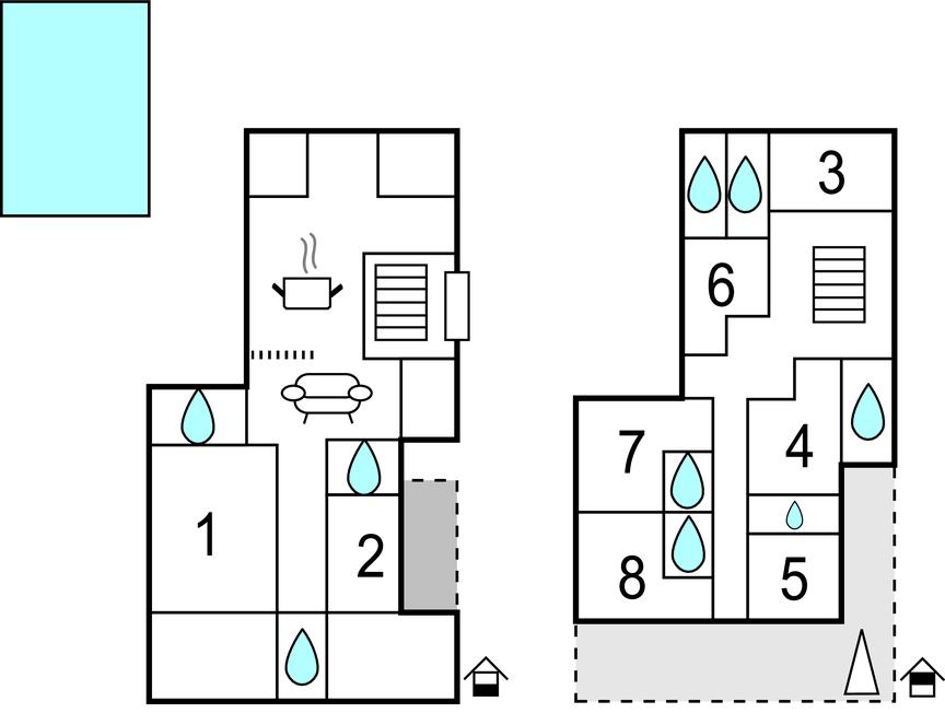 Soveværelse 8m2 (nr. 8) - 2 Sovepladser. (Enkeltseng(e)).