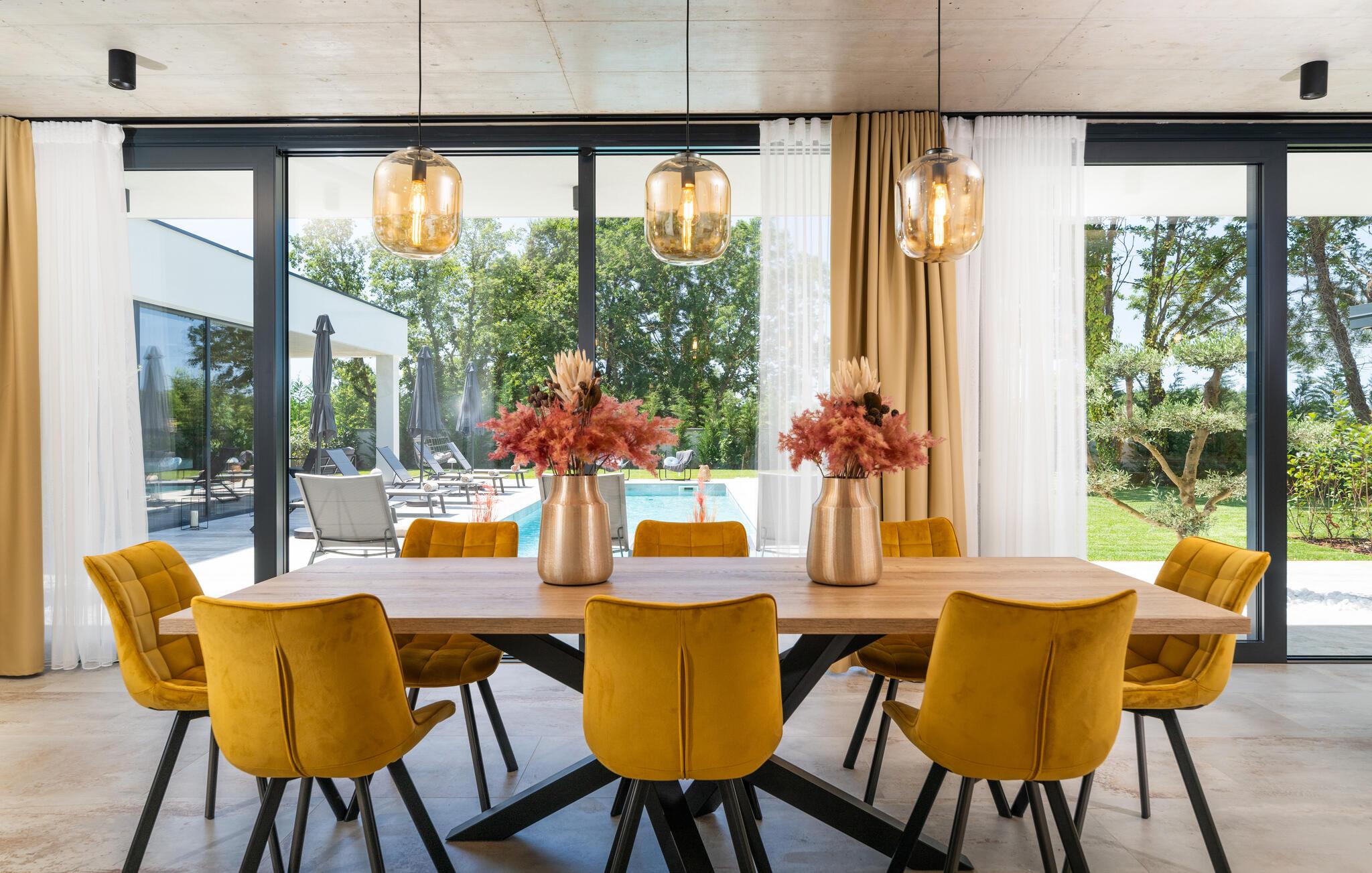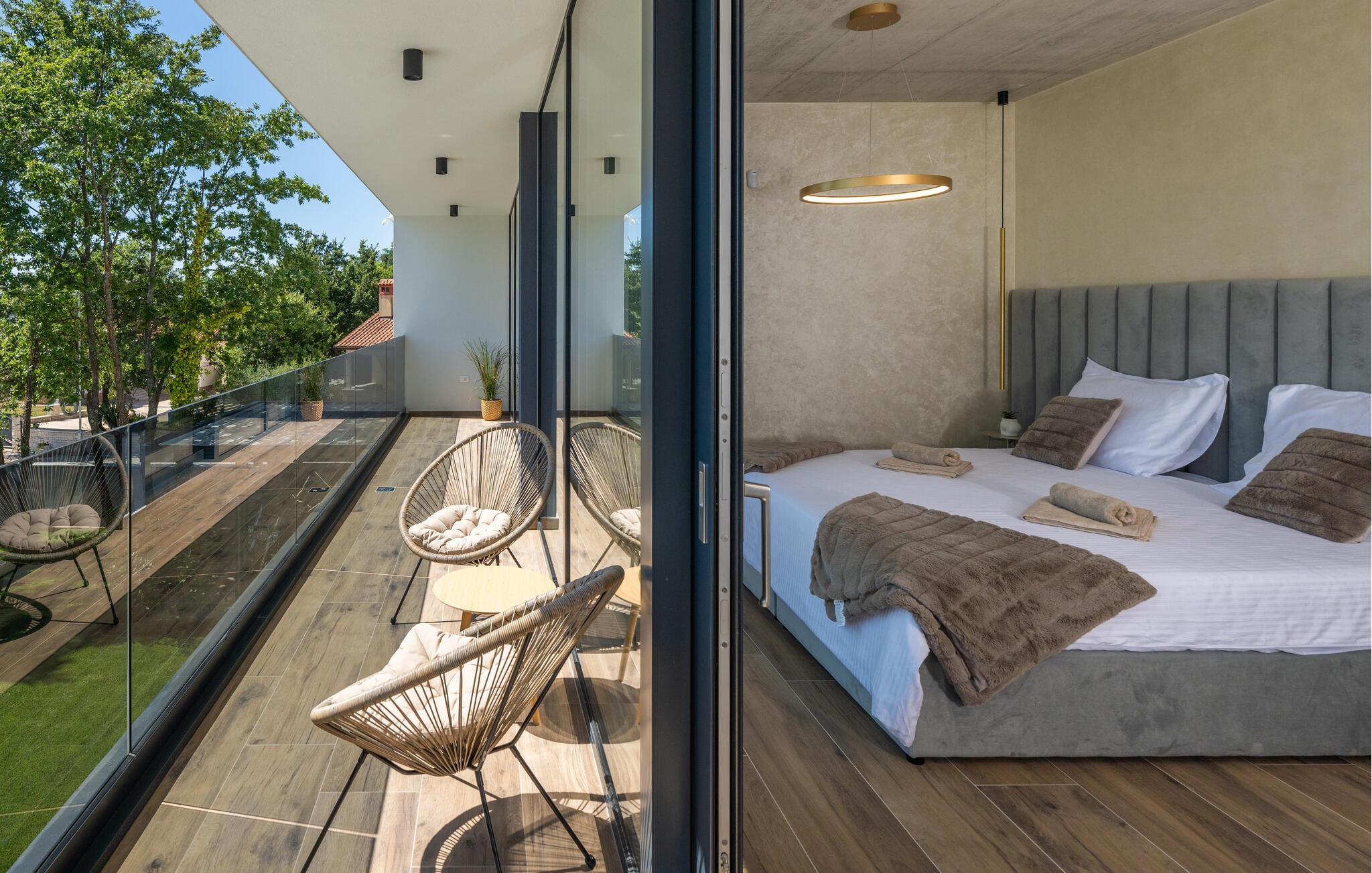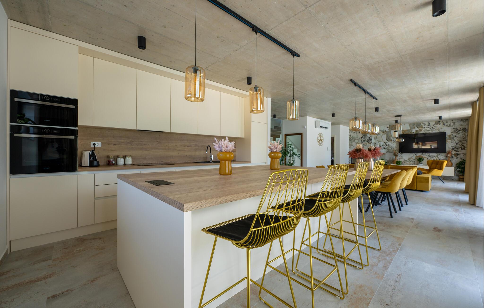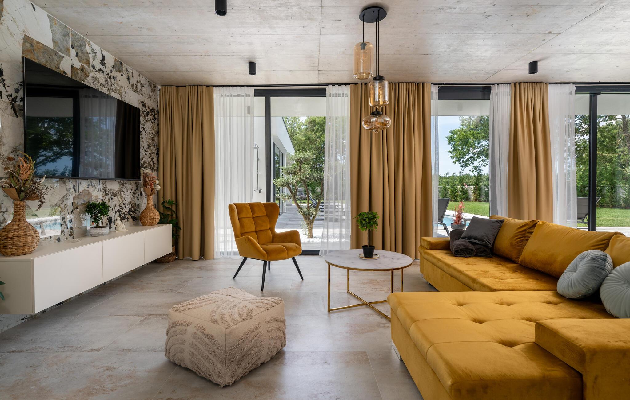 Denne eksklusive ejendom i Zminj-Modrusani giver jer alle de faciliteter, I har brug for til et uforglemmeligt ophold. Den velholdte græsplæne er understøttet af et effektivt kunstvandingssystem, så haven ser altid frisk ud, og den opvarmede pool lægger op til at slappe af. Begynd jeres feriedage med en forfriskende svømmetur i poolen og nyd derefter morgenmaden i det moderne sommerkøkken, som er udstyret med et integreret tv. Her kan I tilberede jeres måltider i en hyggelig atmosfære og samtidig nyde omgivelsernes skønhed.