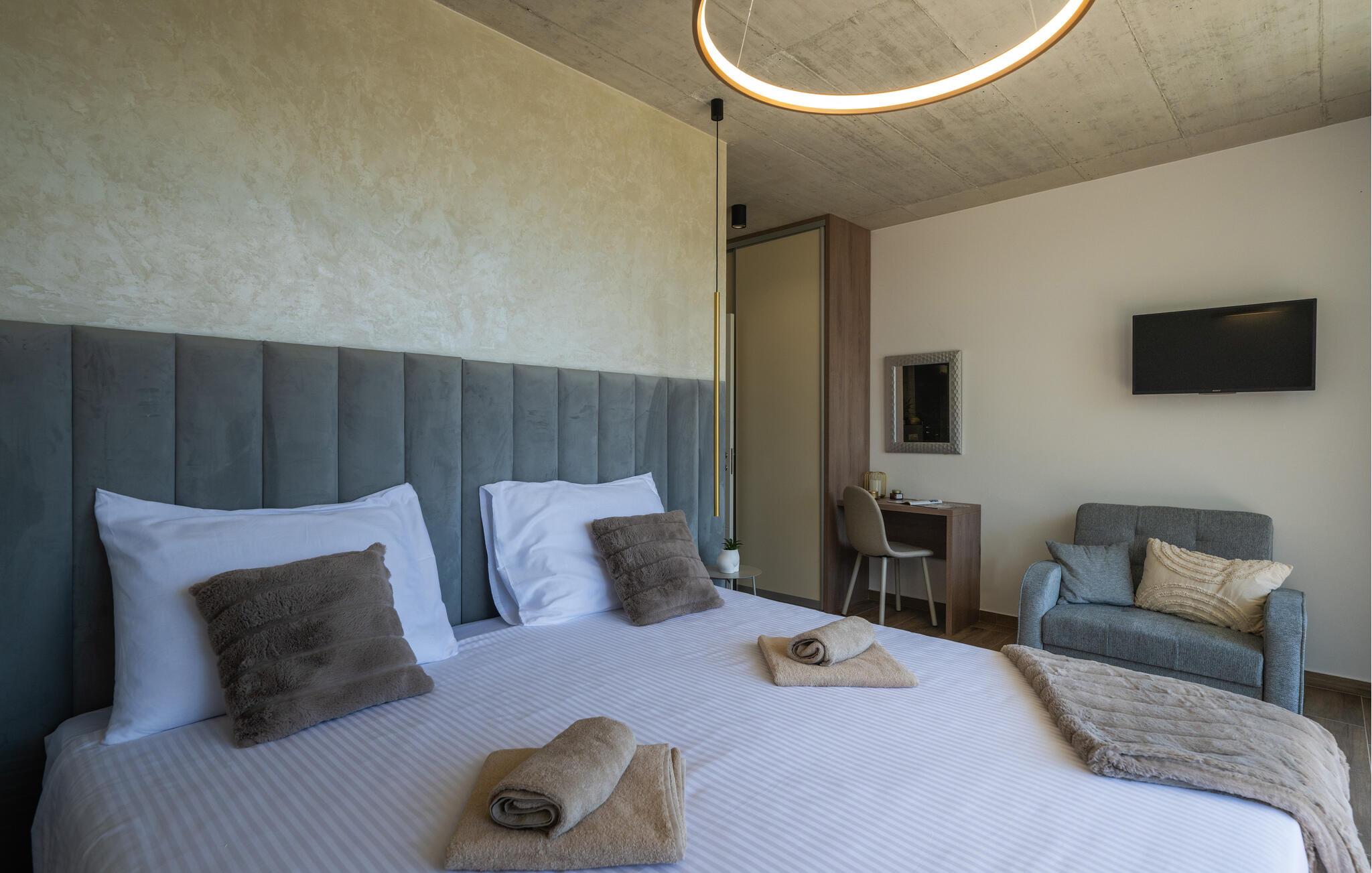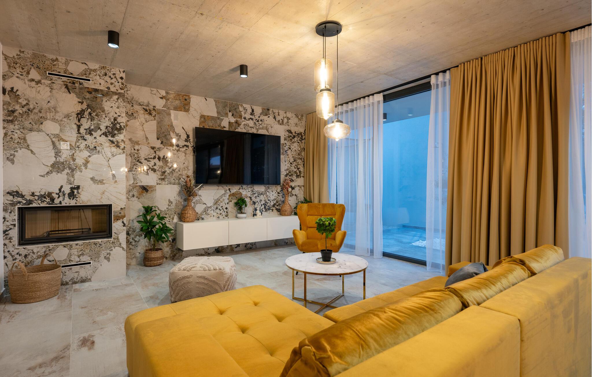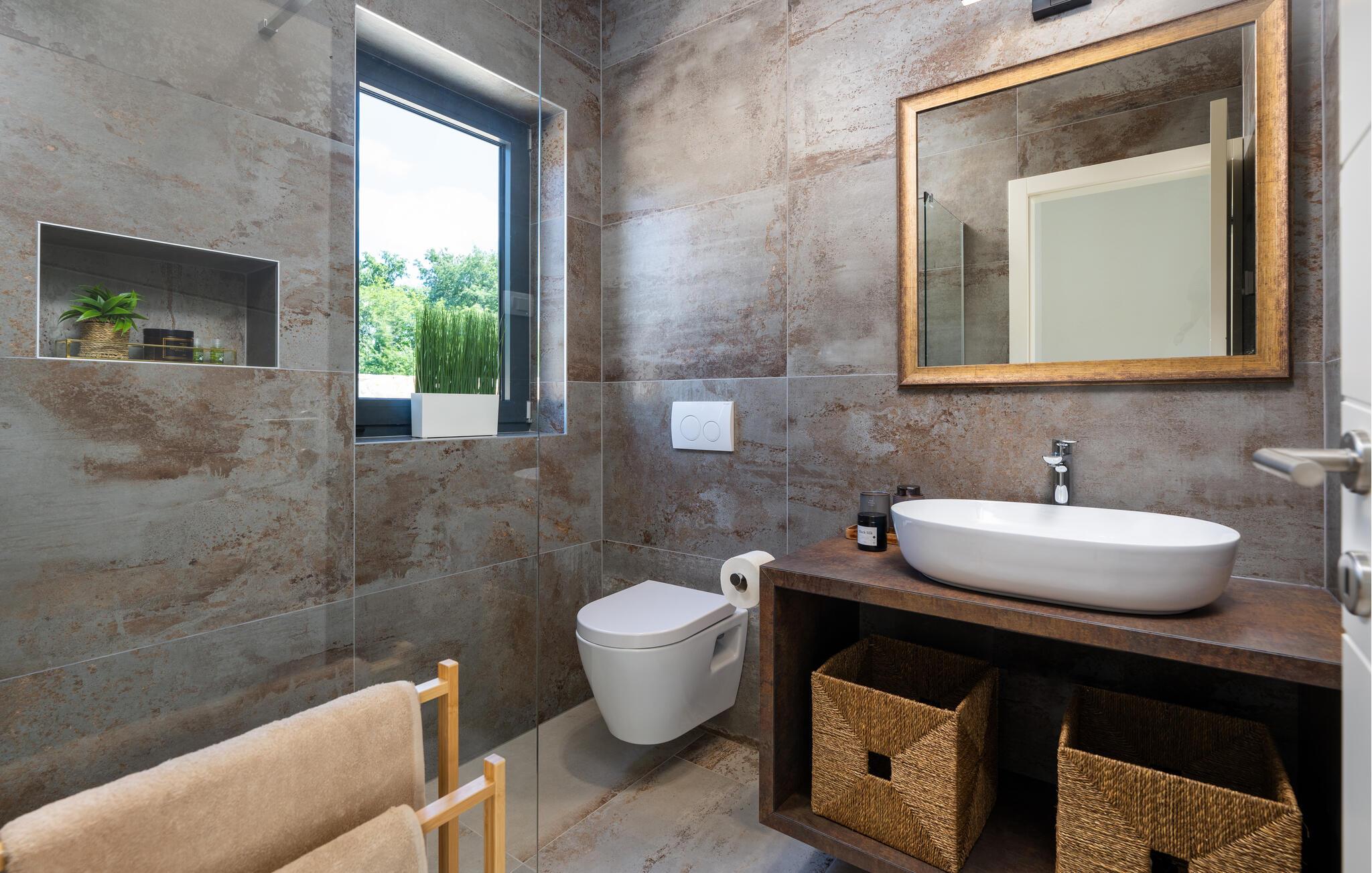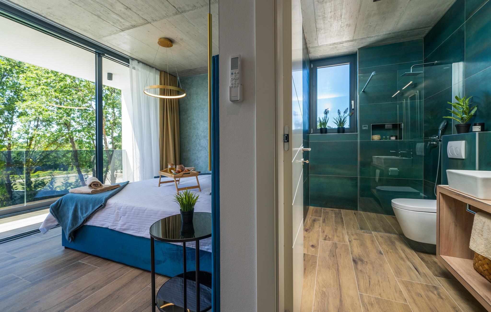 Denne eksklusive ejendom i Zminj-Modrusani giver jer alle de faciliteter, I har brug for til et uforglemmeligt ophold. Den velholdte græsplæne er understøttet af et effektivt kunstvandingssystem, så haven ser altid frisk ud, og den opvarmede pool lægger op til at slappe af. Begynd jeres feriedage med en forfriskende svømmetur i poolen og nyd derefter morgenmaden i det moderne sommerkøkken, som er udstyret med et integreret tv. Her kan I tilberede jeres måltider i en hyggelig atmosfære og samtidig nyde omgivelsernes skønhed.