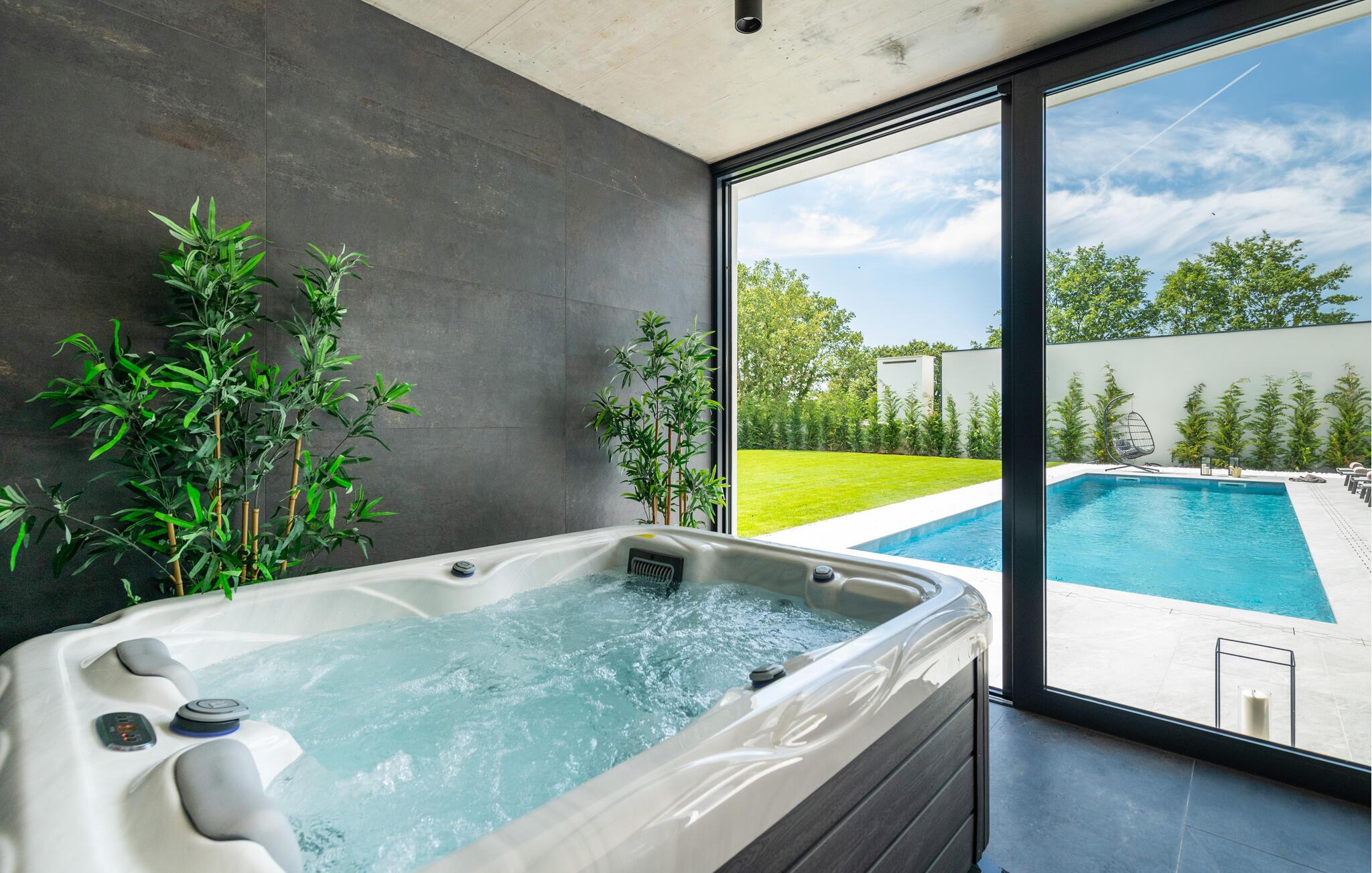 Inde i feriehuset finder I et stilfuldt wellnessområde med sauna og spabad. Forkæl jer selv med en pause og gør noget godt for alle jeres sanser i denne luksuriøse oase. Huset er lyst og rummeligt og har en behagelig atmosfære, hvor I nemt kan føle jer hjemme.