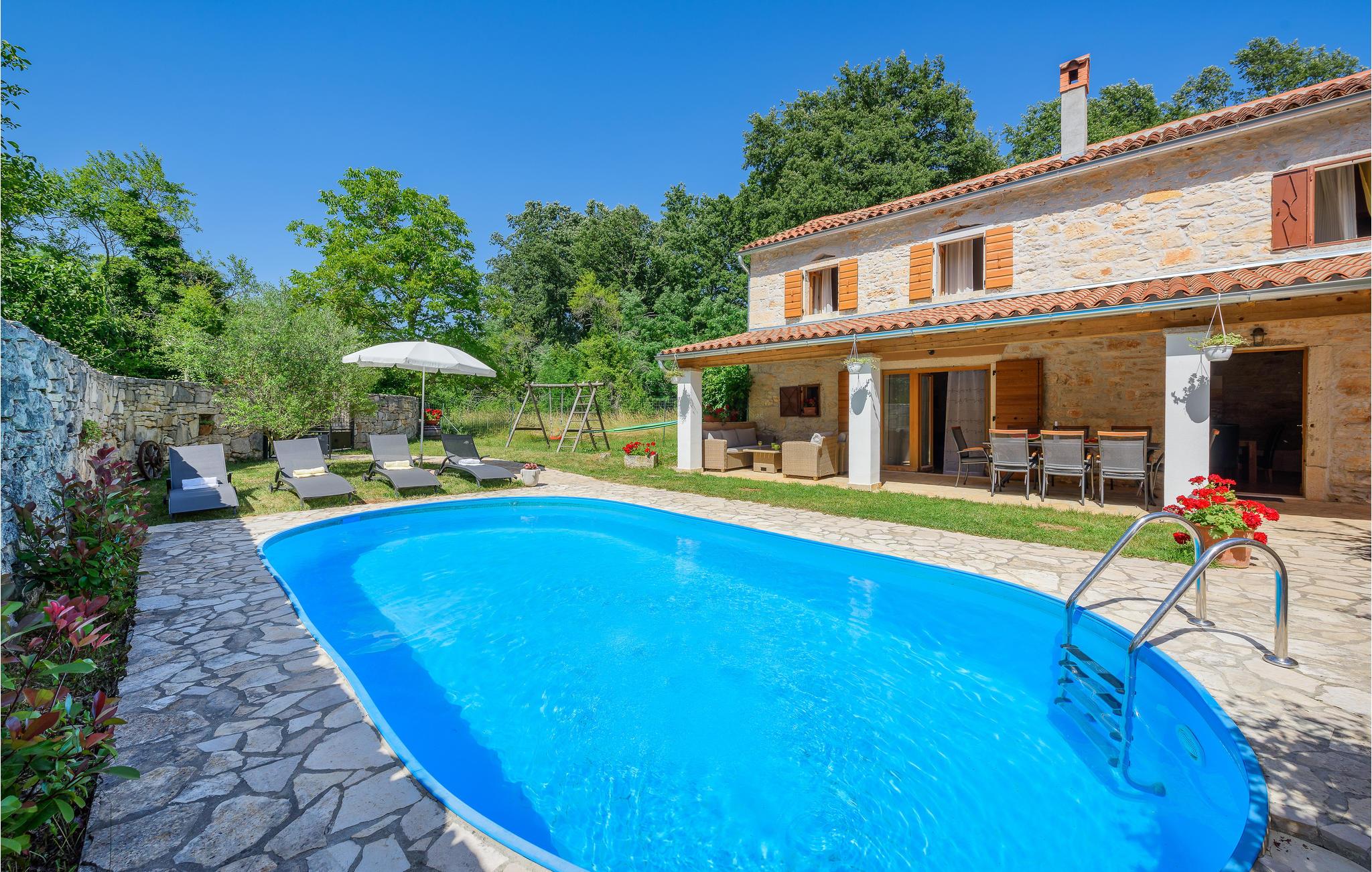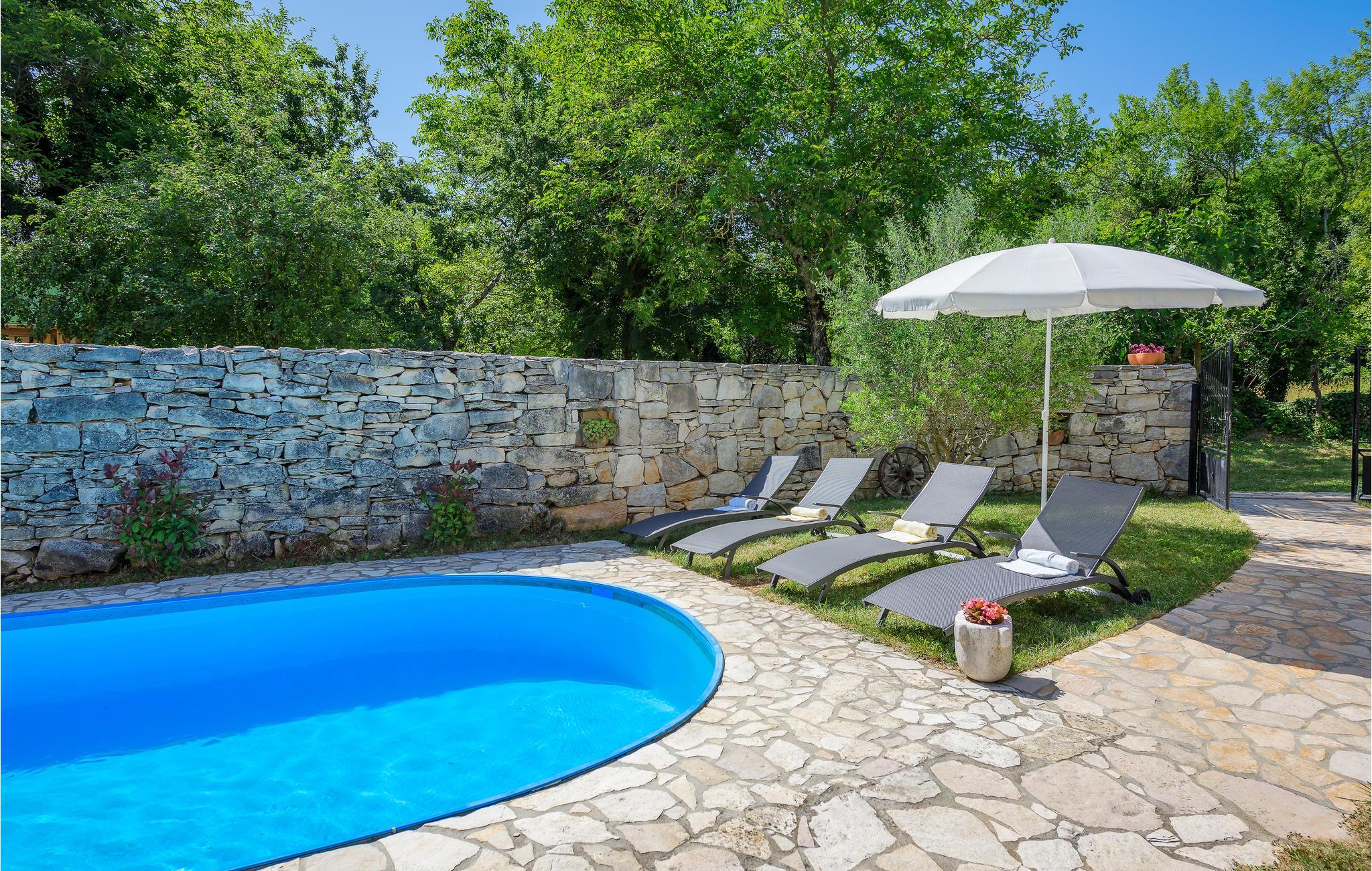 Dette feriehus med swimmingpool blev bygget i slutningen af 1800tallet, men er gennemrenoveret og fremstår nu som et moderne og komfortabelt feriehus. Det ligger i den lille, rolige by midt i Istrien og i næreheden af den større by Zminj. I haven er der en overdækket terrasse, en udendørs grill og en swimmingpool, hvor I kan tage en forfriskende svømmetur på de varme dage. Her kan I holde en pragtfuld ferie, som I sent vil glemme. Hvis I kan løsrive jer fra jeres skønne feriebolig, så besøg Istriens større byer, hvor der er meget at se og opleve.