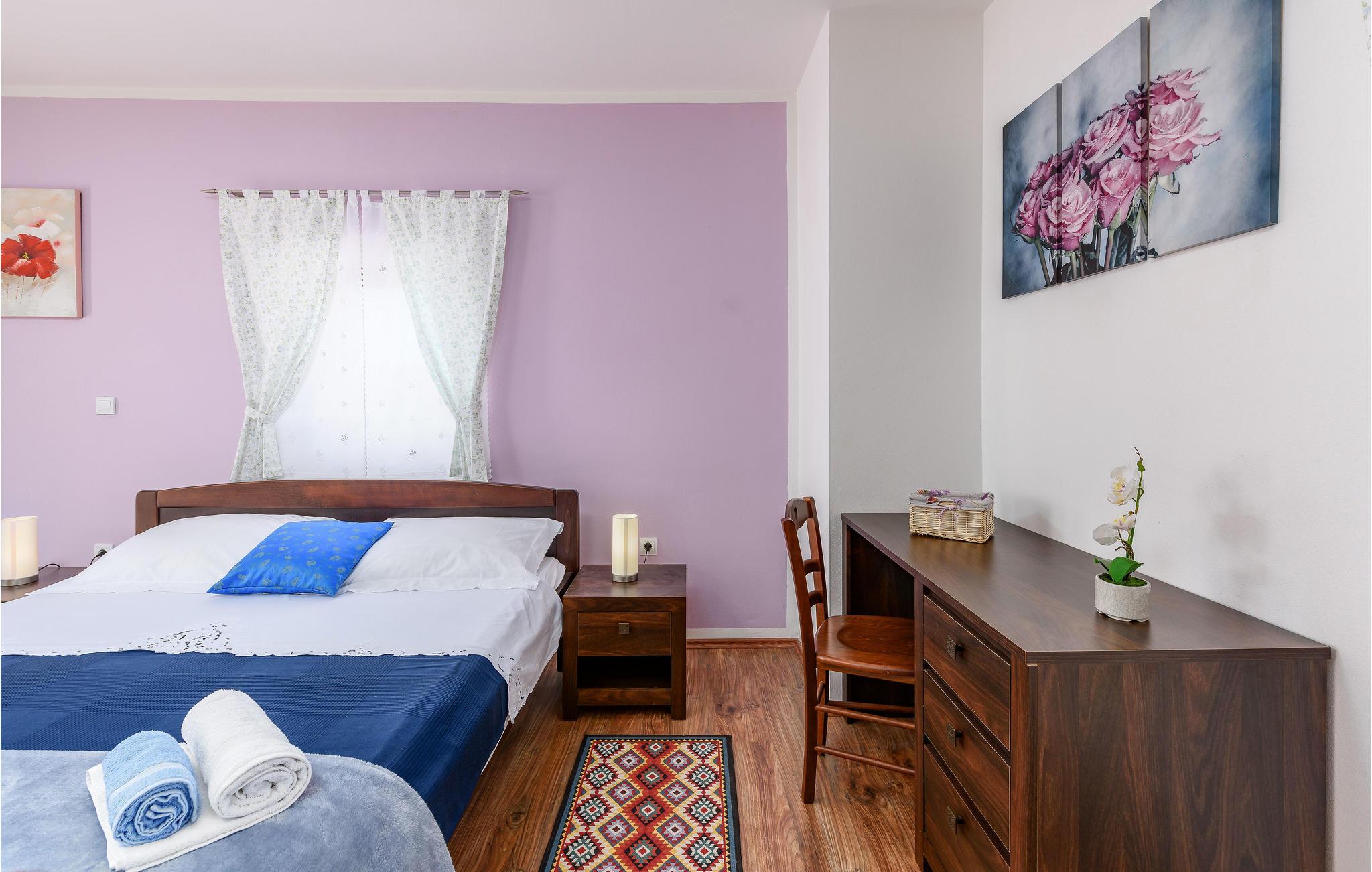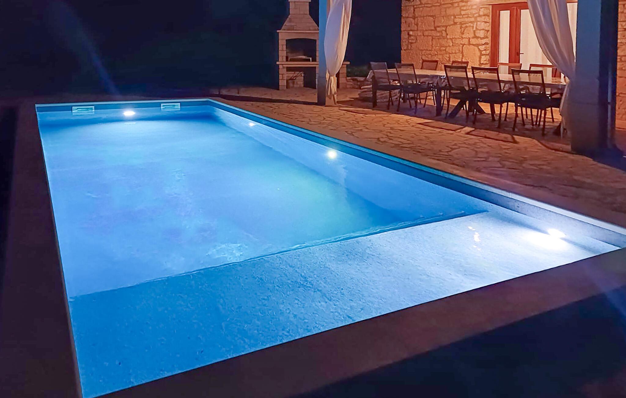 Dette dejlige feriehus med pool ligger i udkanten af byen Pamic ved Zmij. Huset har smukke stenvægge, stenene er hentet i lokalområdet. Huset har tre etager, forbundet indendørs med trapper. Hold de skønne feriedage i det fri på den overdækkede terrasse med grill og tag et dyp i den dejlige udendørs pool. Her er et lille anneks, som er tænkt benyttet til underholdning og sportslige aktiviteter. I kan også spille bold og dyrke andre former for sport på den store grund.