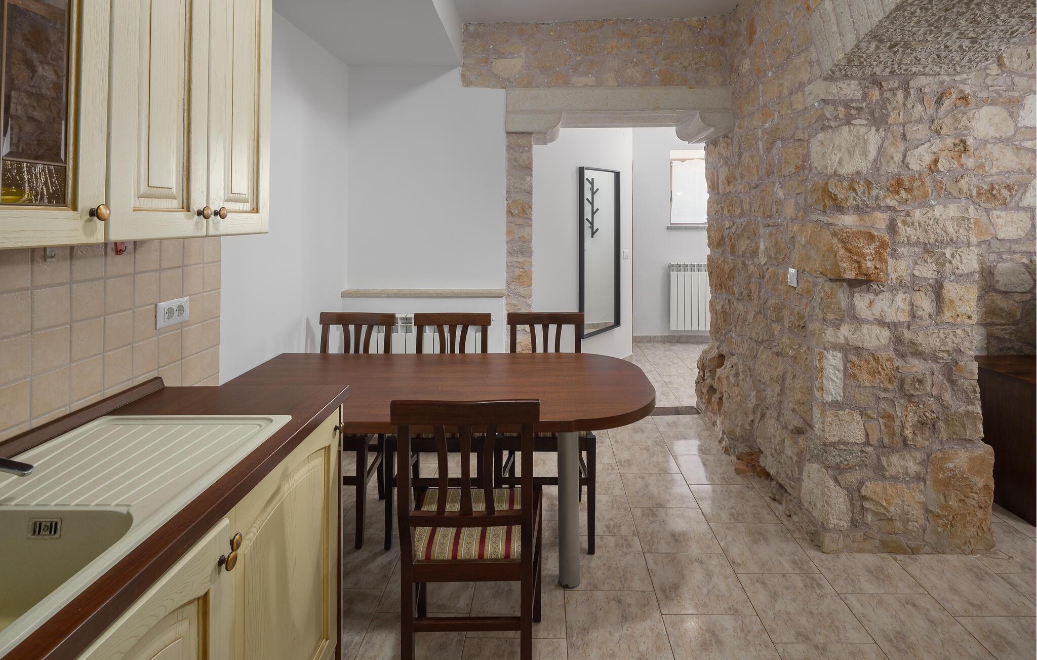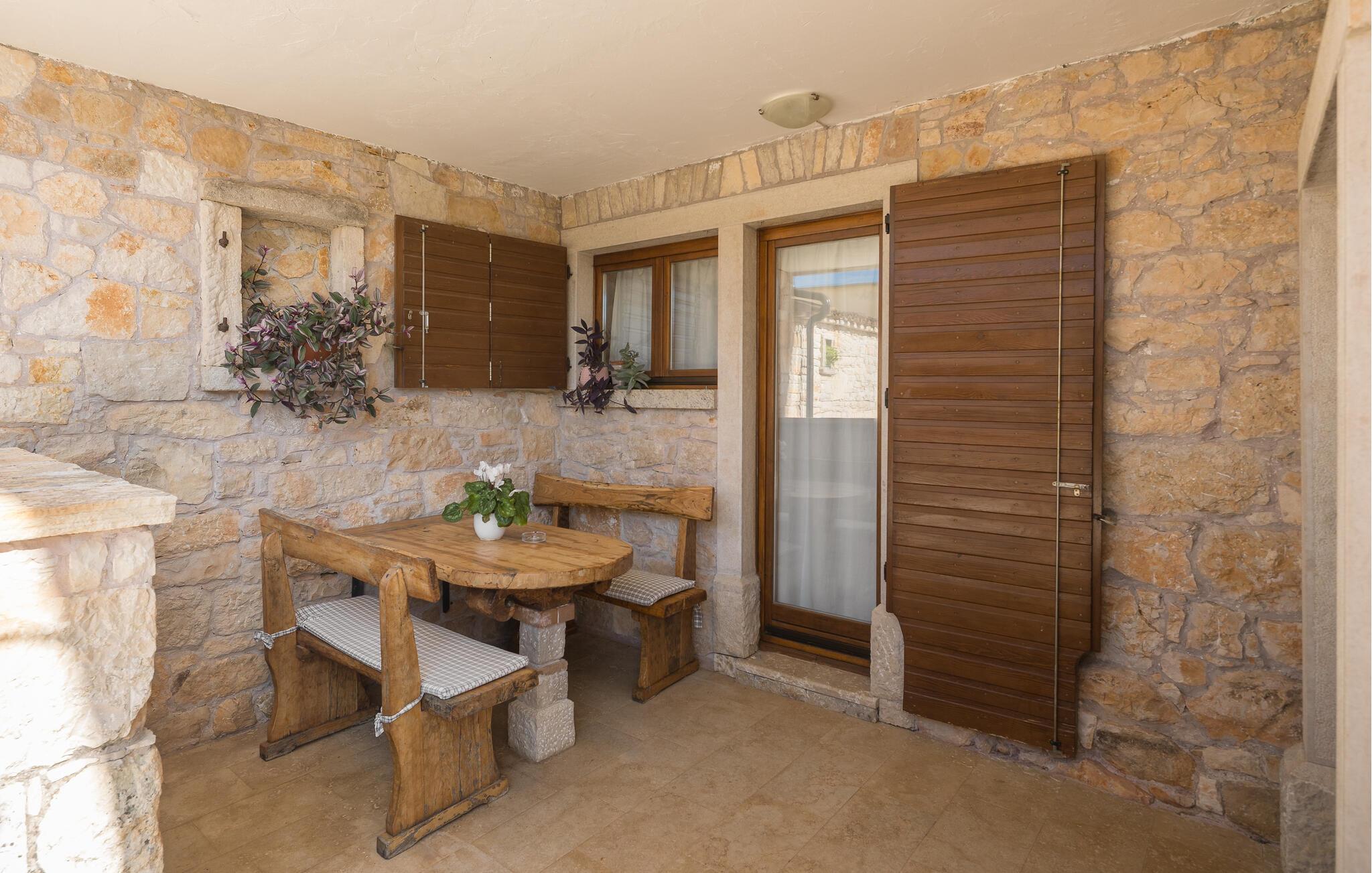 I den lille rolige by Puzari på den centrale Istrien ligger dette dejlige dobbelthus. Det blev renoveret i 2010 og er rustikt indrettet. Opholdsstuen med køkken ligger i stueetagen, og I kommer op til førstesalen ad en stejl vindeltrappe. Heroppe ligger soveværelserne. Den fælles grund deler I med husejeren, men swimmingpoolen bag huset har I helt for jer selv. Besøg den lille middelalderby Zminj, som ligger på en lille høj, omgivet af en af de største bymure i området.
