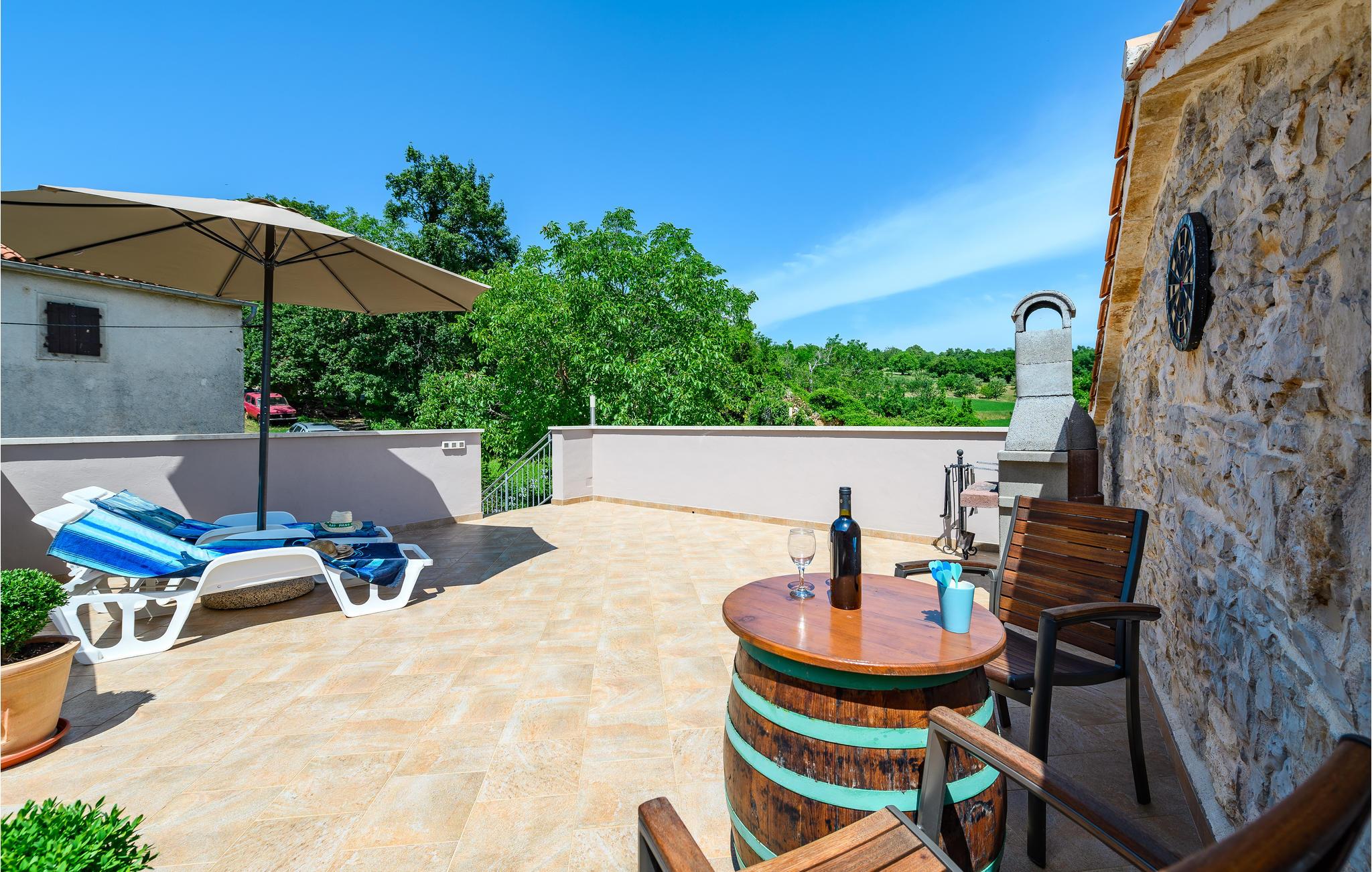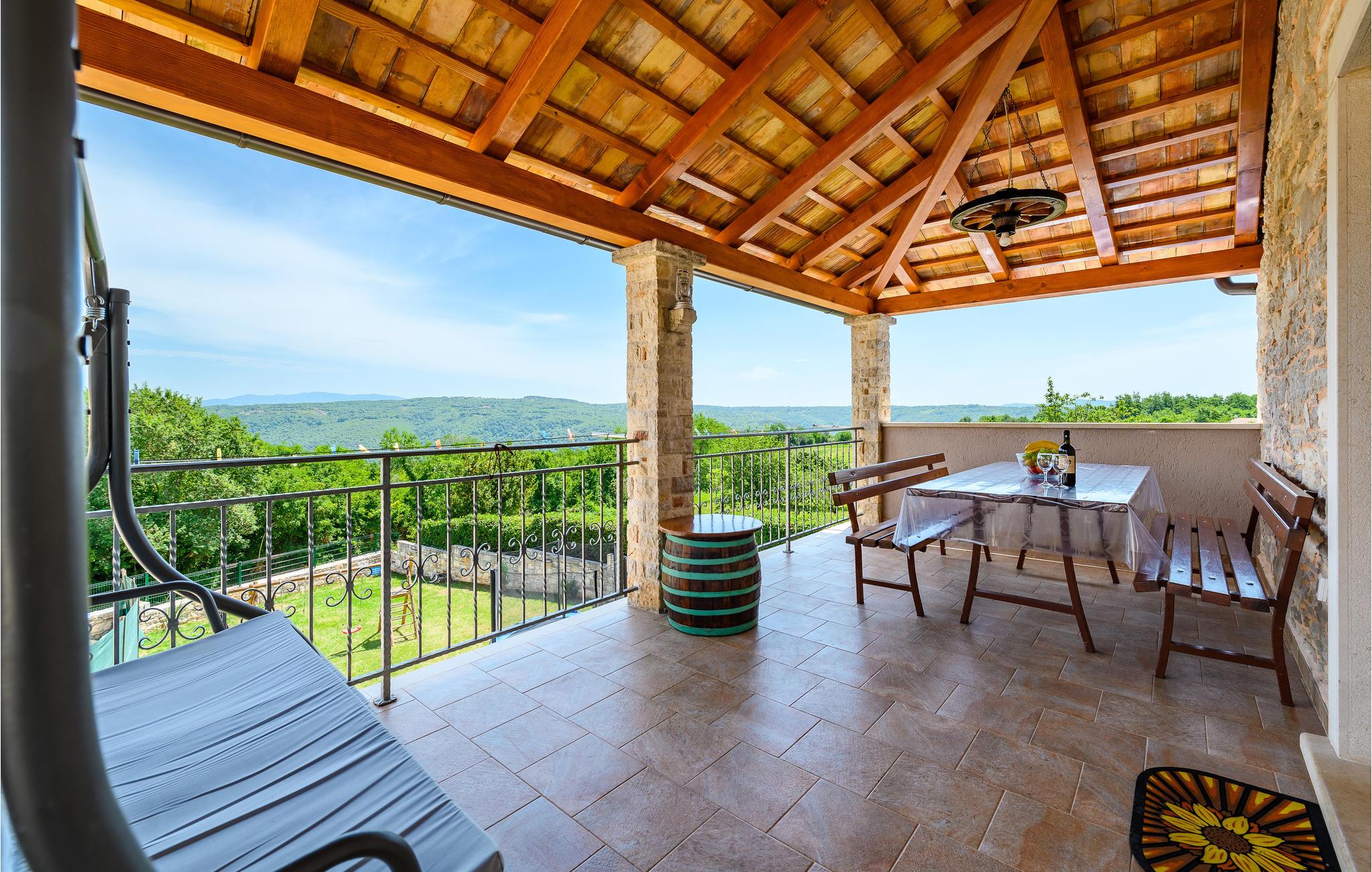 I en lille by i det centrale Istrien, ligger dette skønne feriehus. I bor på husets førstesal hvor der er et praktisk køkken i åben forbindelse med stuen, to soveværelser og to badeværelser. Huset er charmerende gammelt og traditionsrigt men moderne bekvemmeligheder. Det helt særlige er de to store terrasser, der er forbundet med en lille bro, hvorfra der er en smuk udsigt over den uberørte natur. Hop en tur i den skønne pool på de varme sommerdage og slap bagefter af med et glas af den gode istriske vin, mens børnene tumler sig i haven. I nærheden af en klatrepark og en rideskole. Tag på oplevelse i det underskønne Istrien, hold pause i en af de maleriske små byer og smag på de lokale specialiteter i en af de mange restauranter.