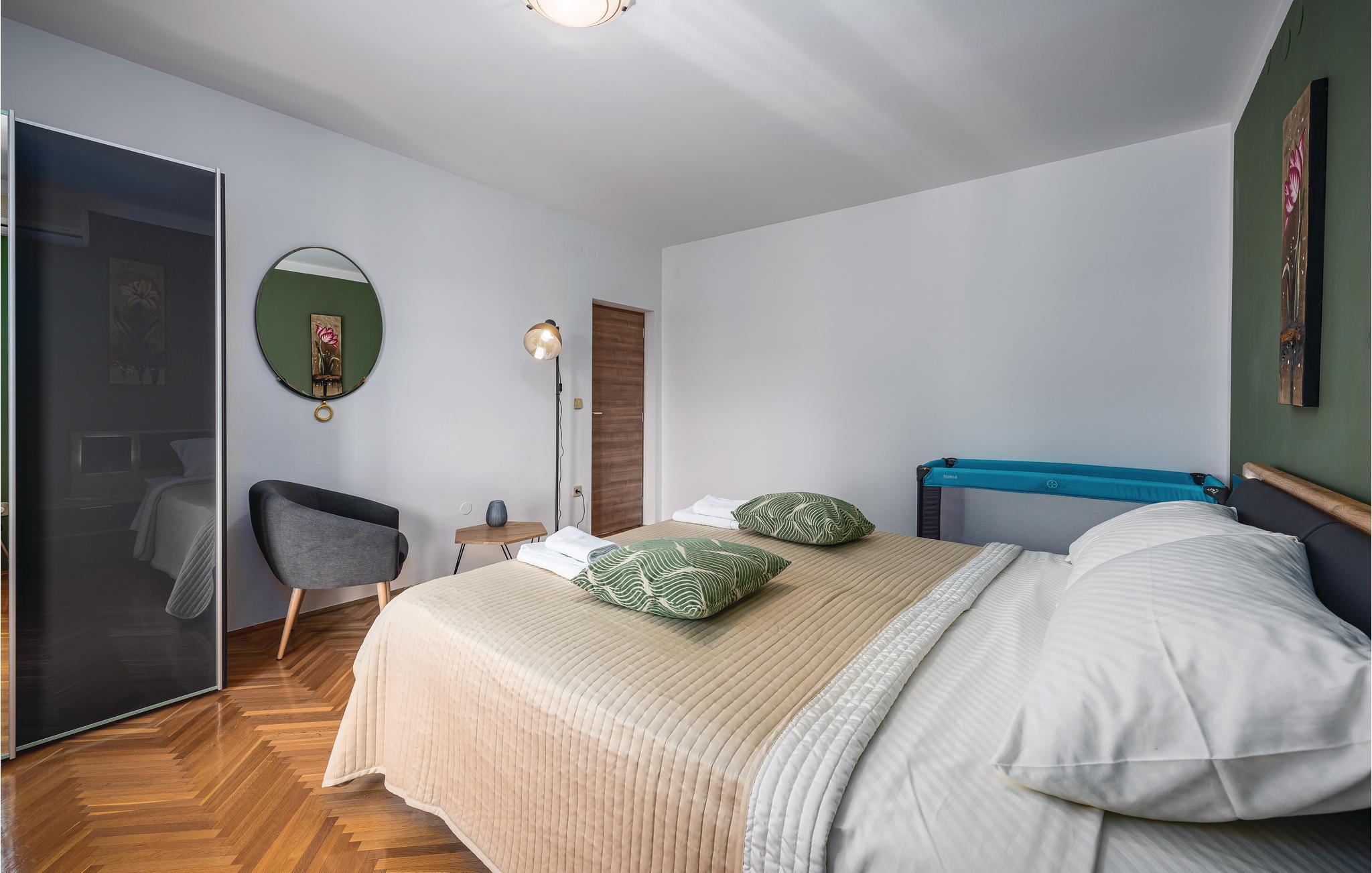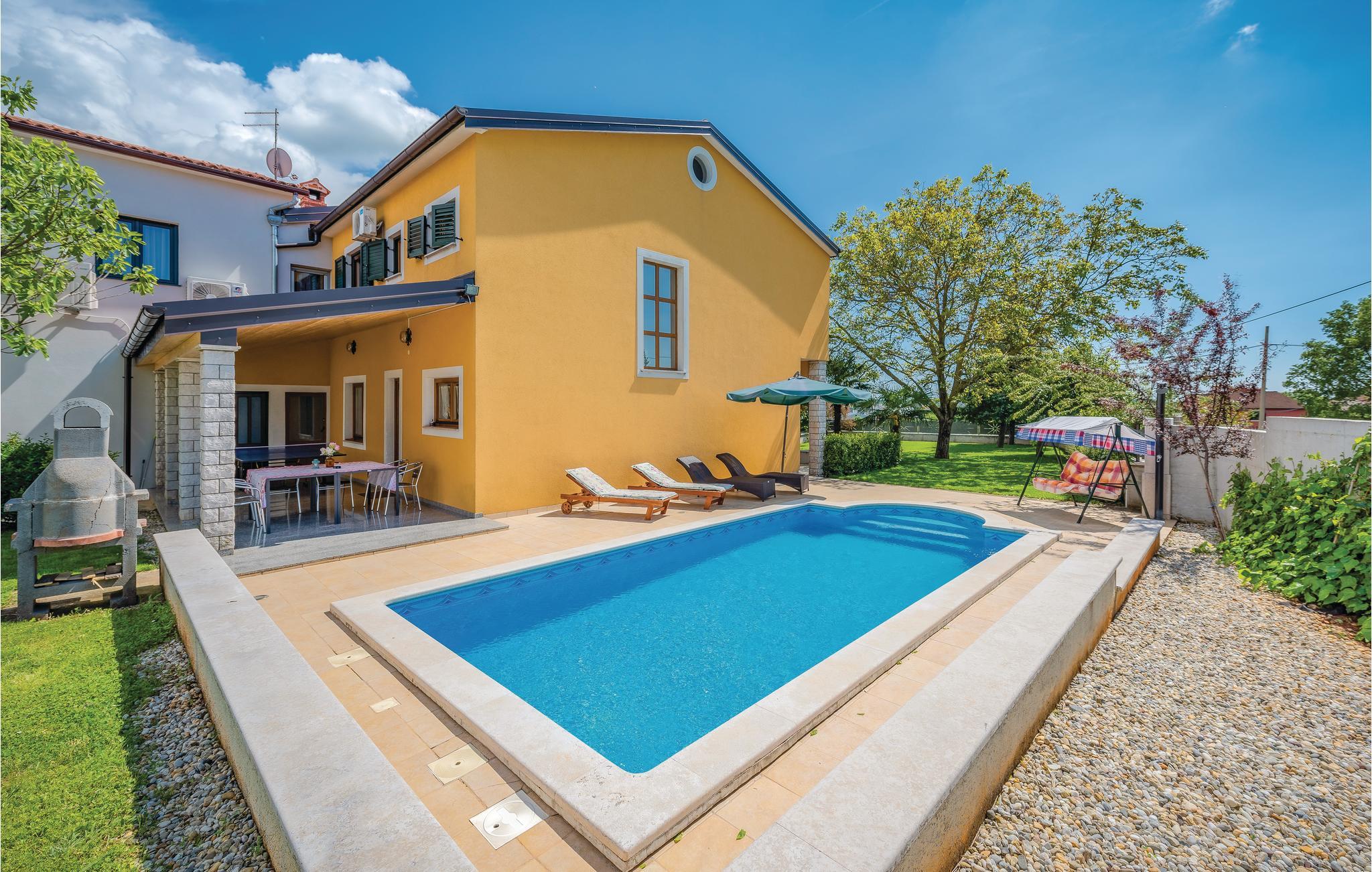 I husets stueetage er der stue, køkken, spisestue og et badeværelse. På 1. etage er der 3 soveværelser, et badeværelse og et toilet. Hvis i holder ferie her i august, skal i tage til den årlige byfest Bartulja, og opleve den gode stemning. Det kan desuden anbefales at besøg de lokale taverner, der tilbyder lokale specialiteter inden for vin og mad, som er til at betale. Kystbyerne Rovinj, Porec, Pula og de gamle byer Motovun og Groznjan er absolut også et besøg værd.